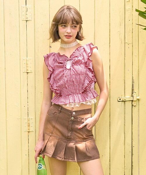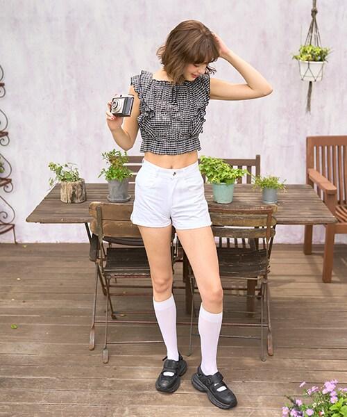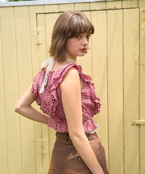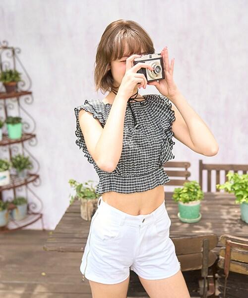 荷葉邊袖格子襯衫【韓國時尚】