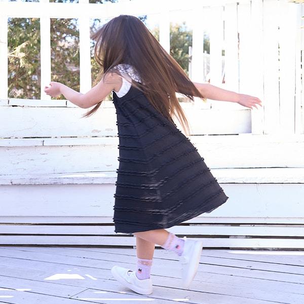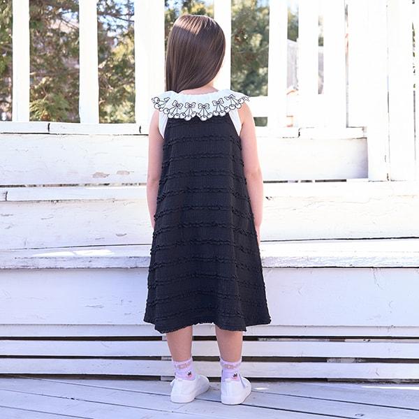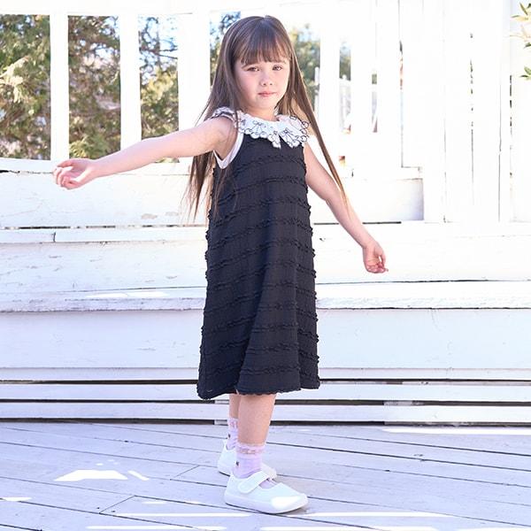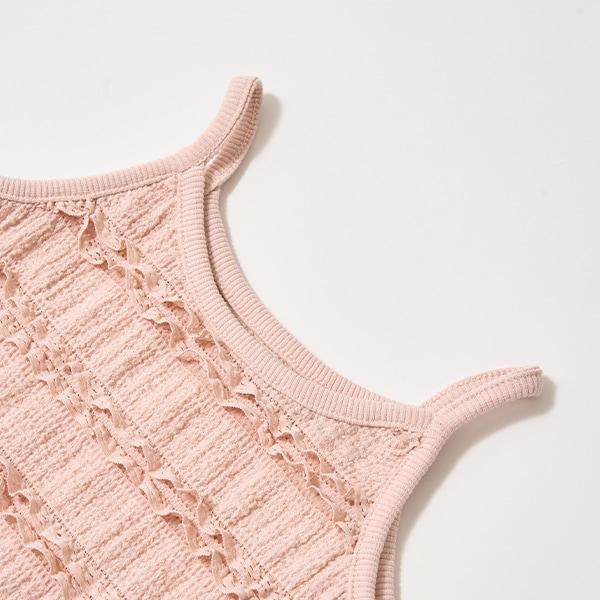 這款設計簡潔的連衣裙採用褶皺針織蕾絲面料。