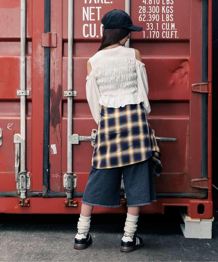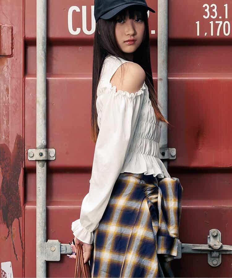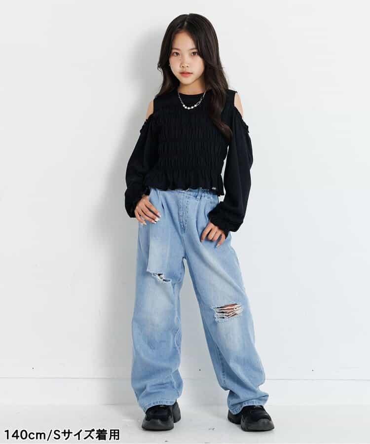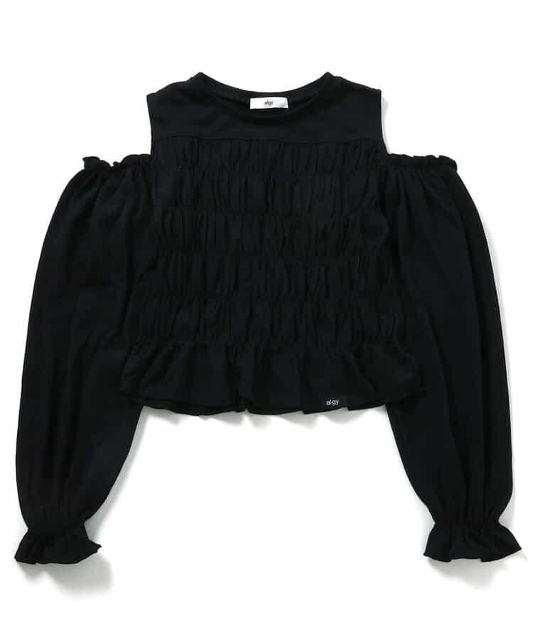 ALGY 長袖T恤 "Shirred Shoulder Tops"。