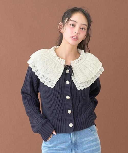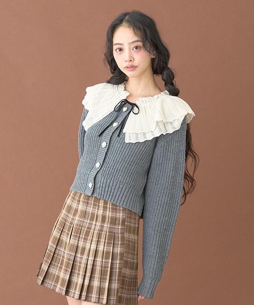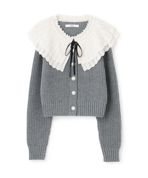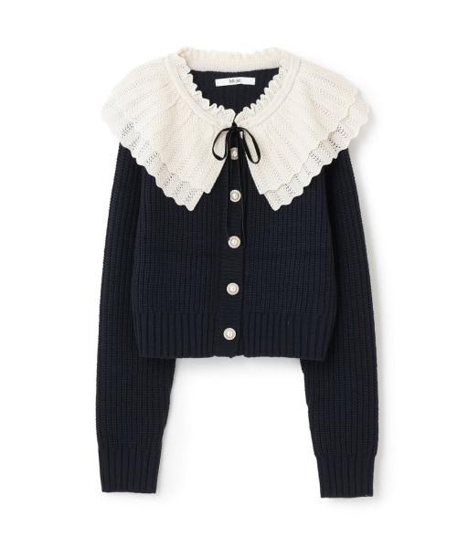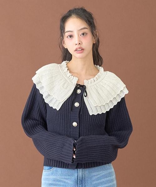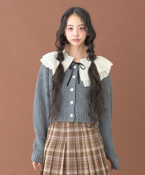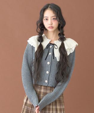 柔軟的羅紋針織衫和精緻的蕾絲領,讓這款開衫更顯精緻甜美。