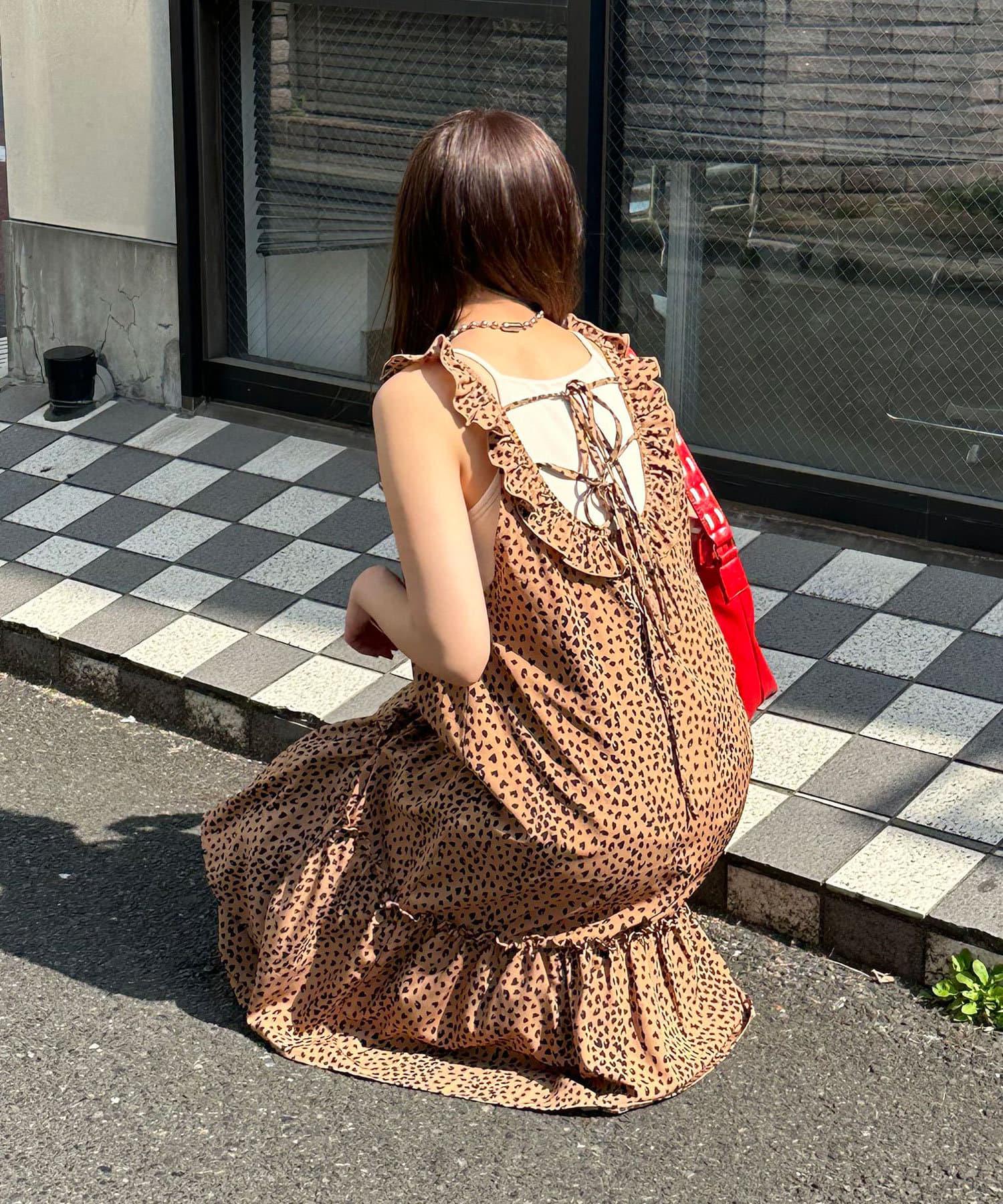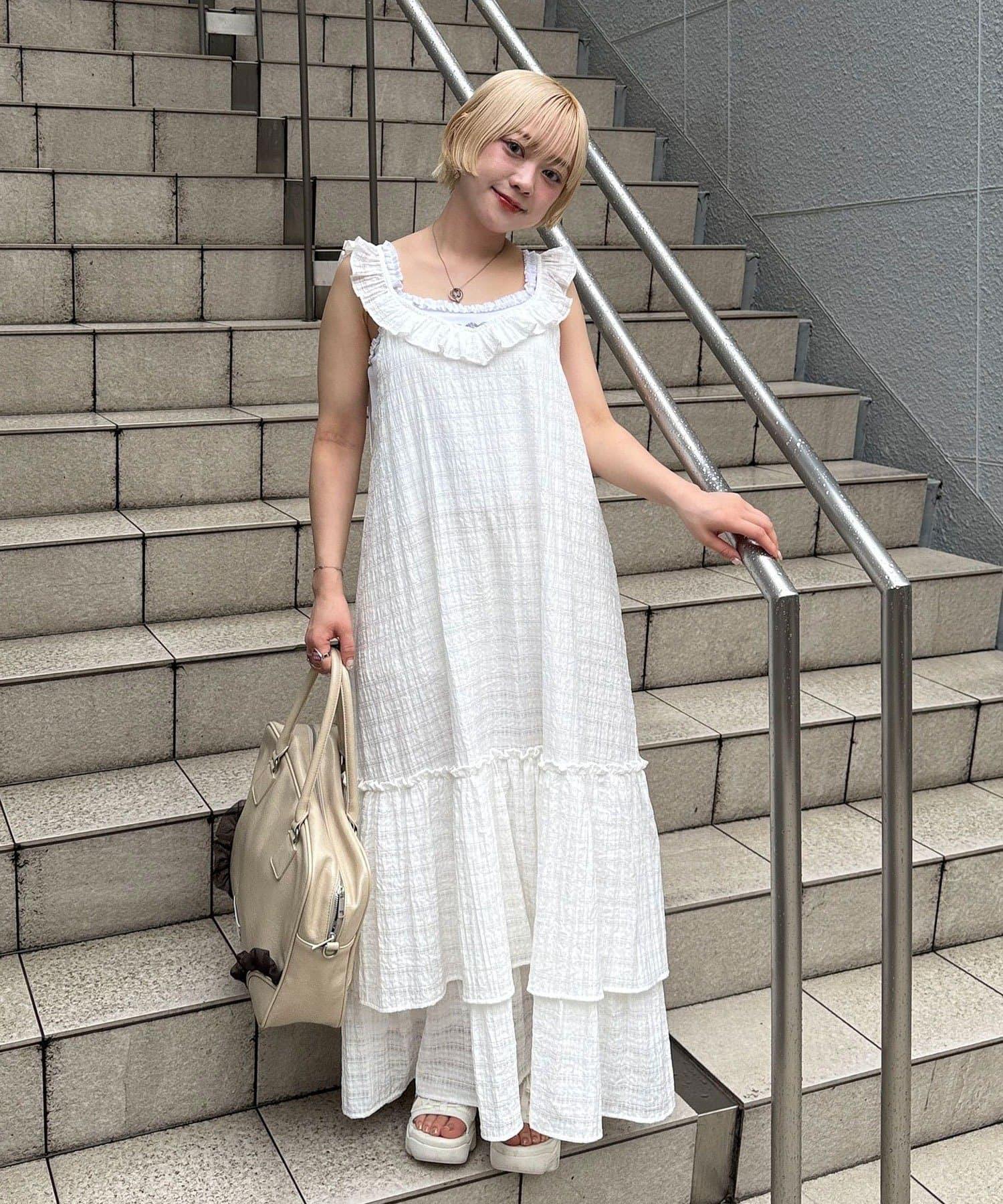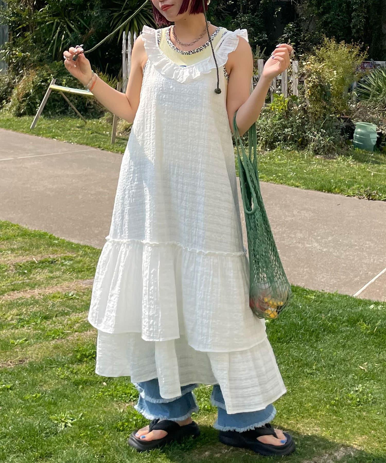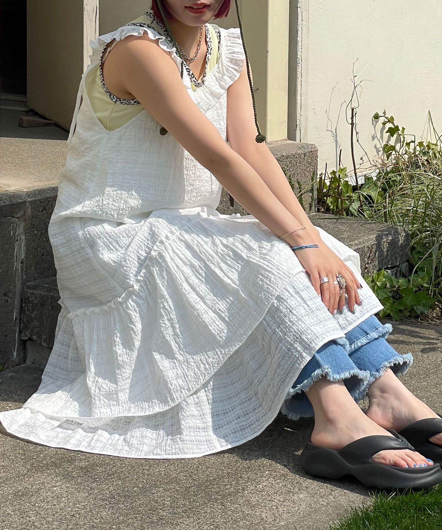 甜美的吊帶連衣裙,天然紋理面料上飾有大量流蘇。