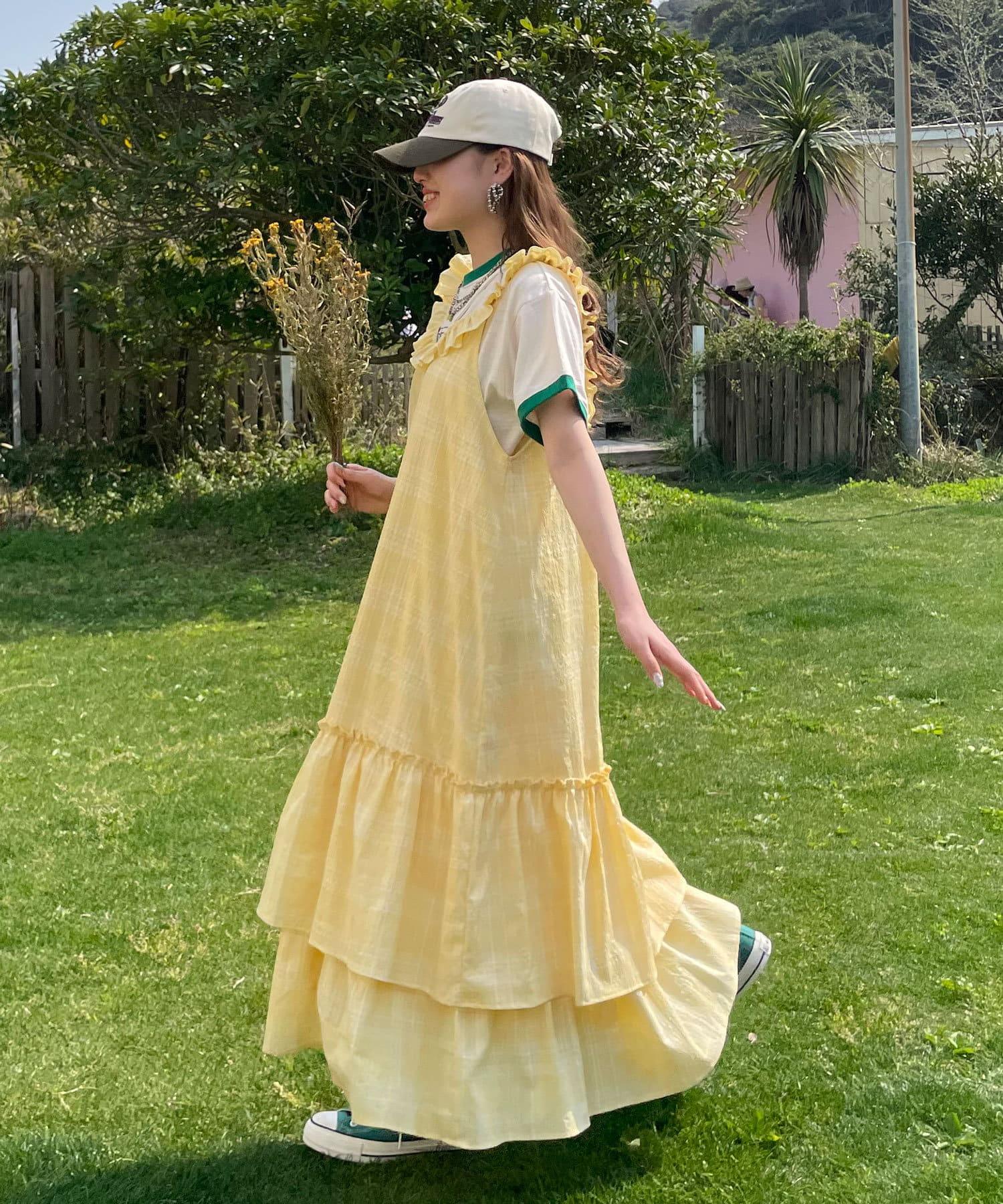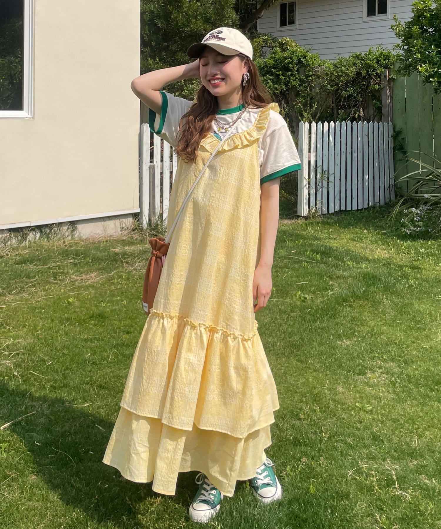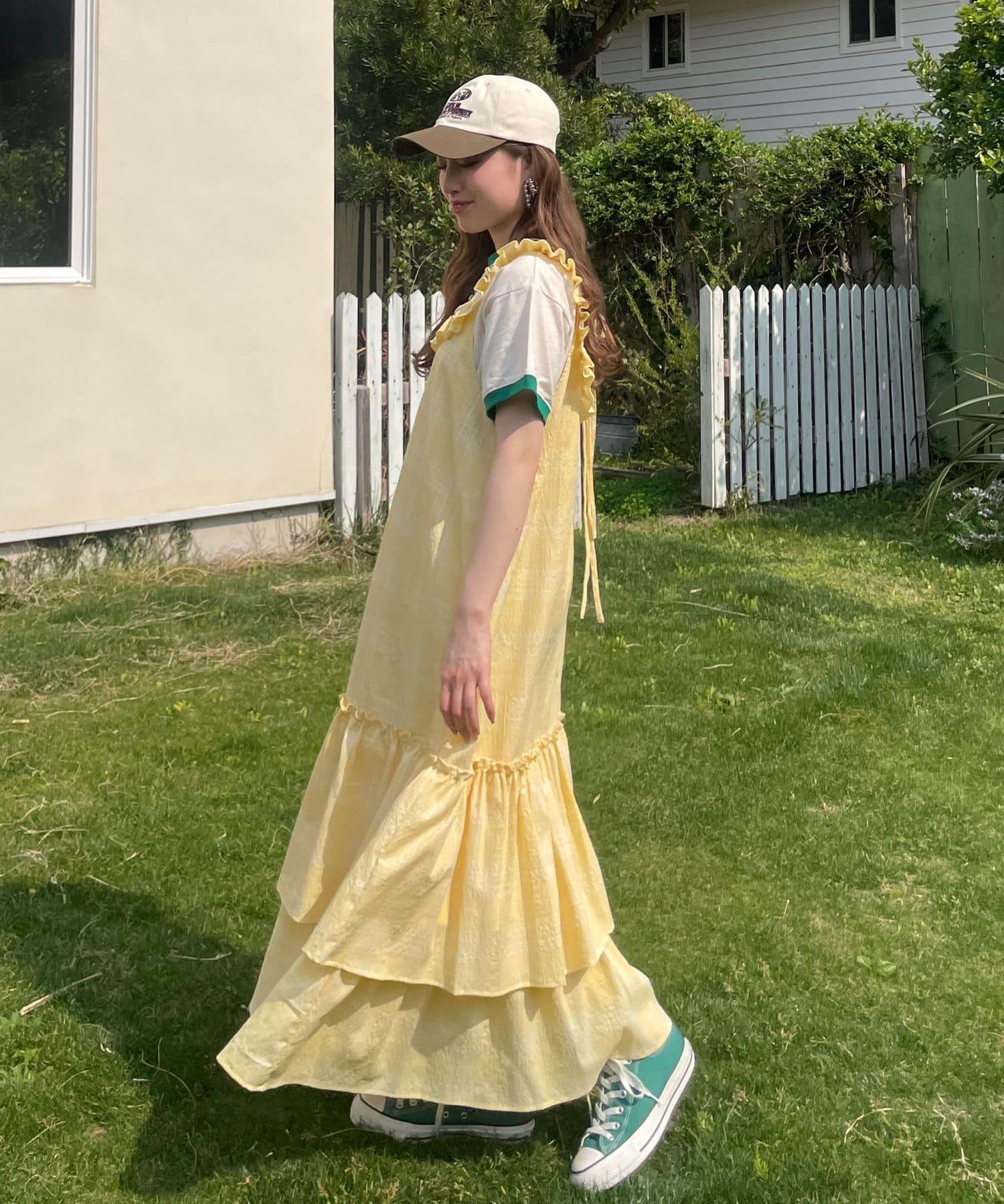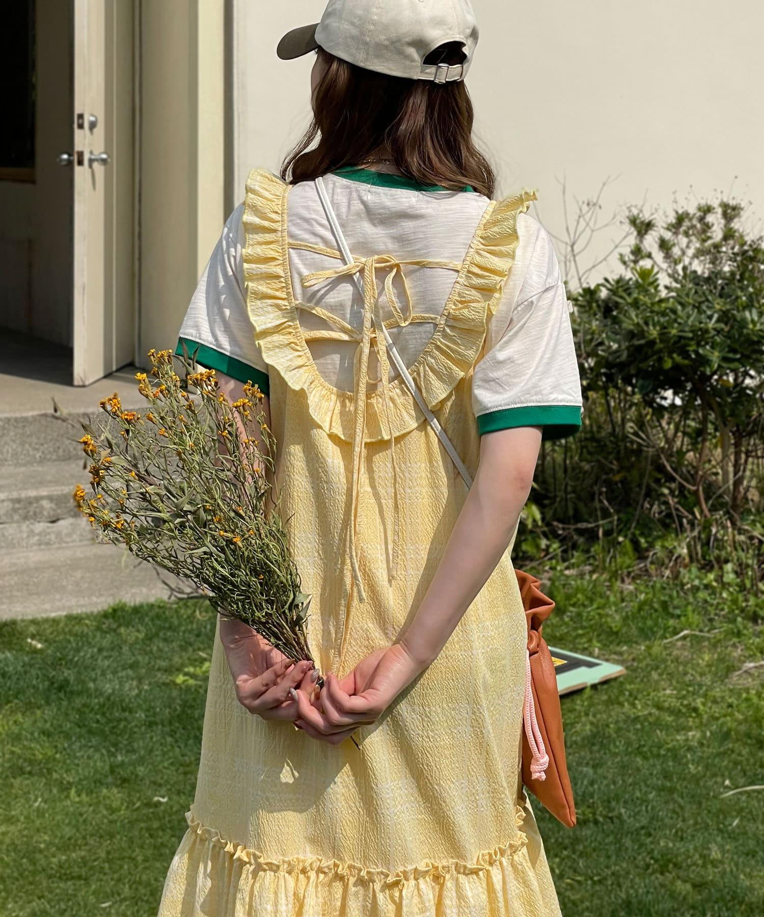 與 T 恤或上衣疊穿,可享受休閒而不甜膩的造型。