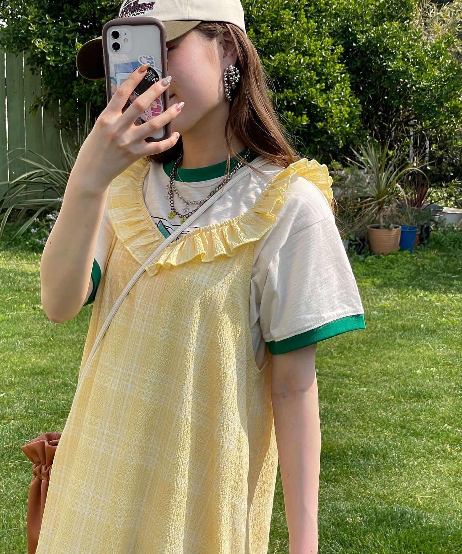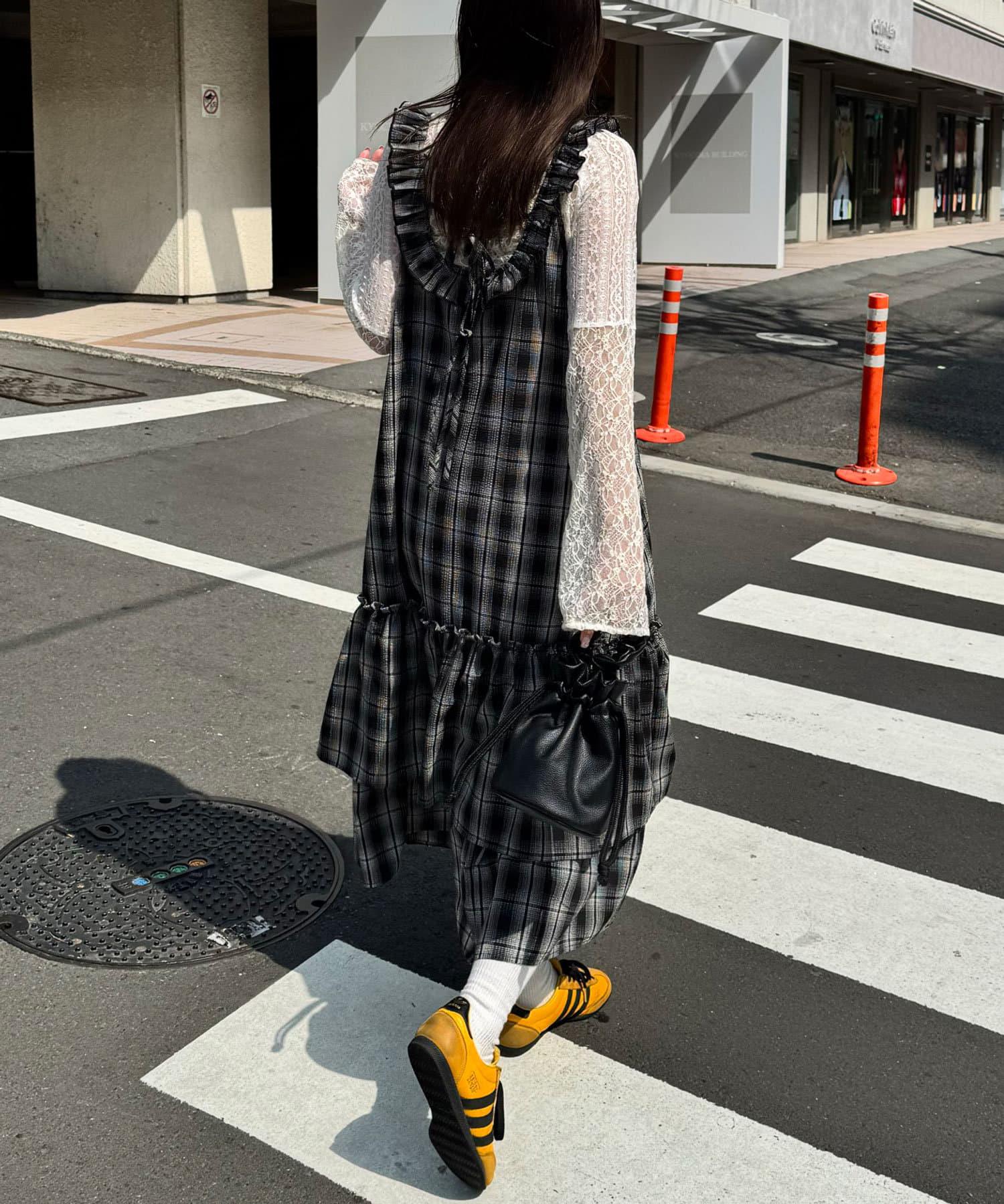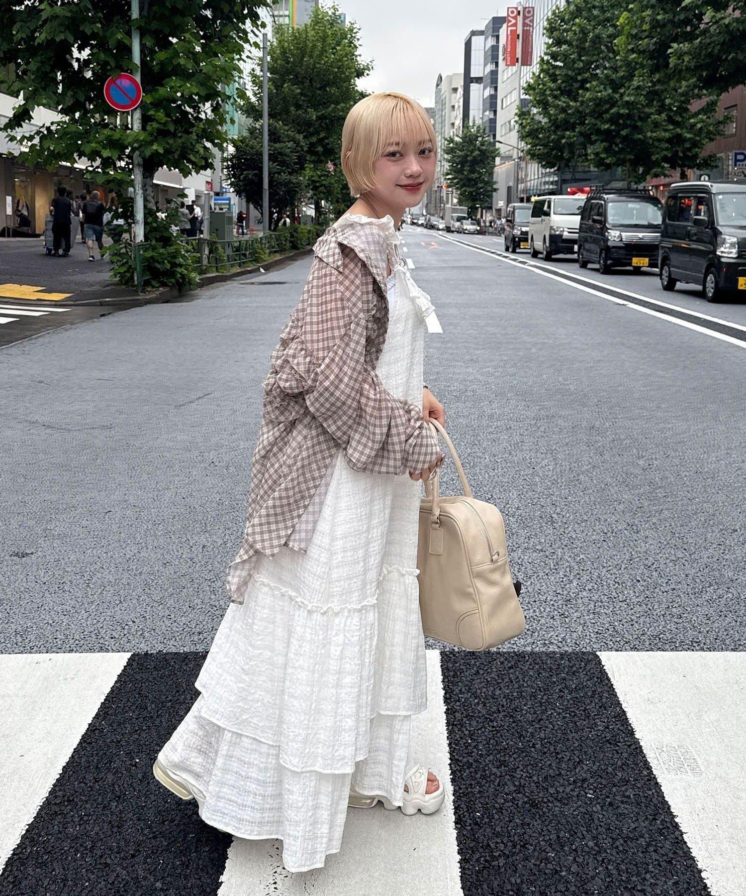 與 T 恤或上衣疊穿,可享受休閒而不甜膩的造型。