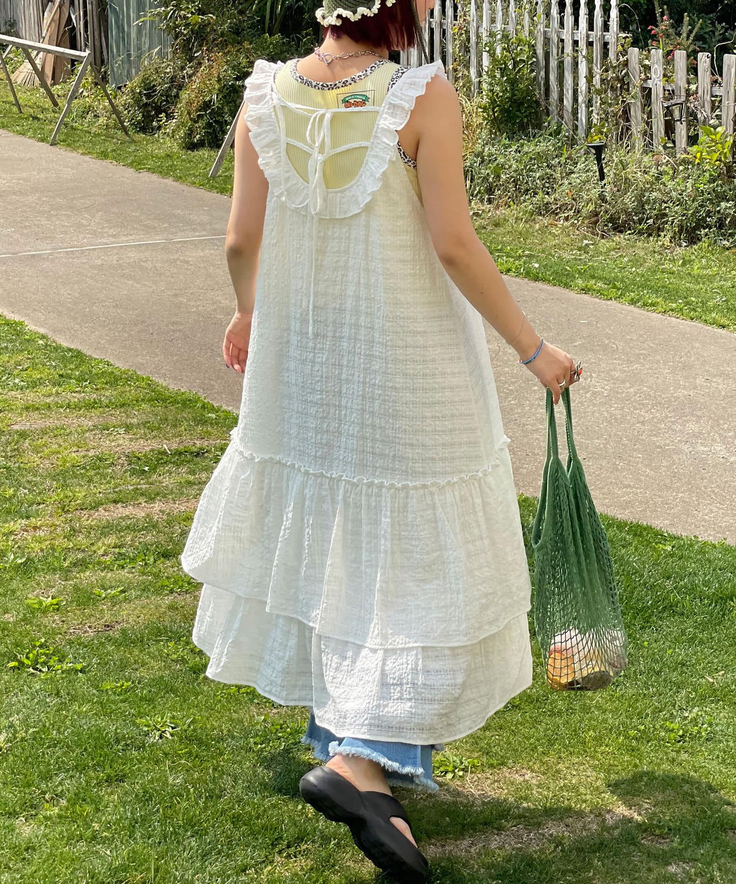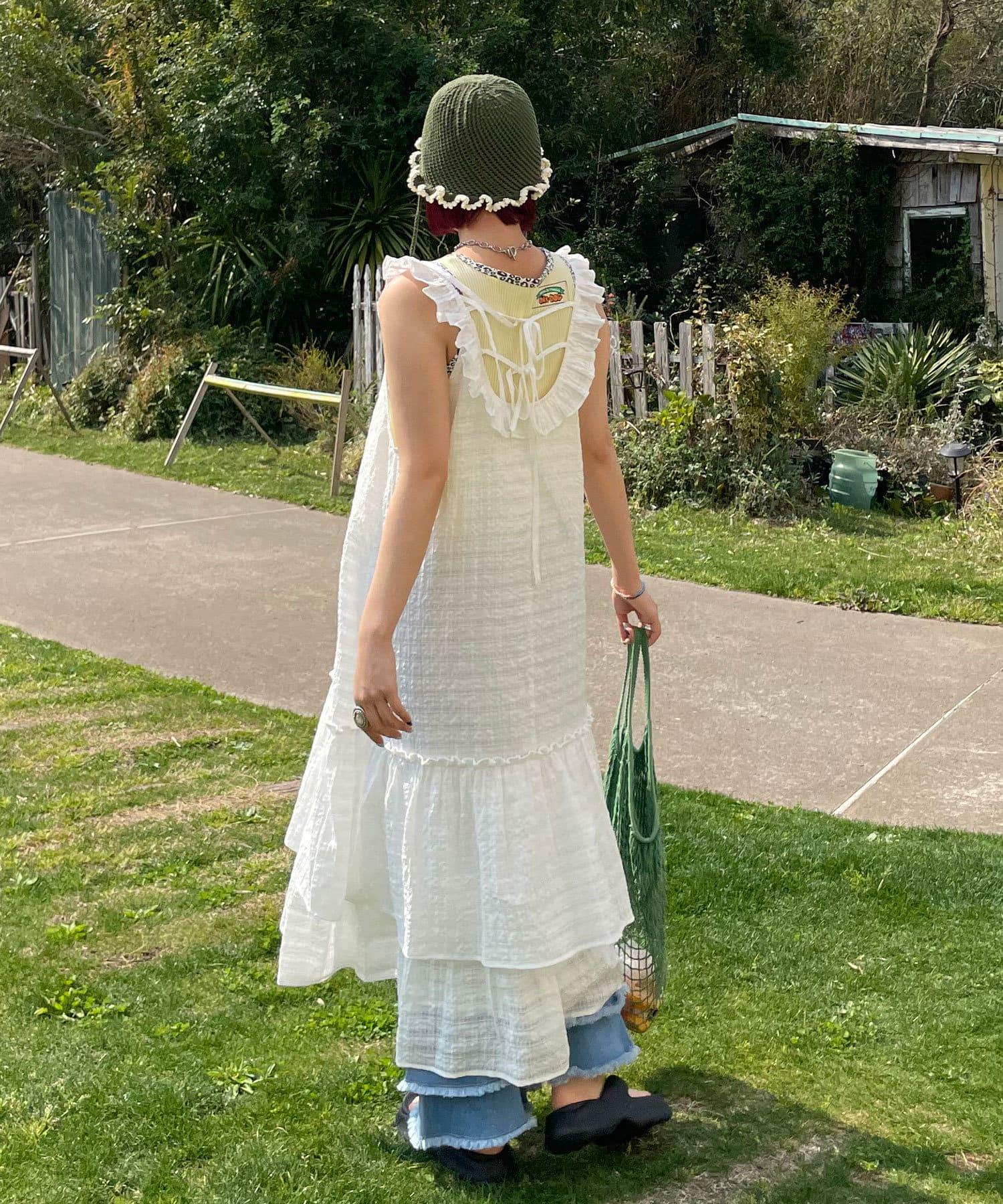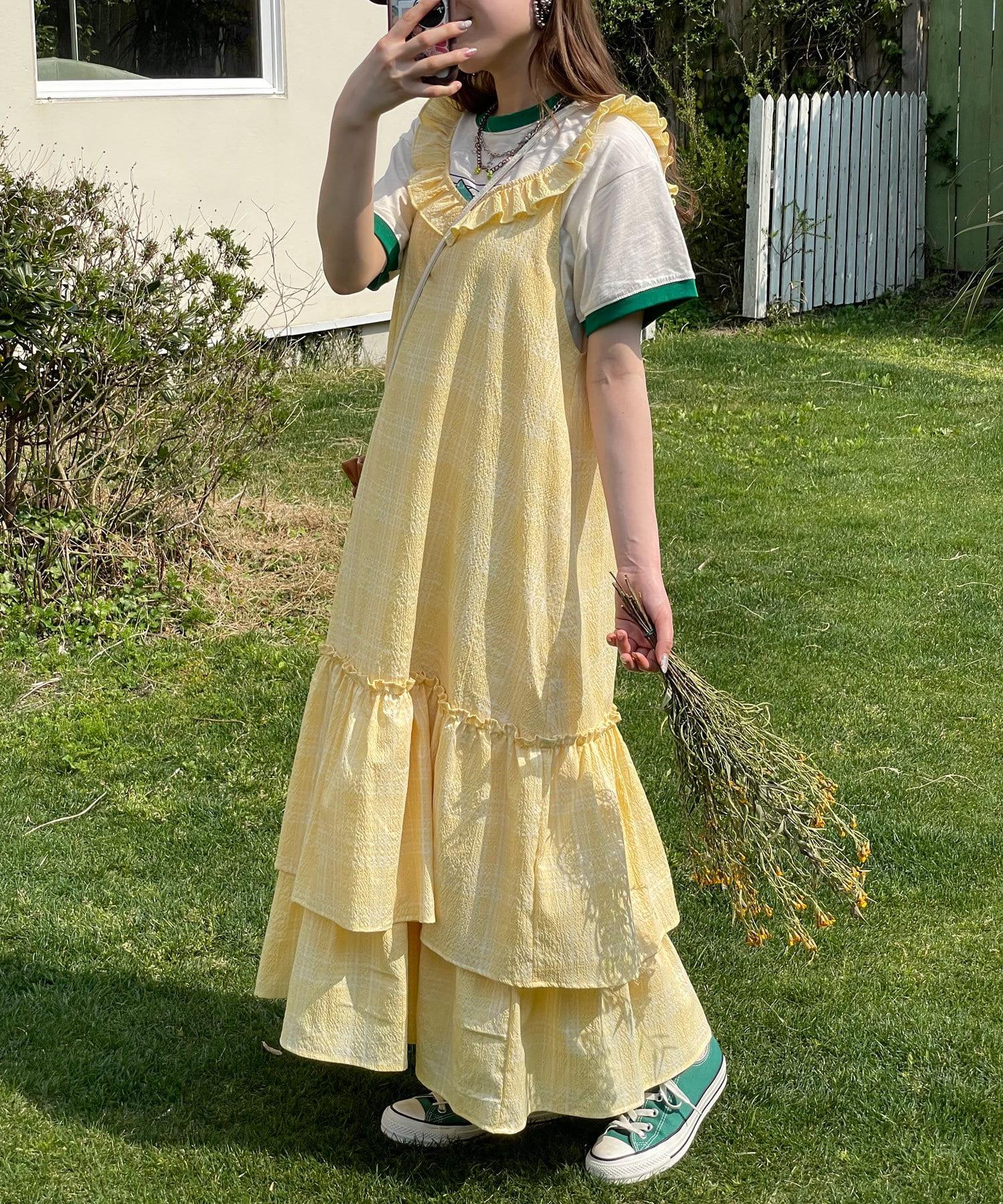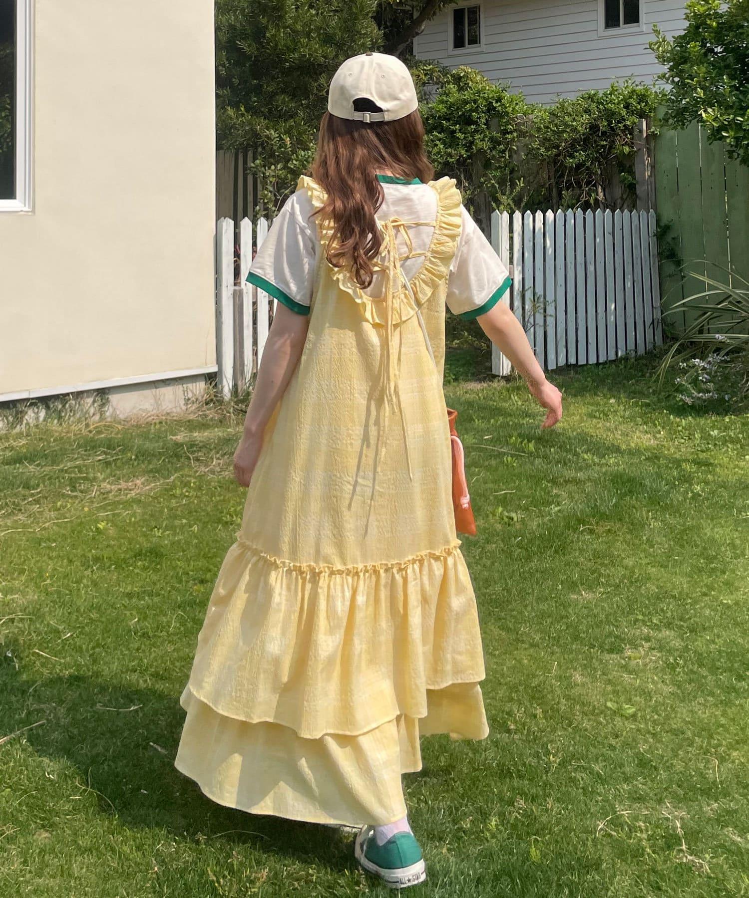 與 T 恤或上衣疊穿,可享受休閒而不甜膩的造型。