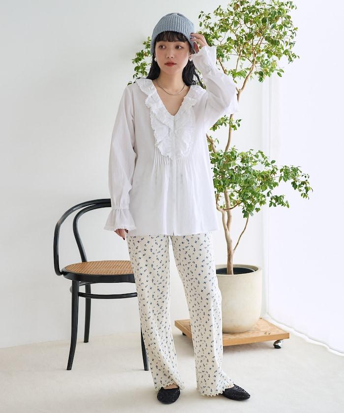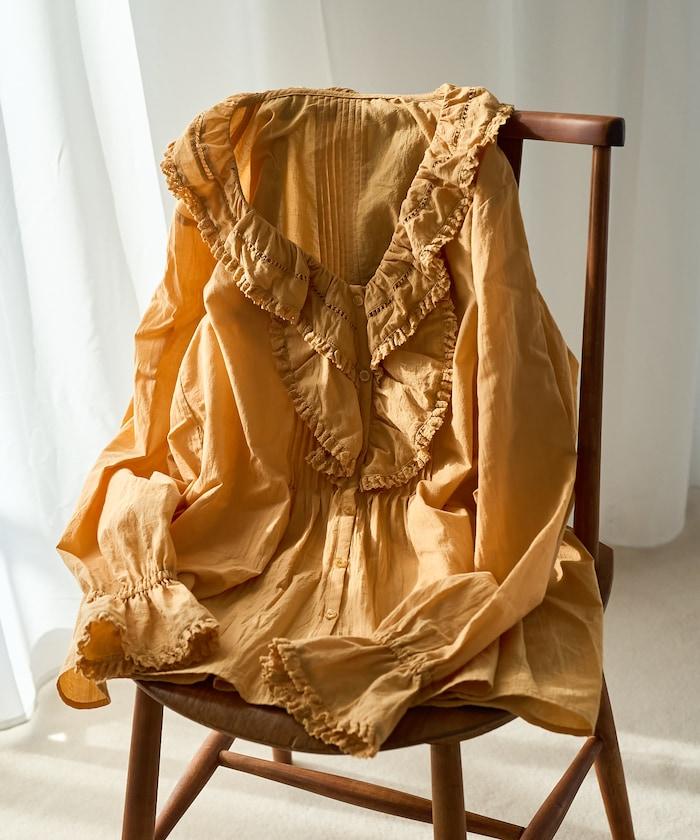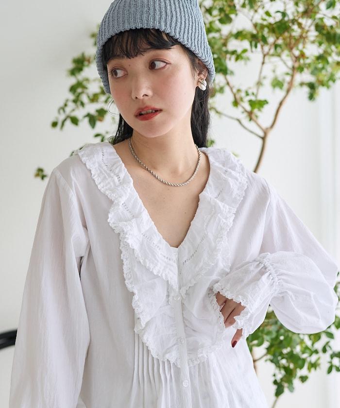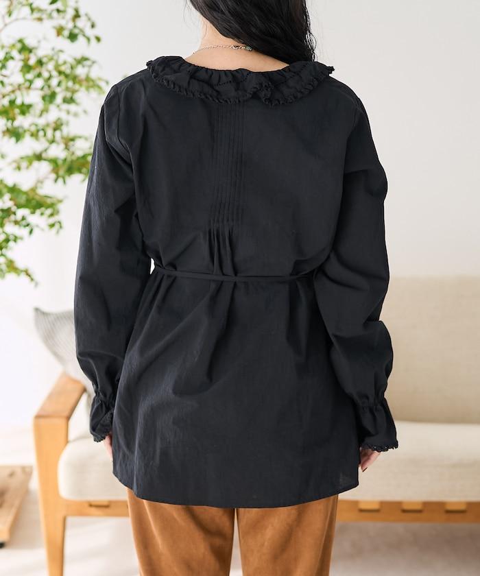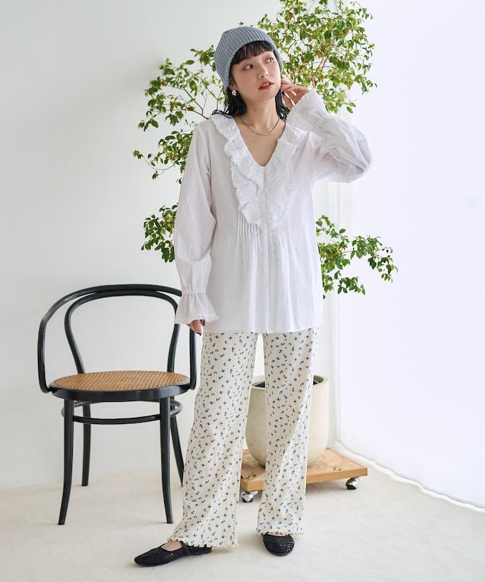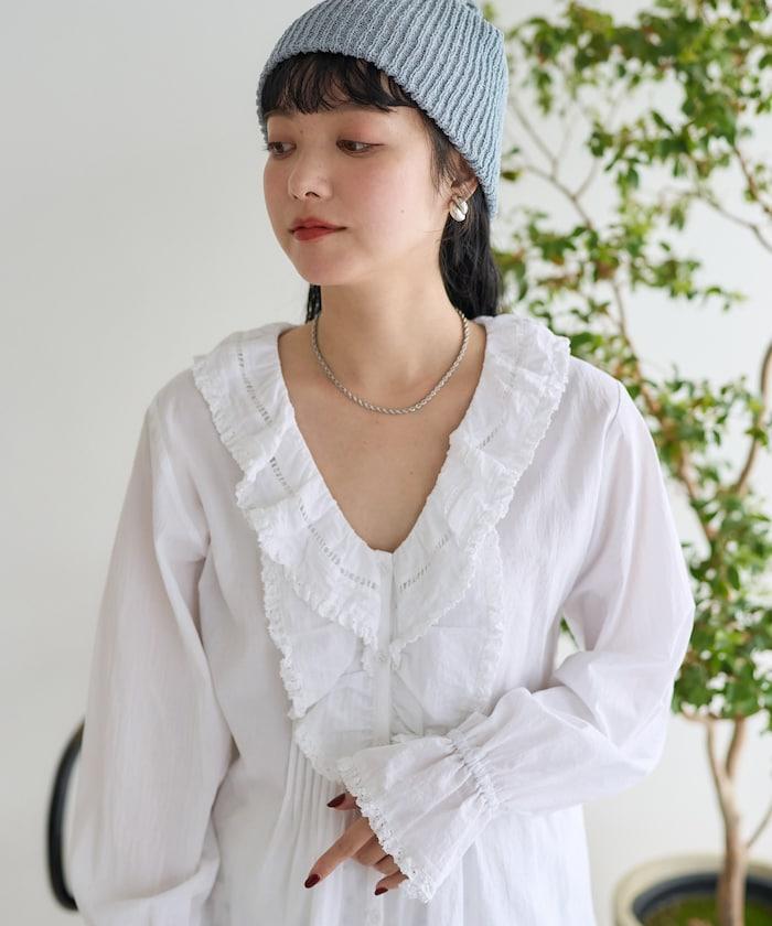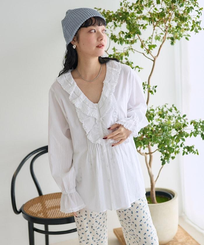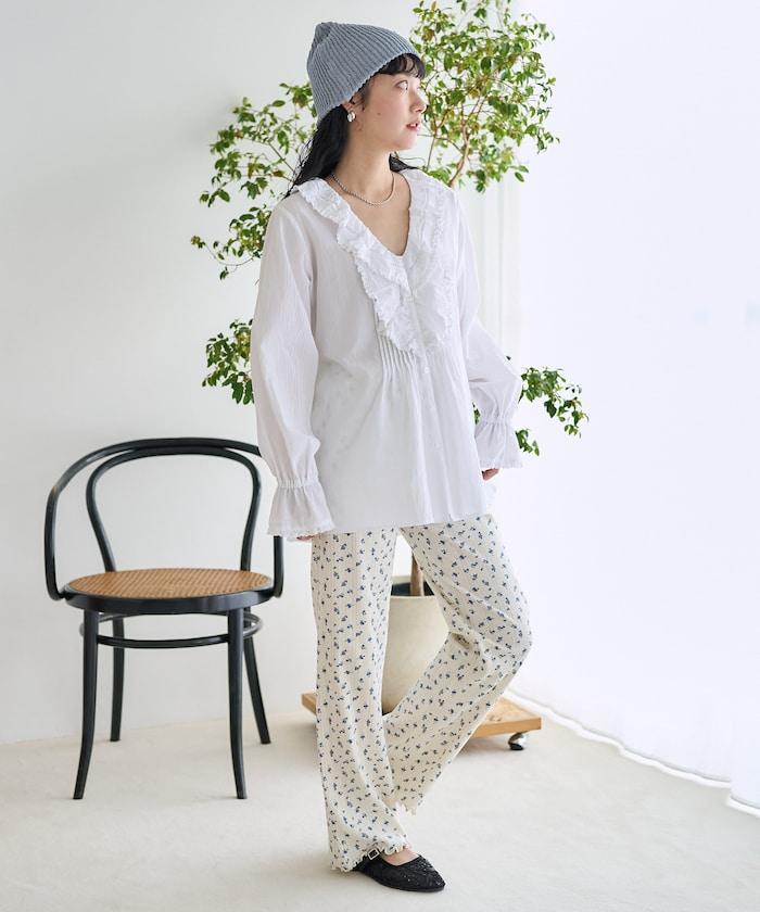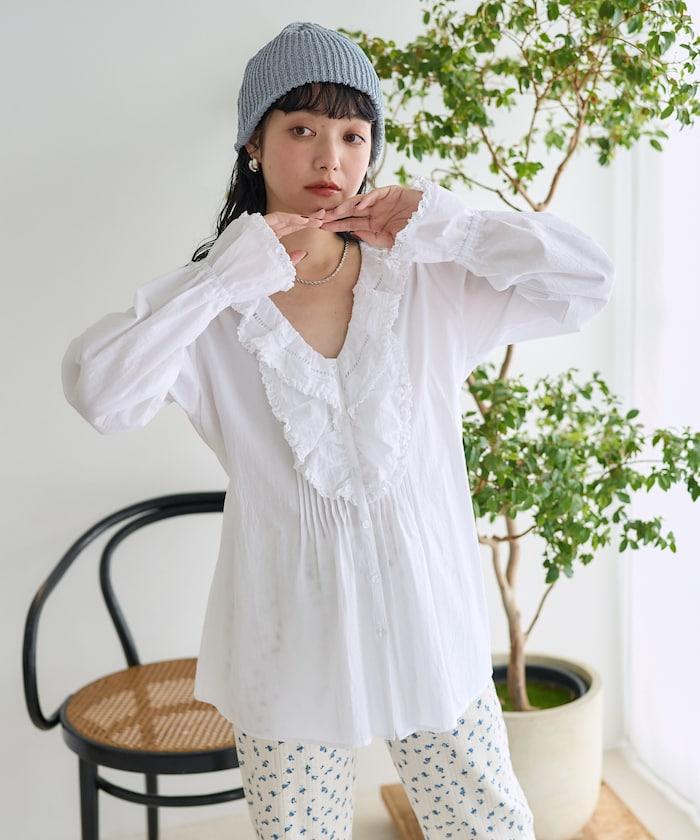 荷葉領 針褶襯衫
