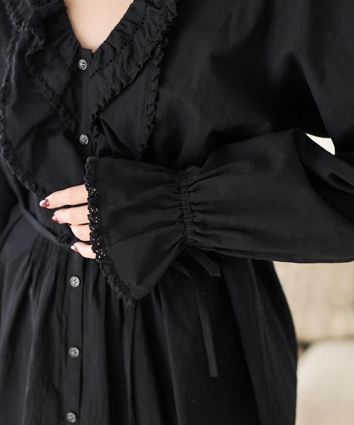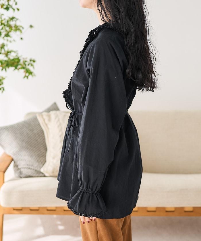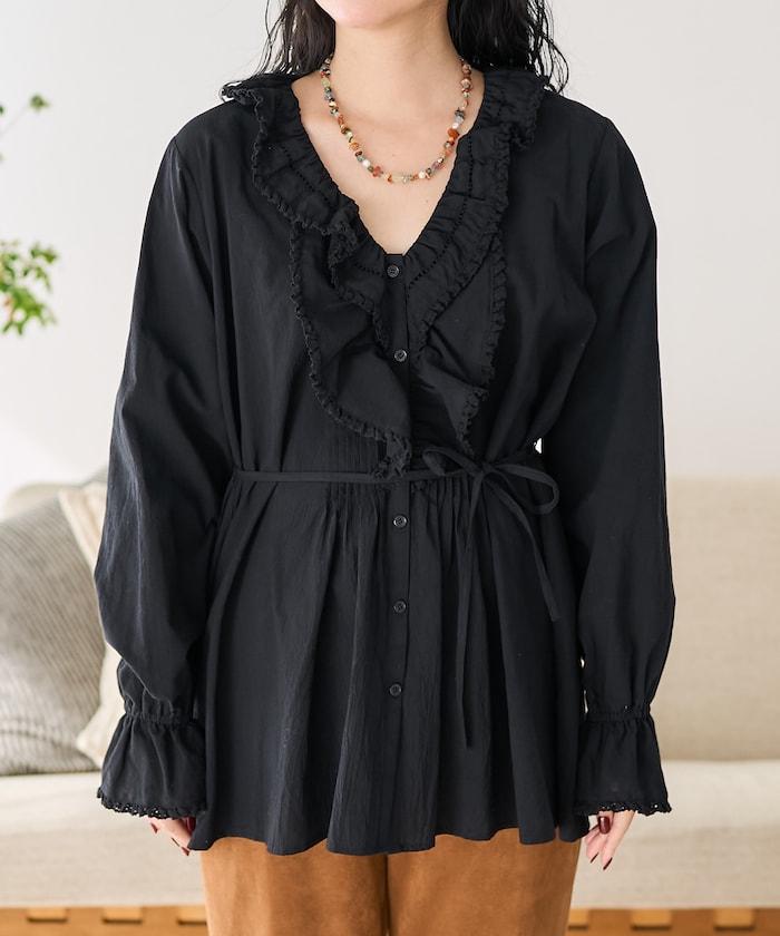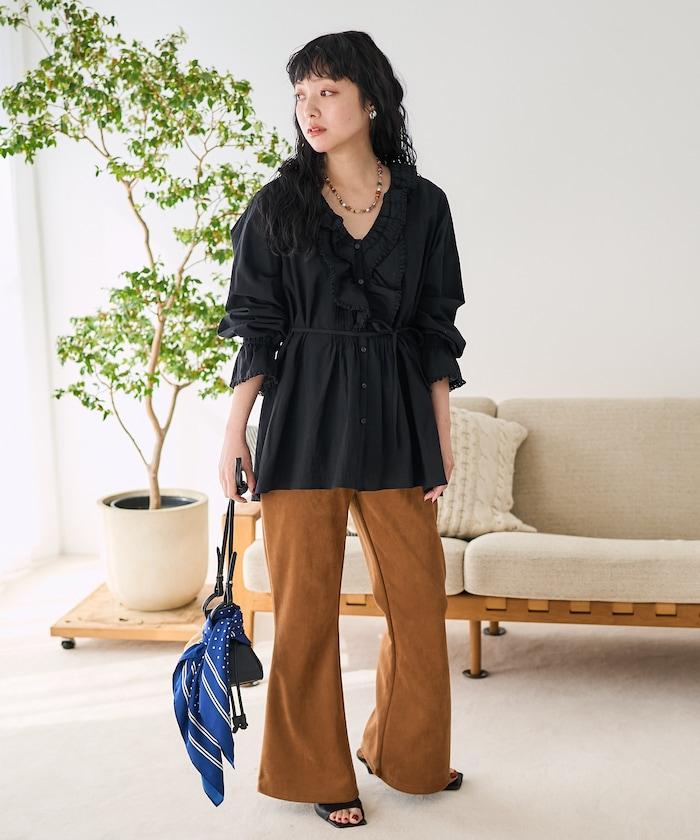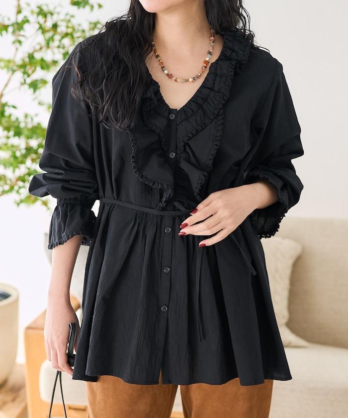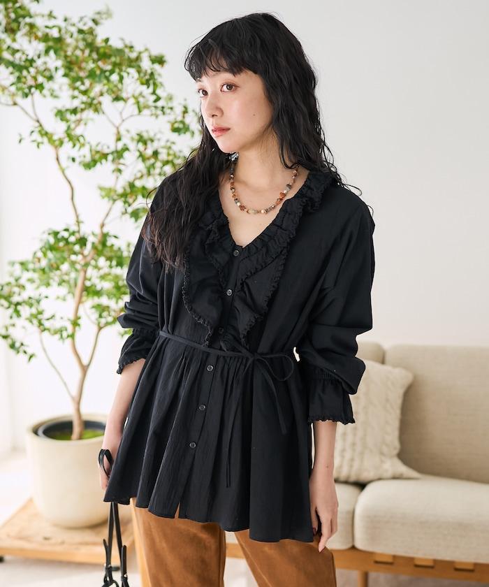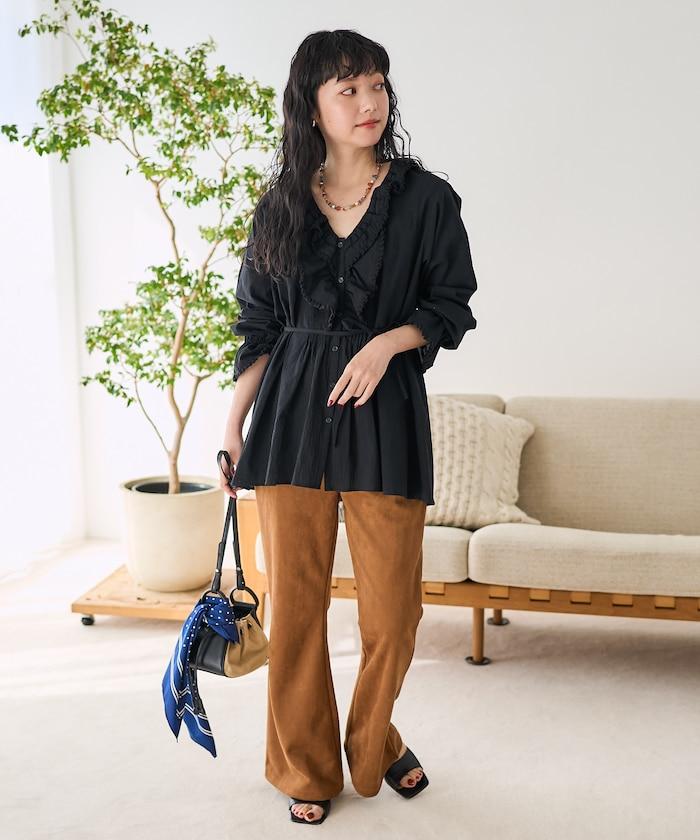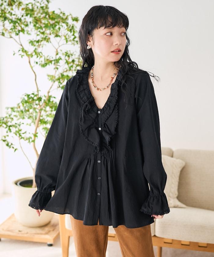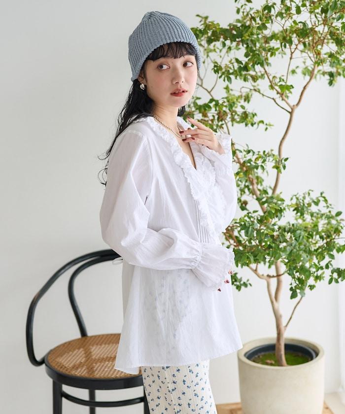 荷葉領 針褶襯衫