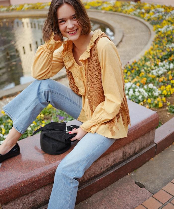 可隨意搭配牛仔褲或喇叭褲,時髦又可愛。