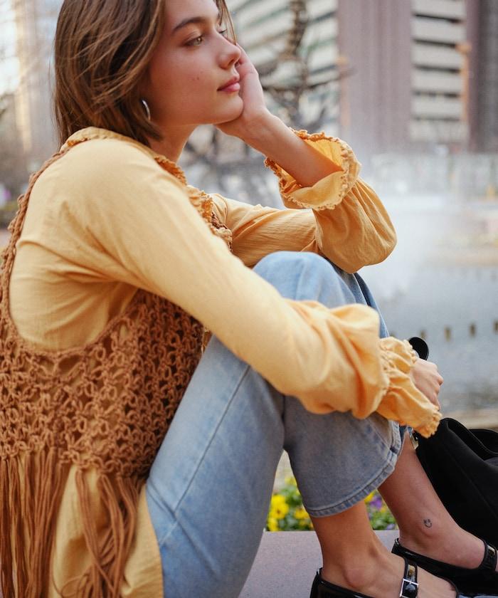荷葉邊棉質上衣。