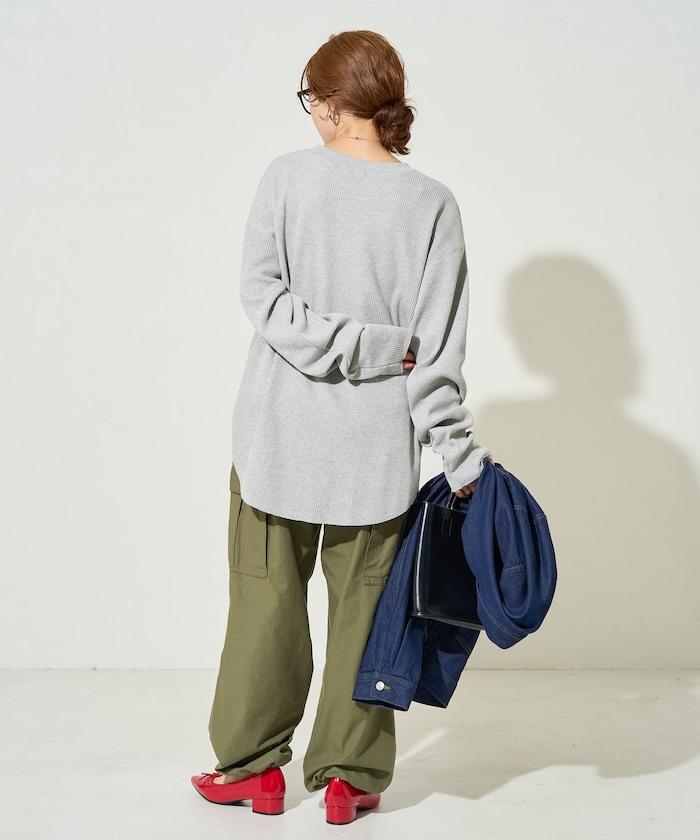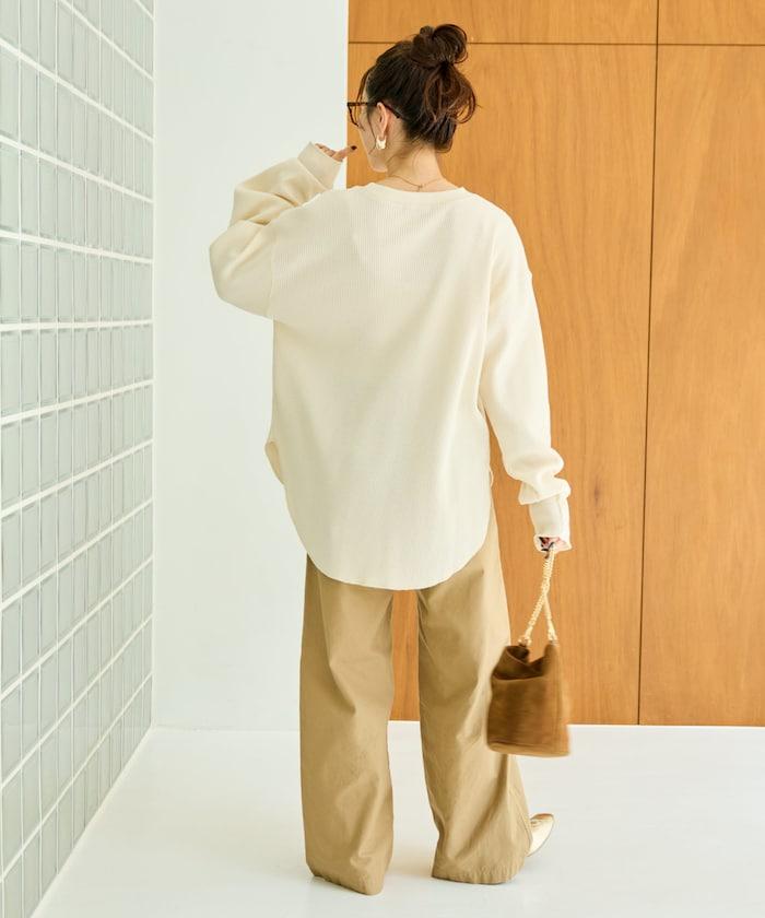 我們還建議將其與運動衫疊穿,從下襬處露出華夫格面料,充分利用長衫的長度!