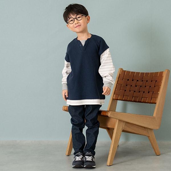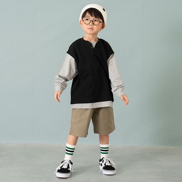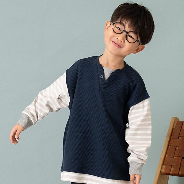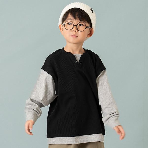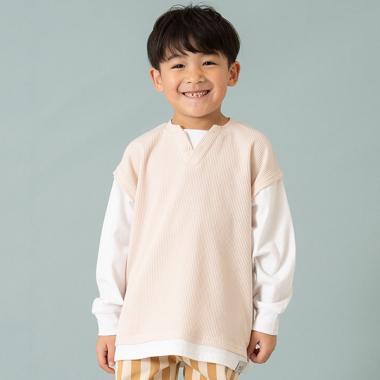 華夫格背心疊穿寬鬆長袖T恤