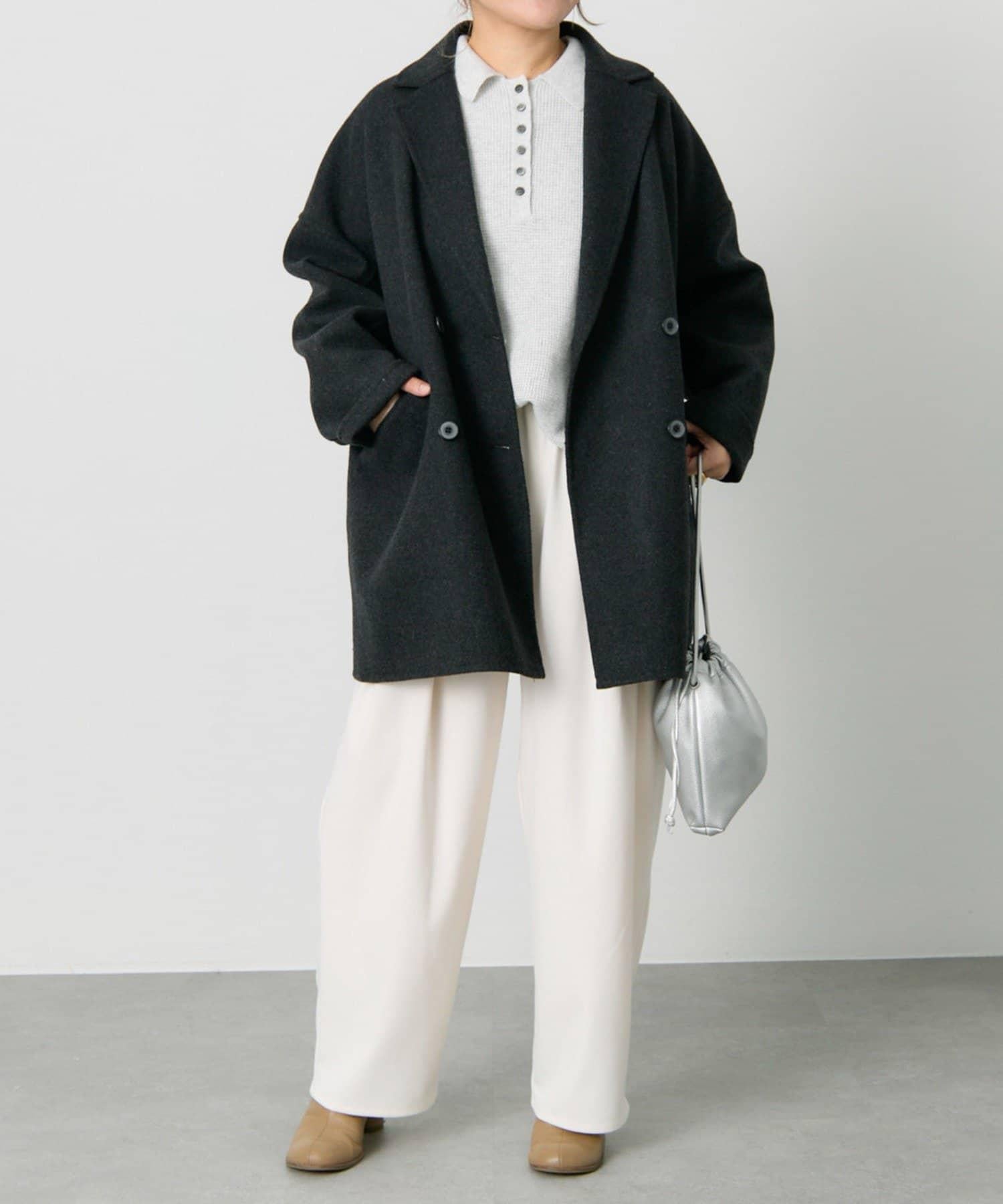 鈕釦敞開的款式可以看到內襯,也給人一種舒適感。
