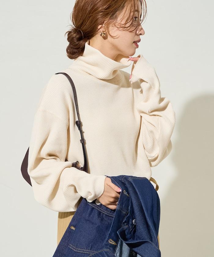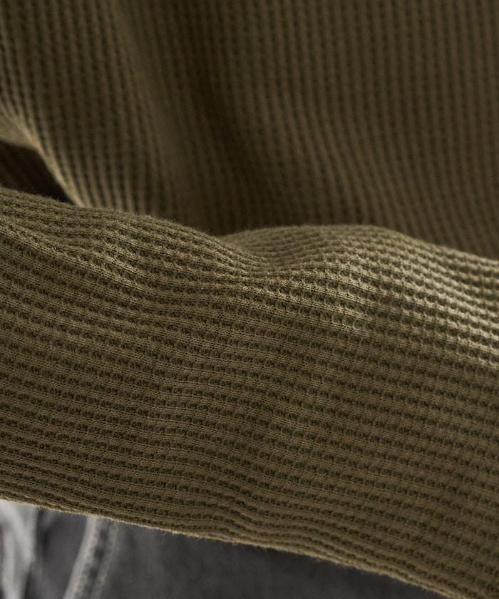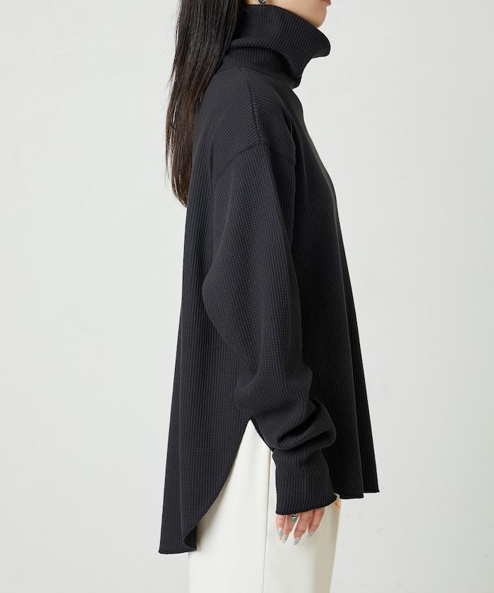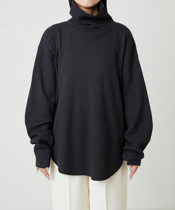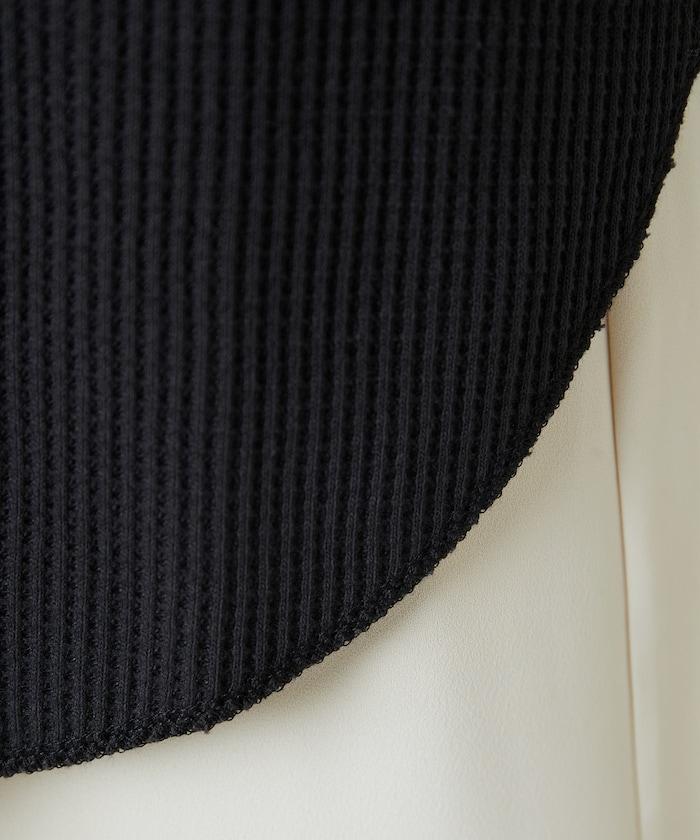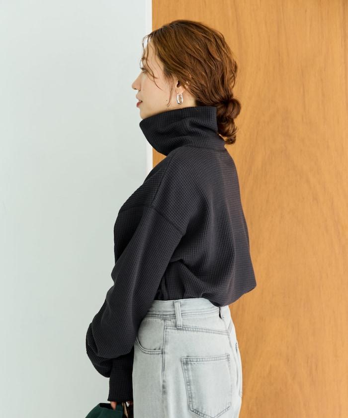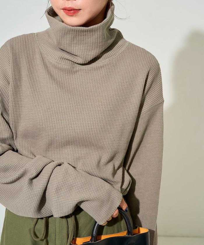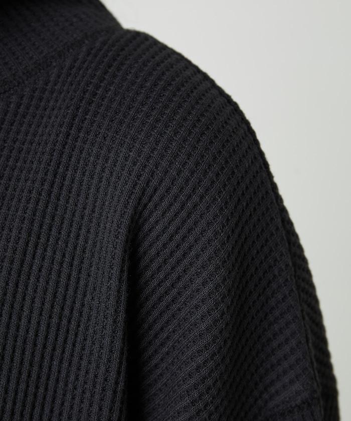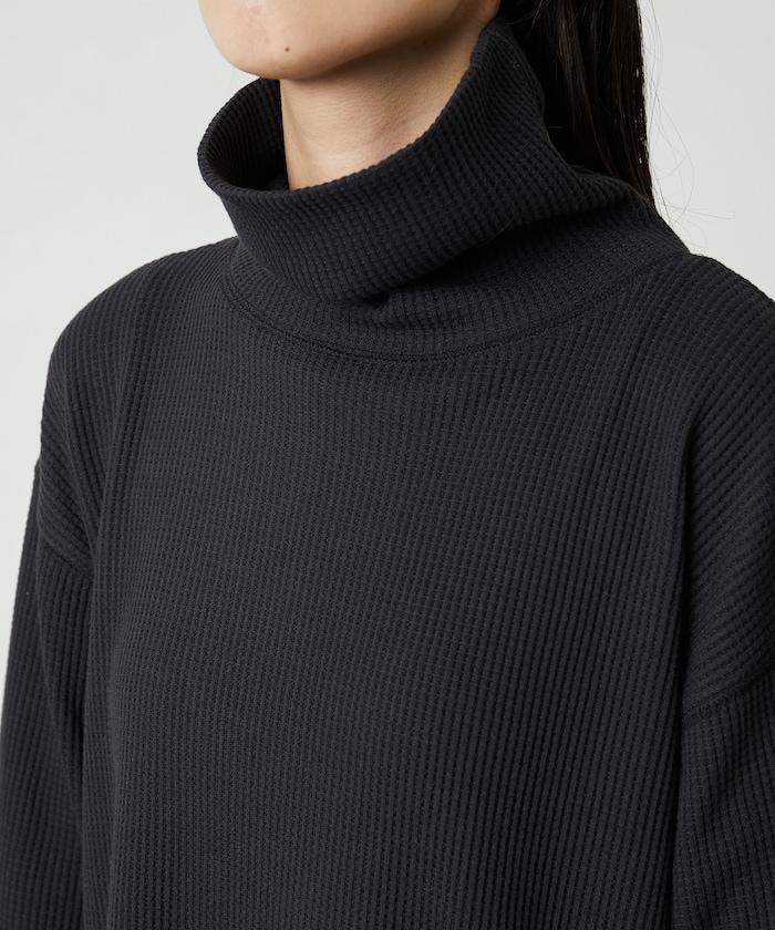 頸部的皺褶輪廓和華夫格面料給人舒適的印象。