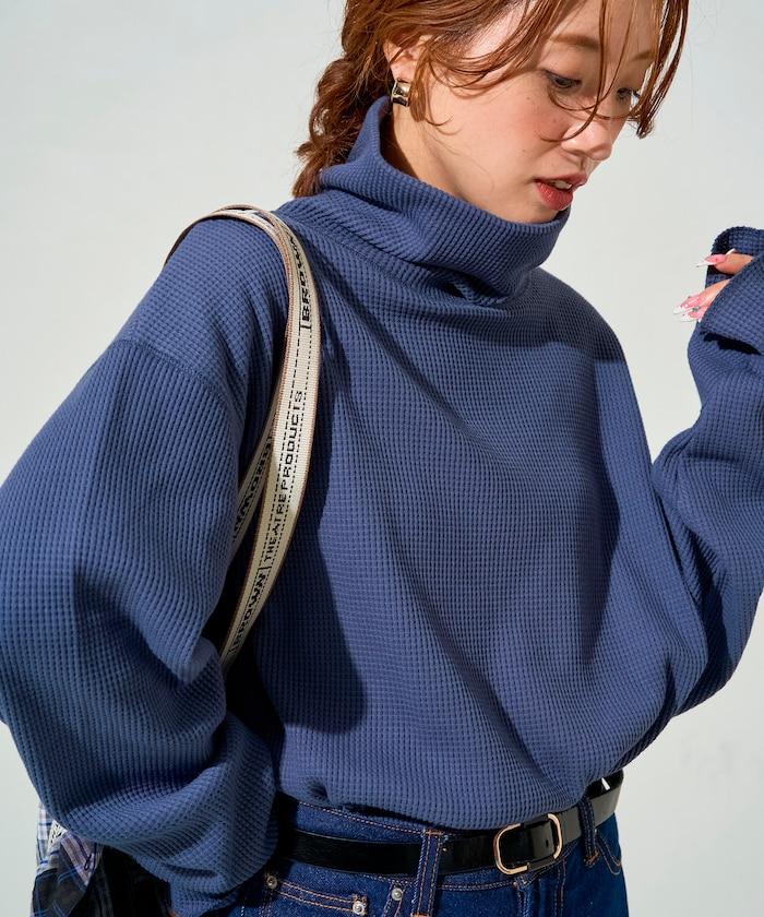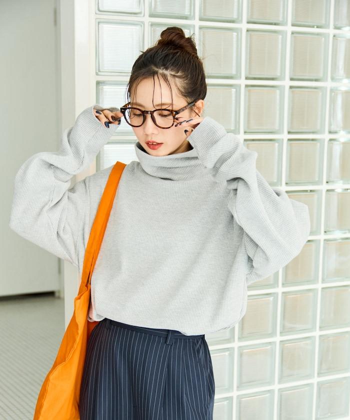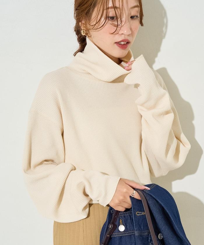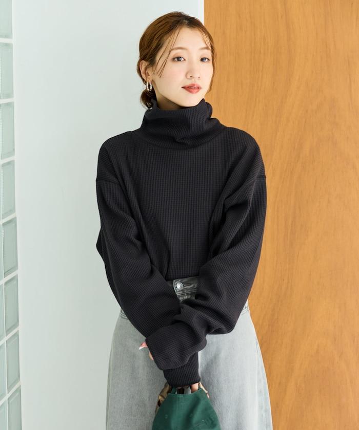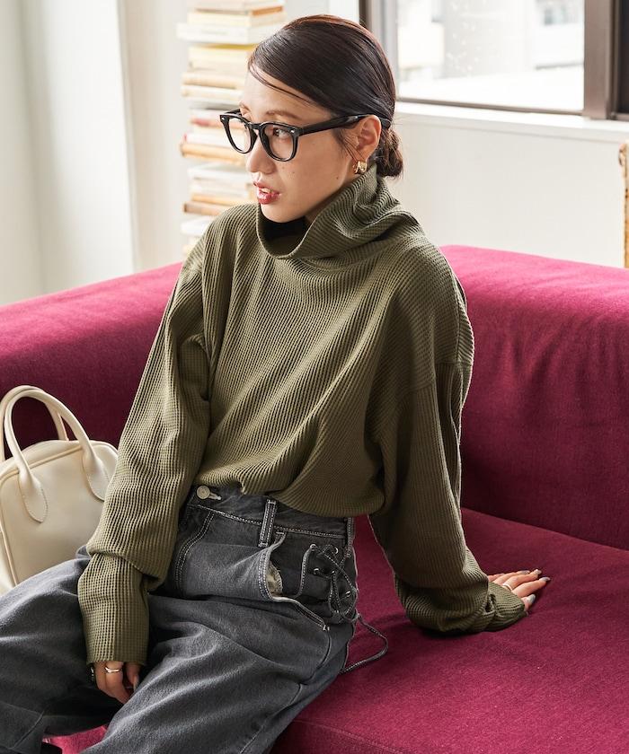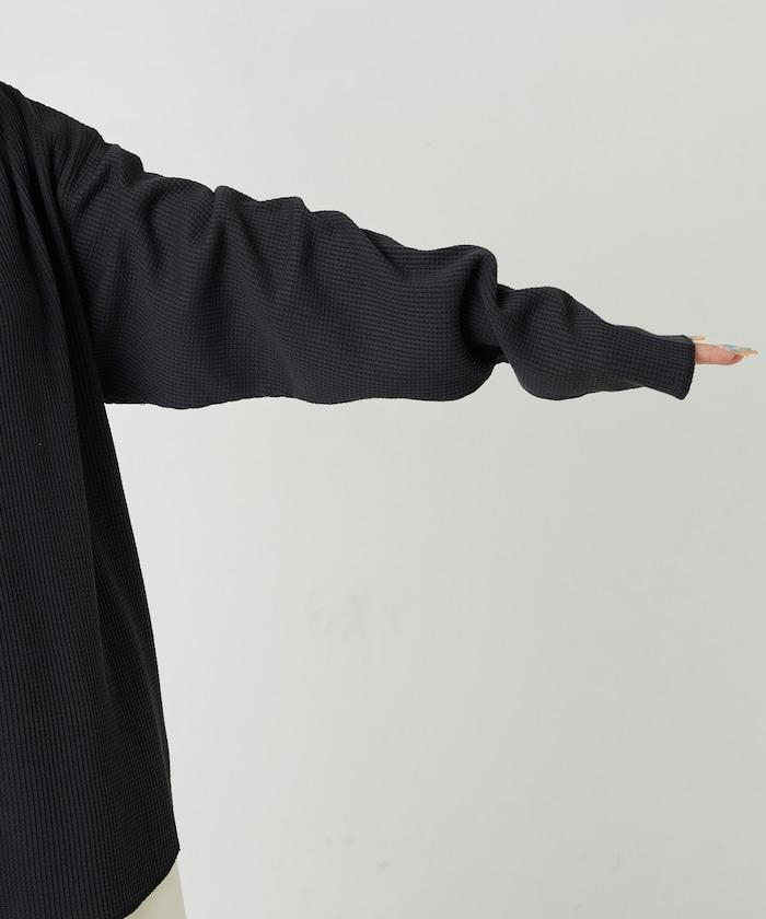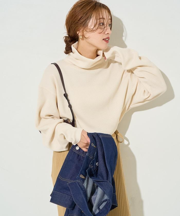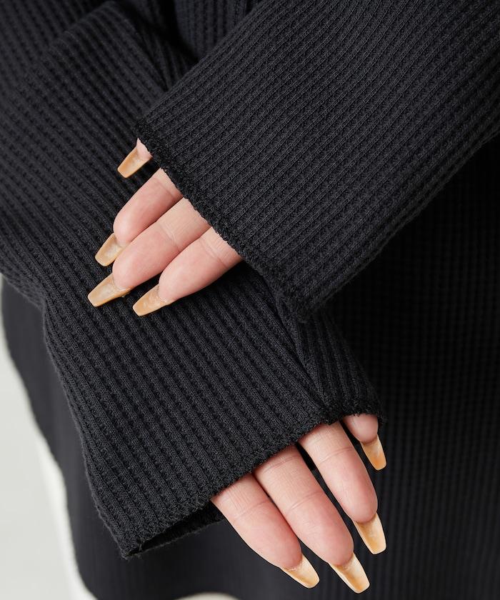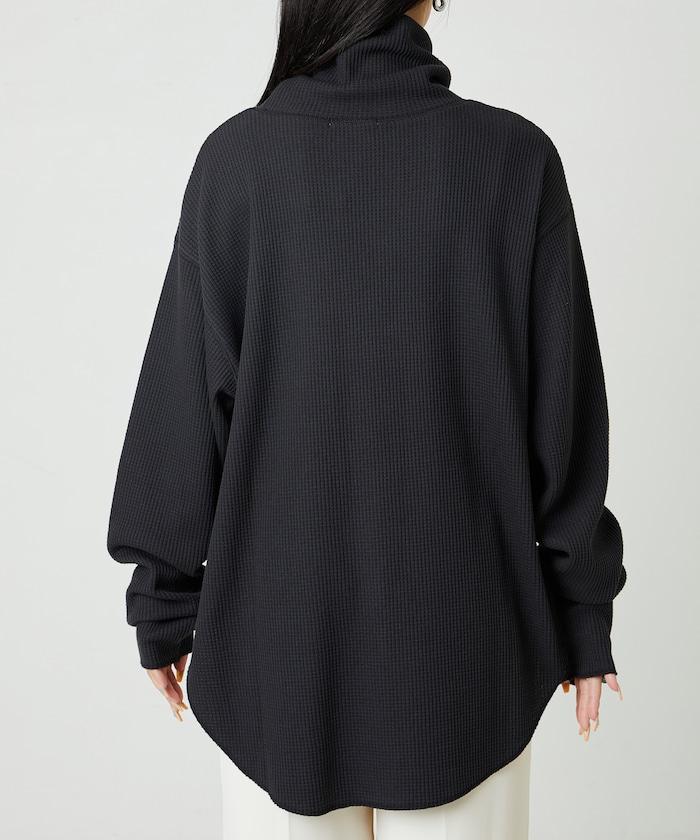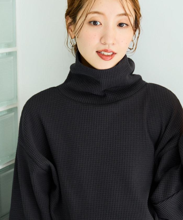頸部的皺褶輪廓和華夫格面料給人舒適的印象。