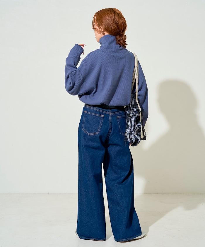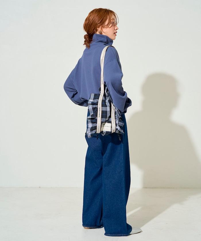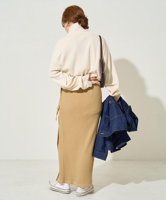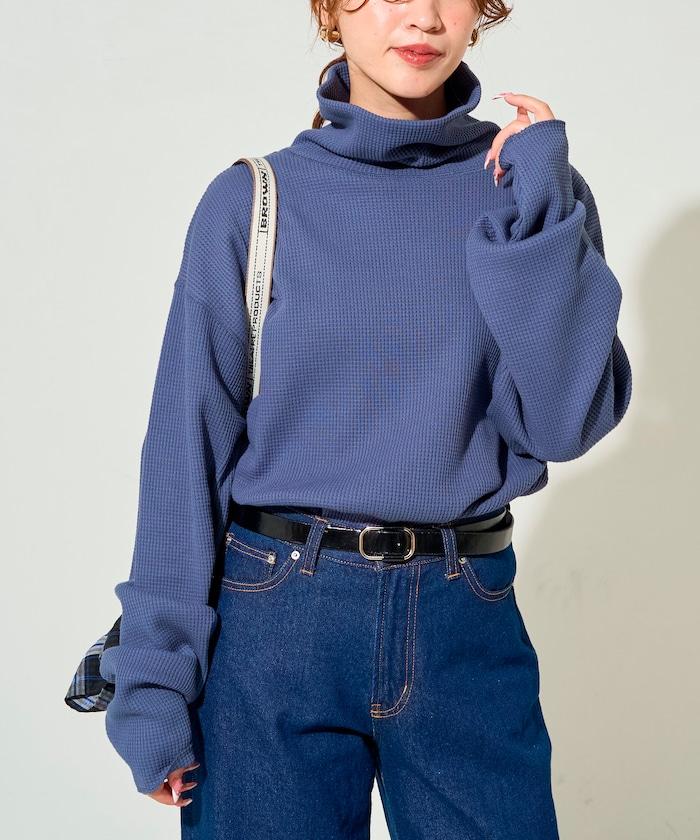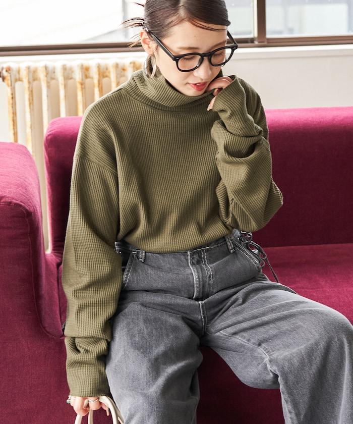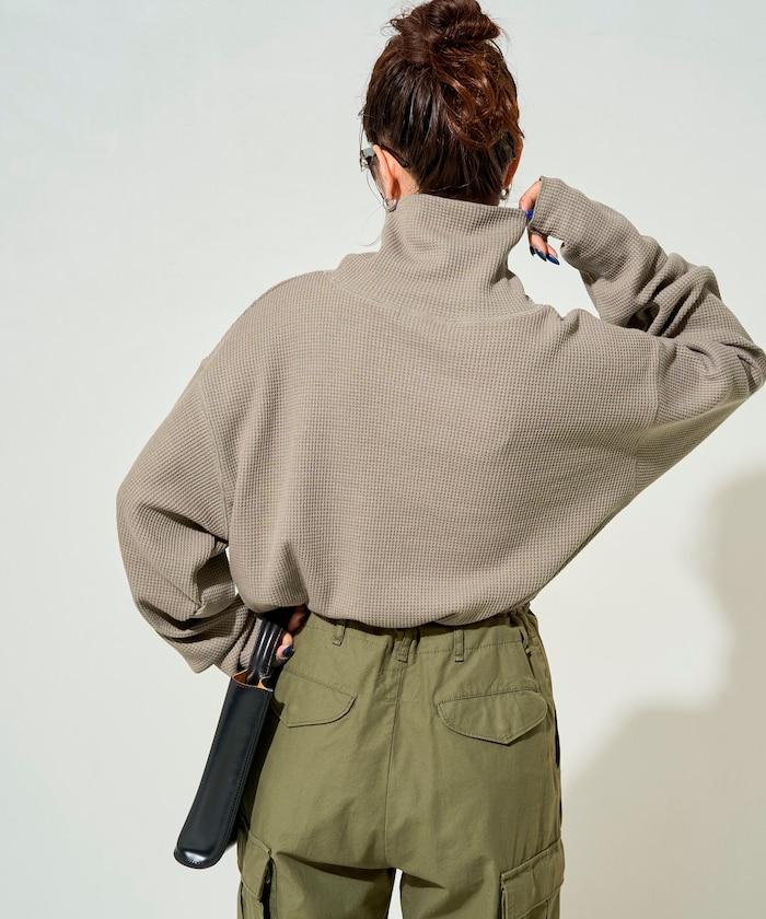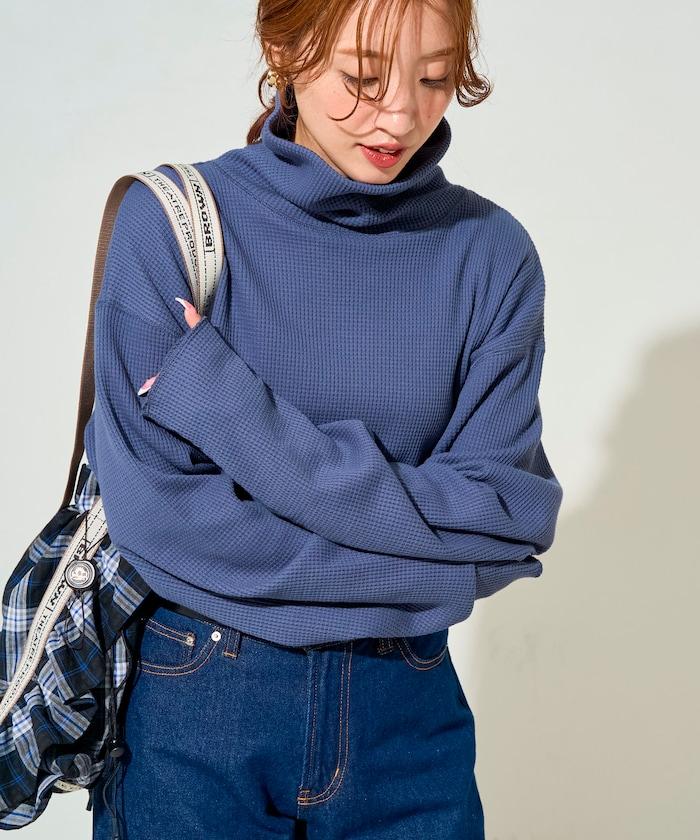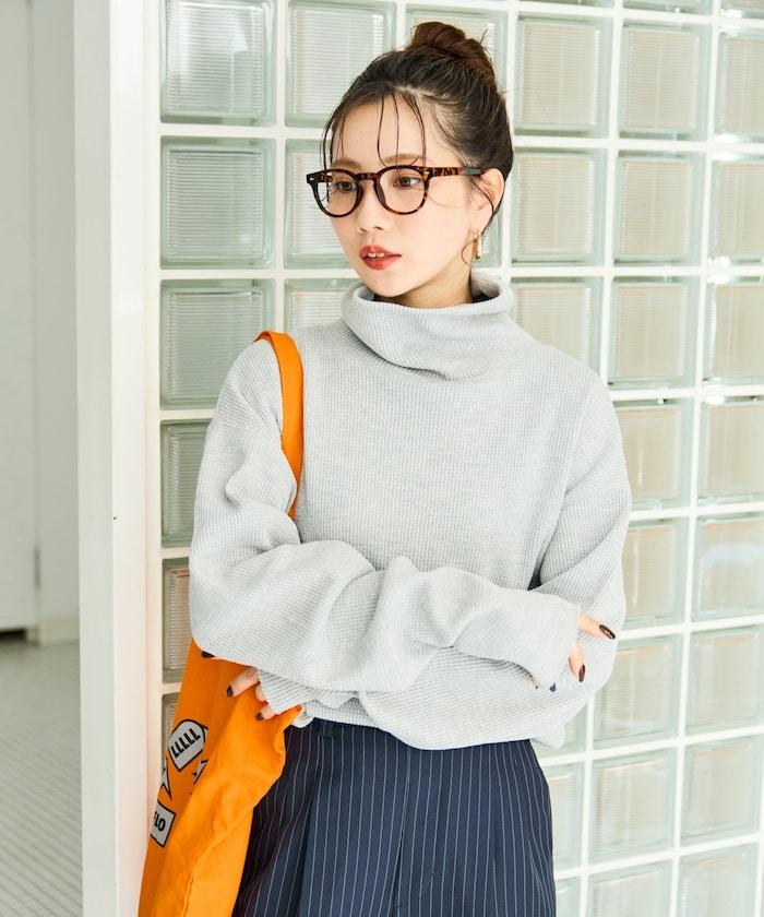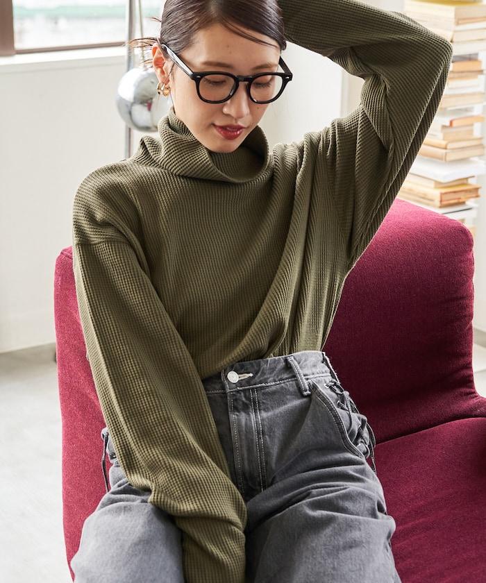 頸部的皺褶輪廓和華夫格面料給人舒適的印象。
