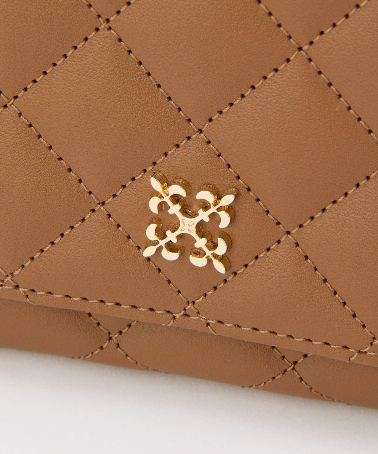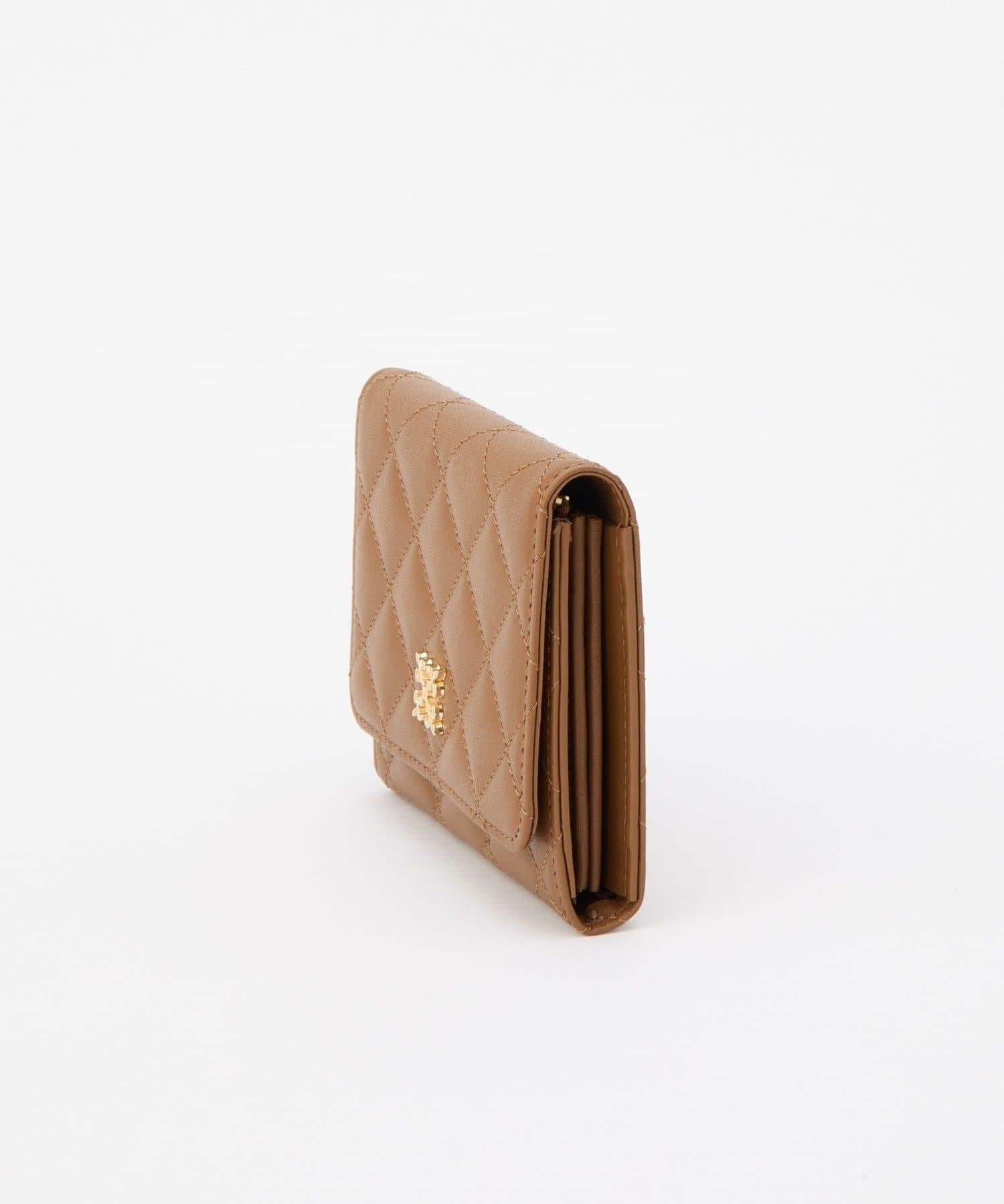 長款錢包採用優雅的亮麵皮革,搭配豐滿的絎縫線。