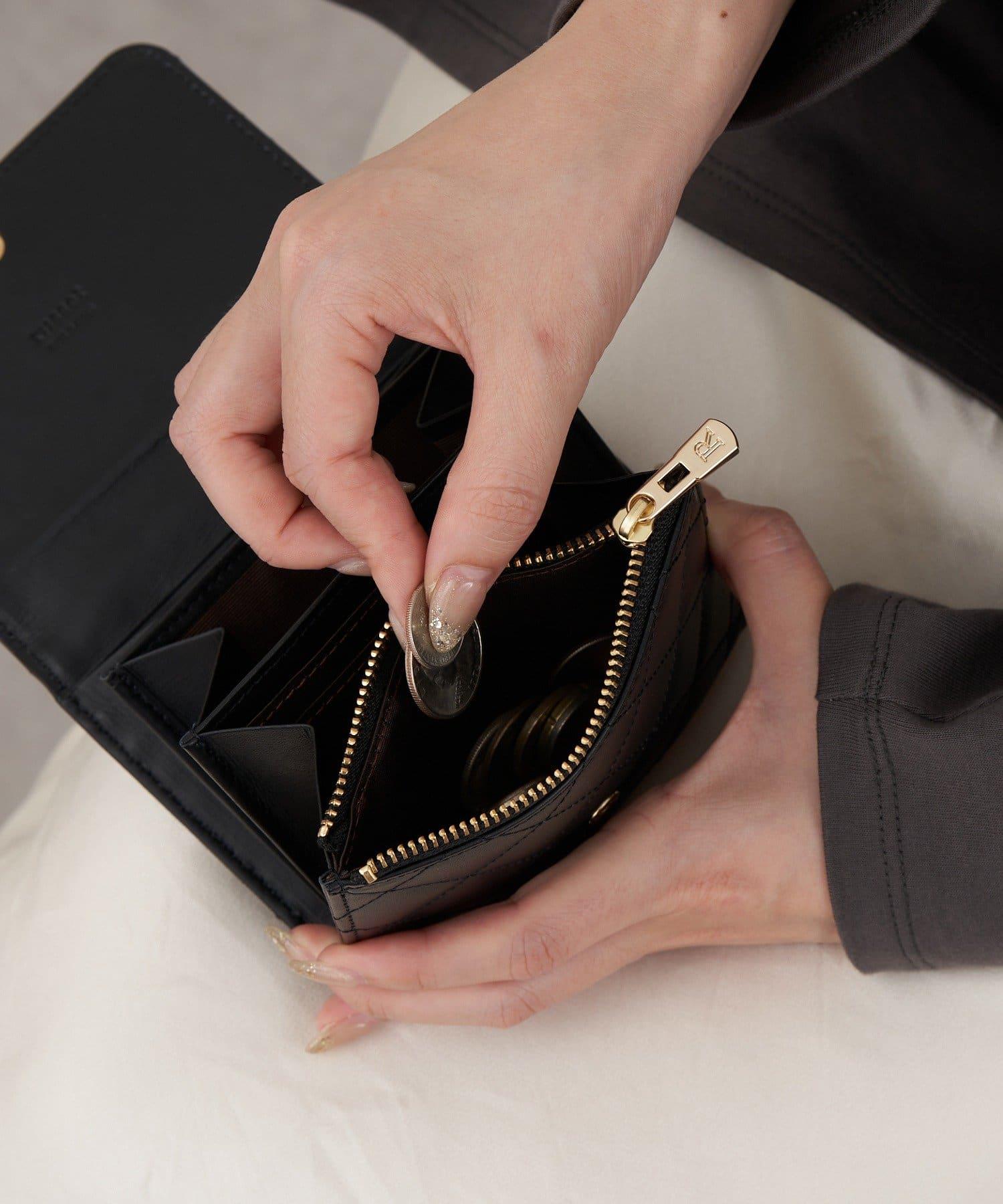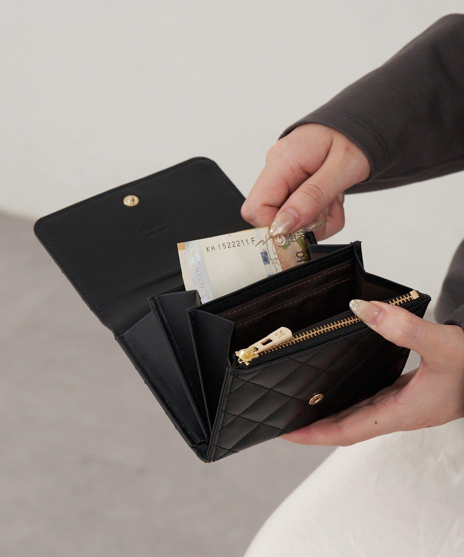這款雙摺錢包可以整齊地存放卡片、紙幣和硬幣。