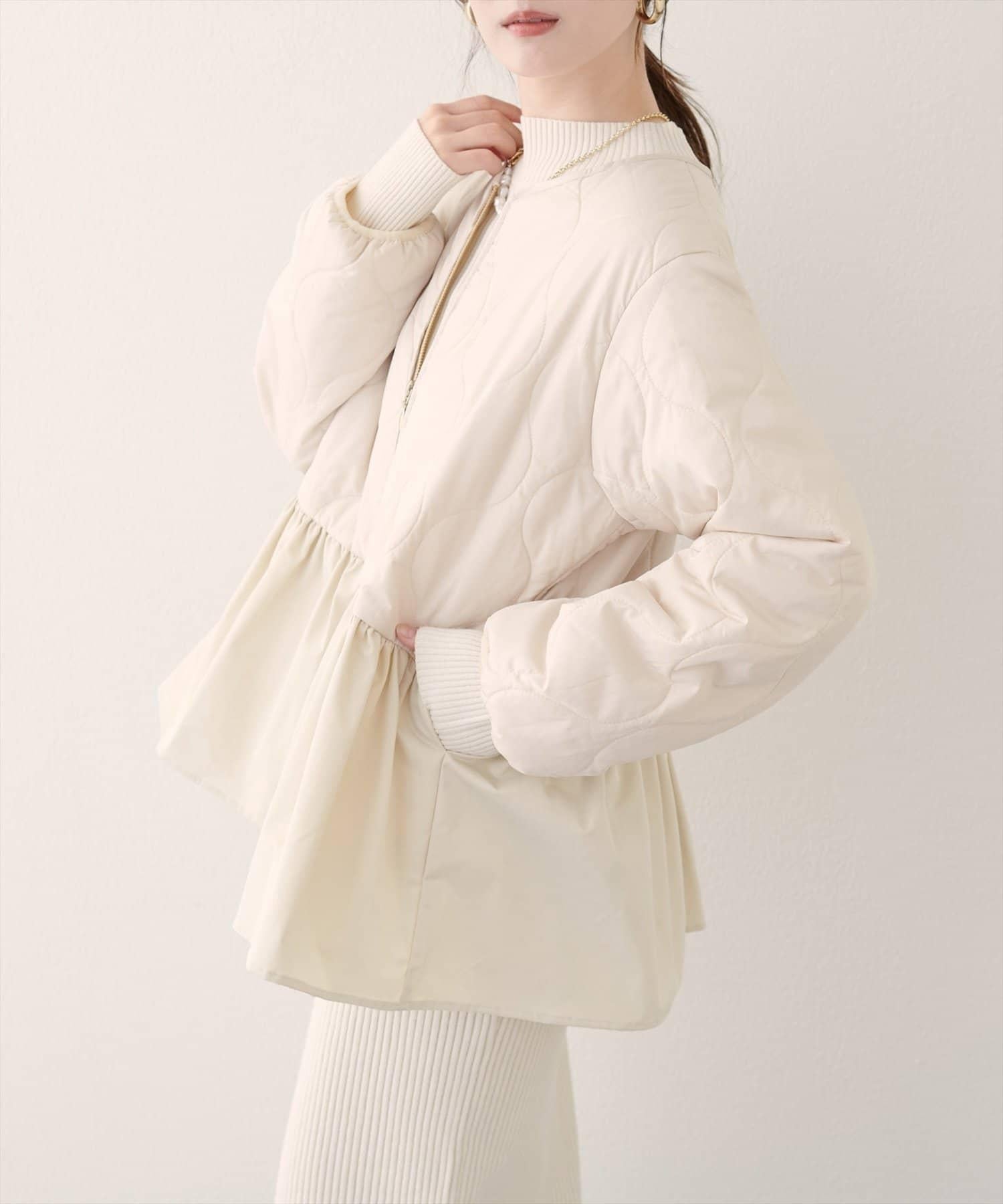 這款絎縫夾克採用柔和舒展的蓬蓬裙廓形,增強了成年人的可愛感。