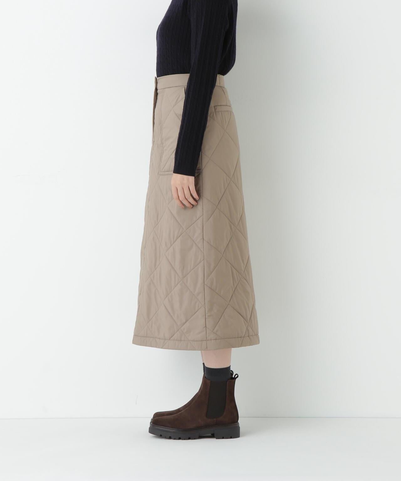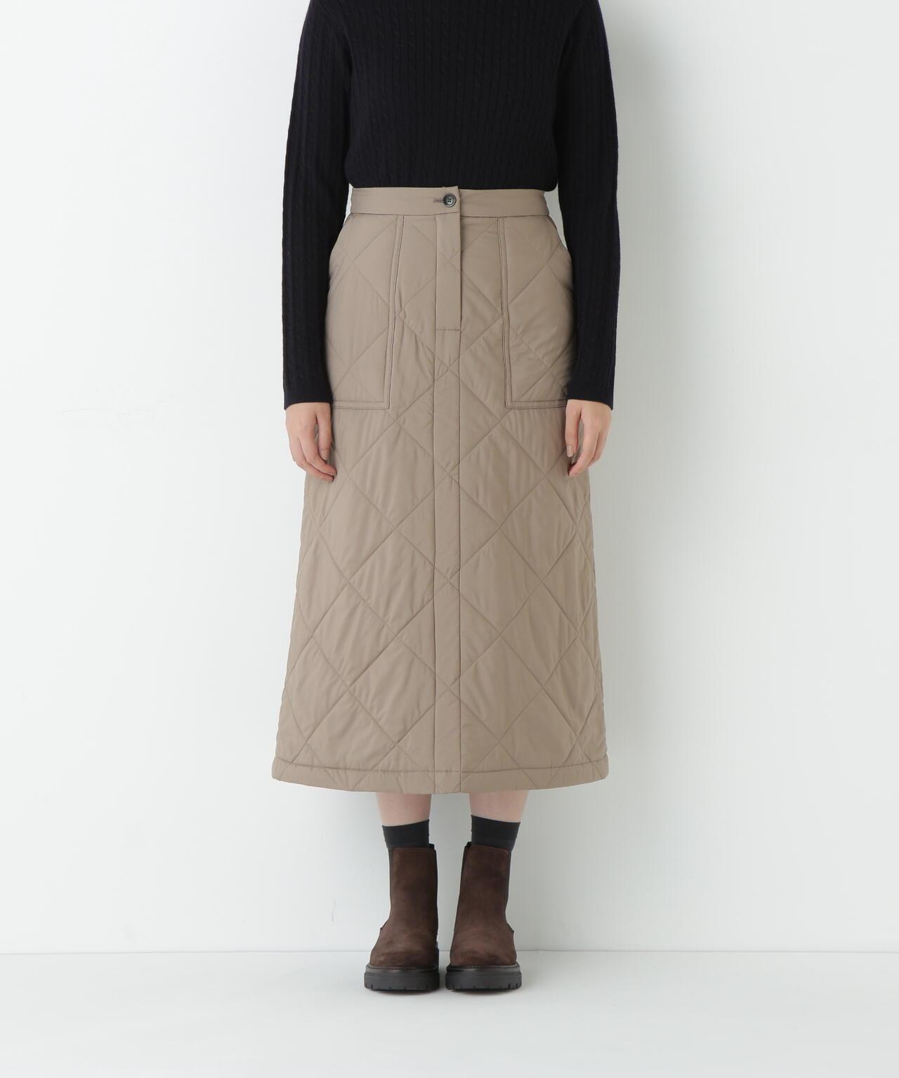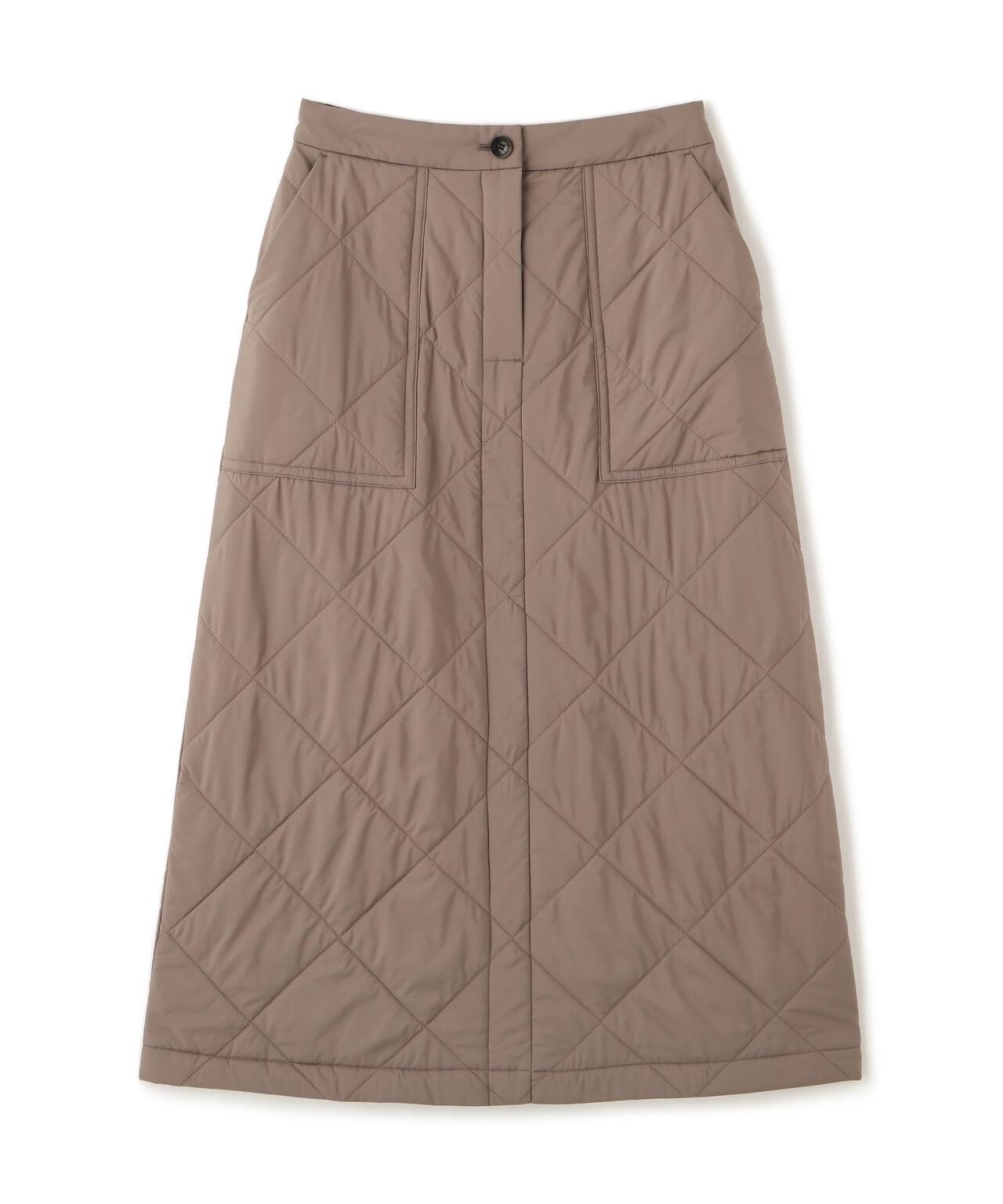 絎縫短裙,用當季材料將你包裹得暖暖的 [設計要點] 這款 A 字裙有貝克細節和大菱形絎縫。裙子由啞光聚酯塔夫綢製成,內襯為絎縫棉夾層。有今年👍流行的摩卡色可供選擇。推薦座標] 這款打底褲既可用於運動風格,也可用於傳統風格。還推薦用於戶外場景。靴子可與之搭配,更顯季節感。