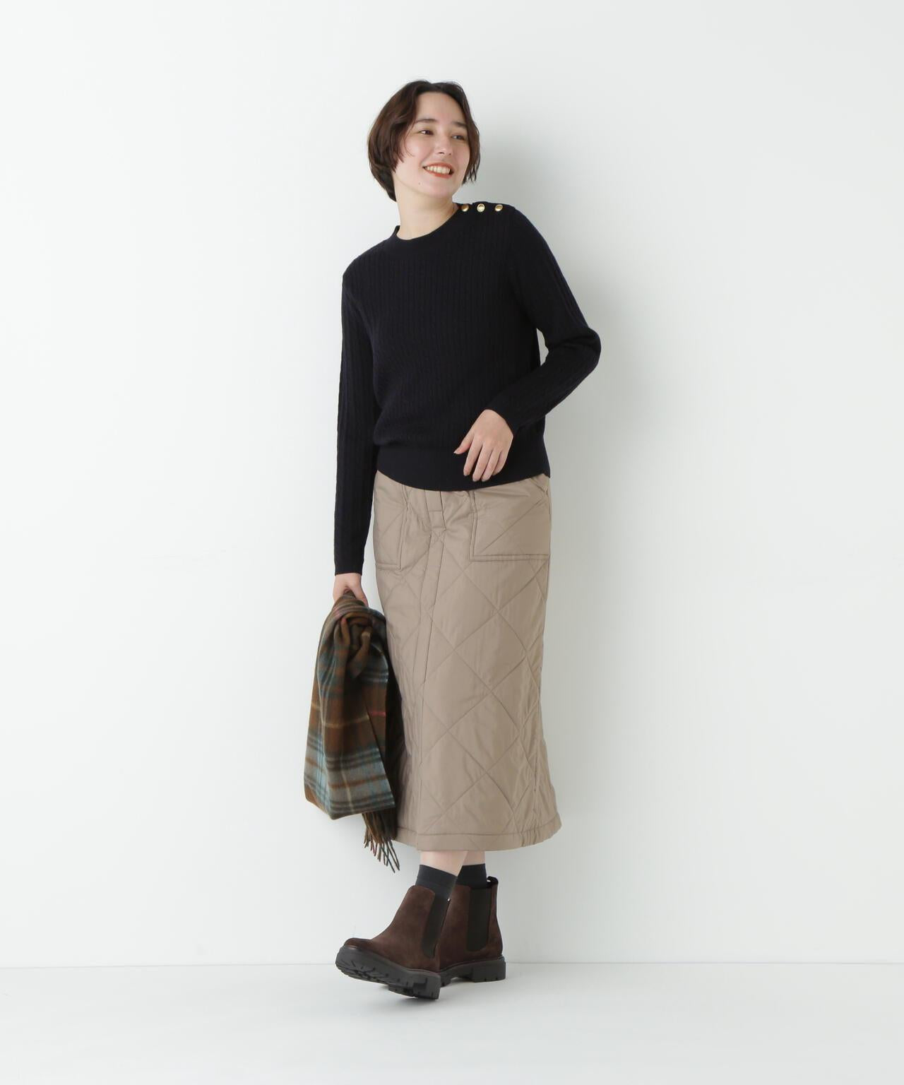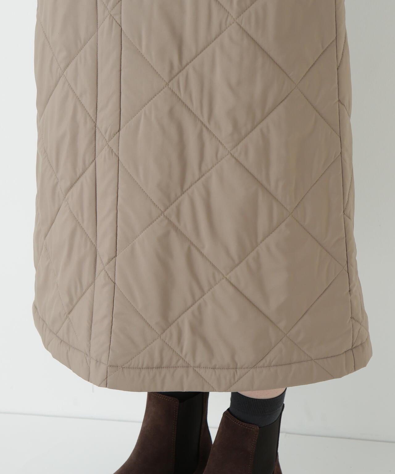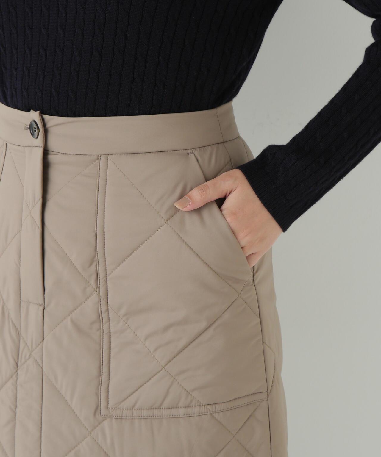 絎縫短裙,用當季材料將你包裹得暖暖的 [設計要點] 這款 A 字裙有貝克細節和大菱形絎縫。裙子由啞光聚酯塔夫綢製成,內襯為絎縫棉夾層。有今年👍流行的摩卡色可供選擇。推薦座標] 這款打底褲既可用於運動風格,也可用於傳統風格。還推薦用於戶外場景。靴子可與之搭配,更顯季節感。