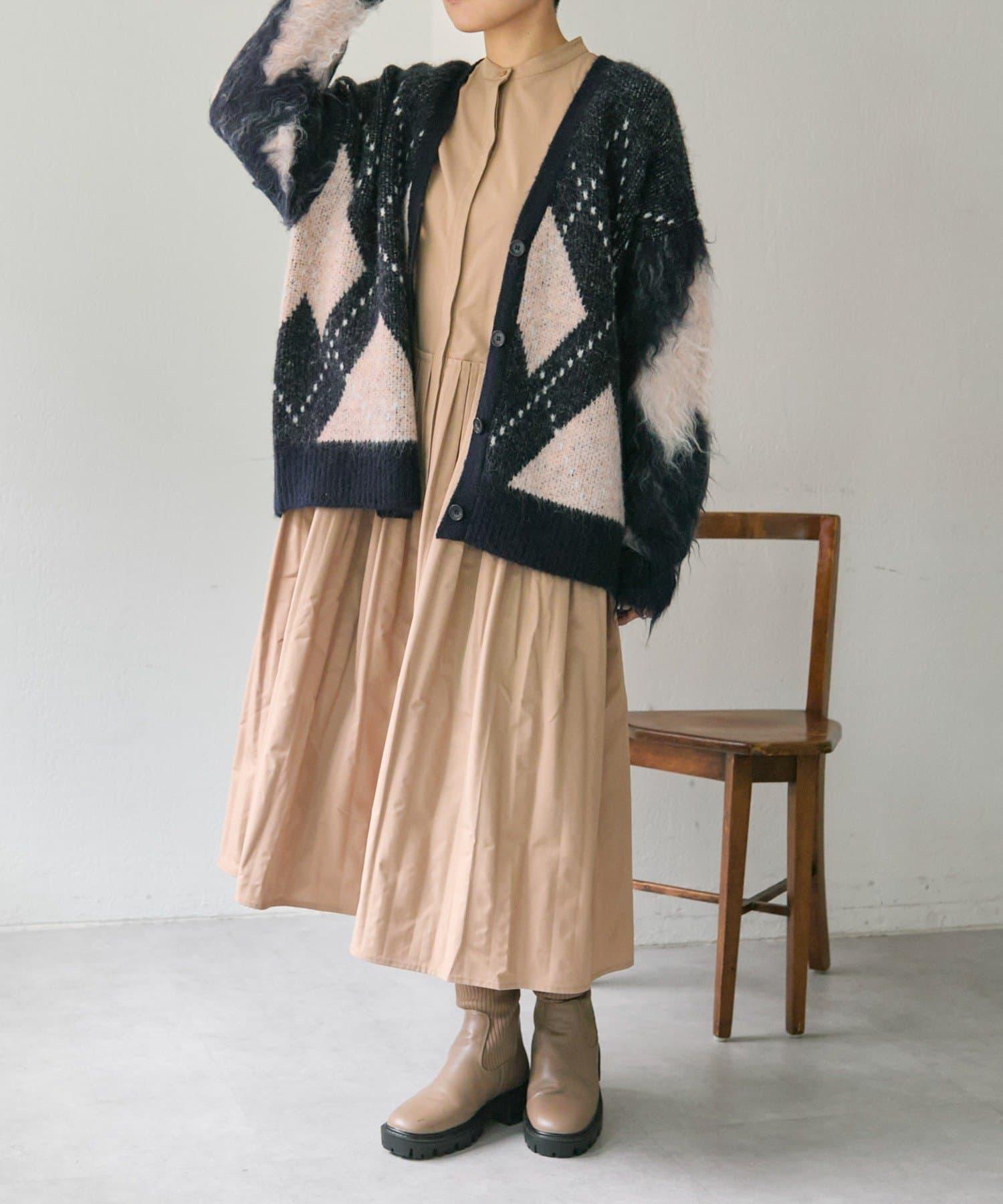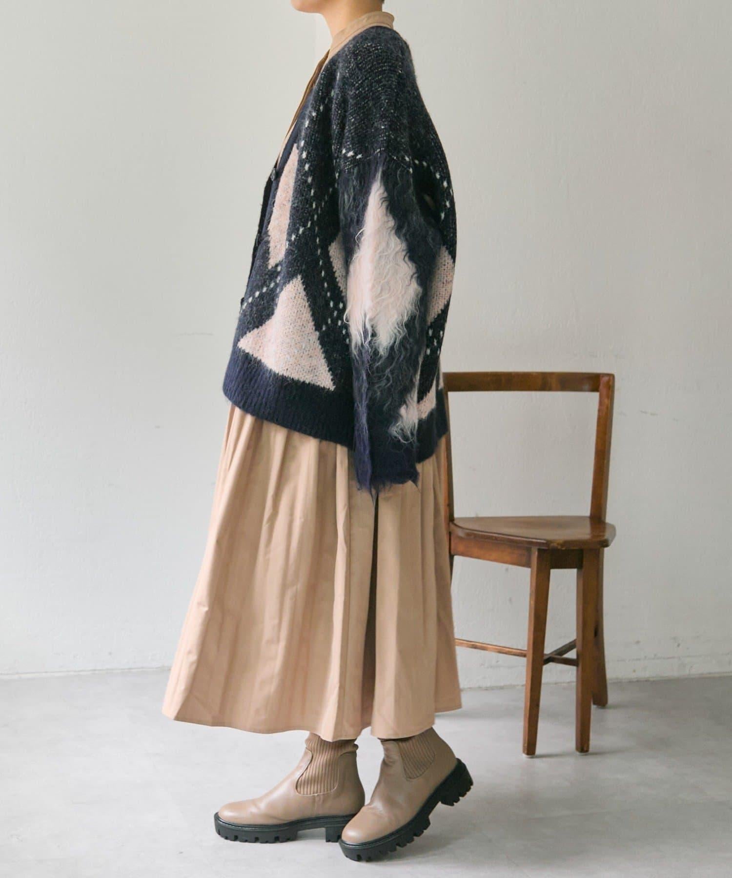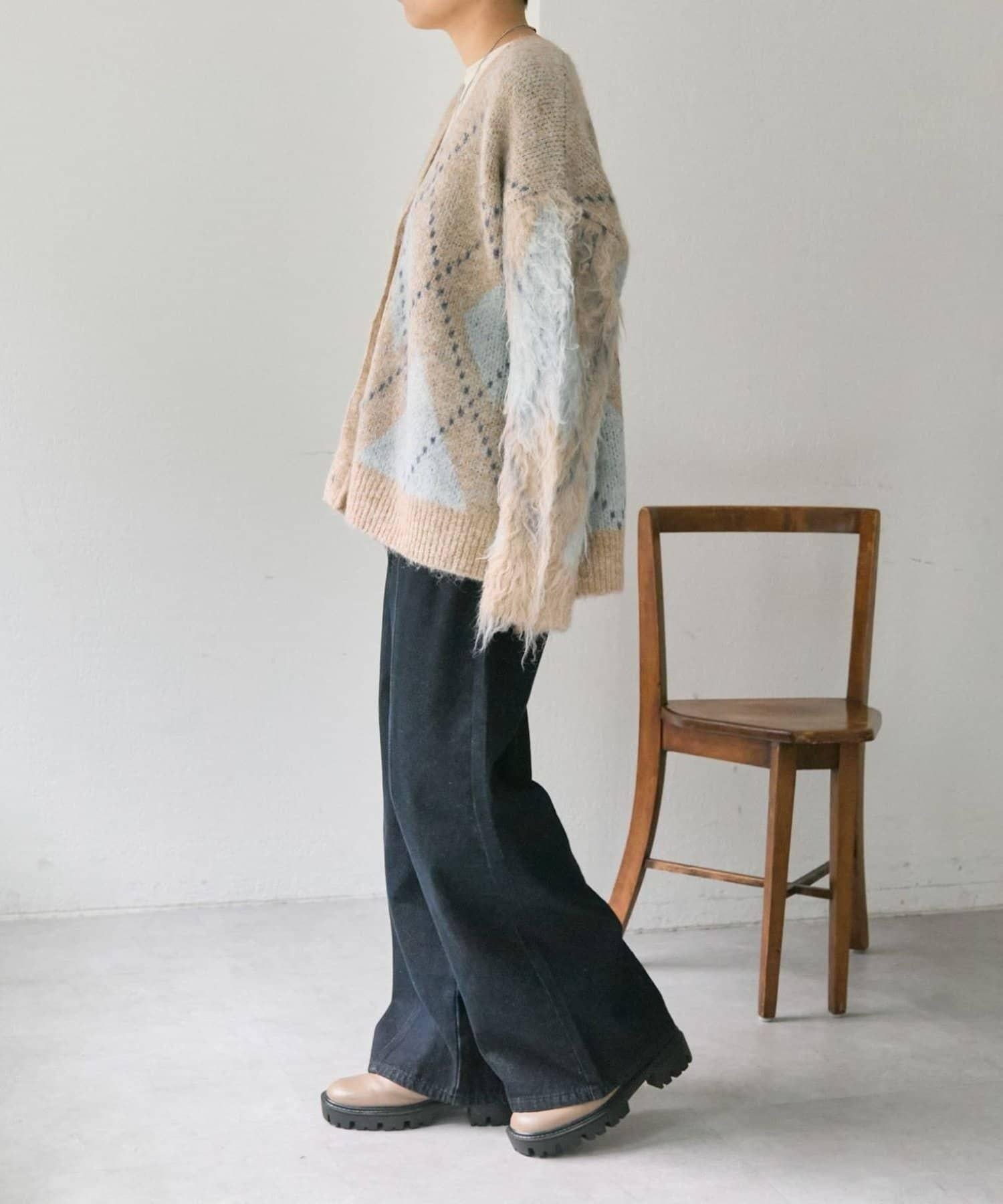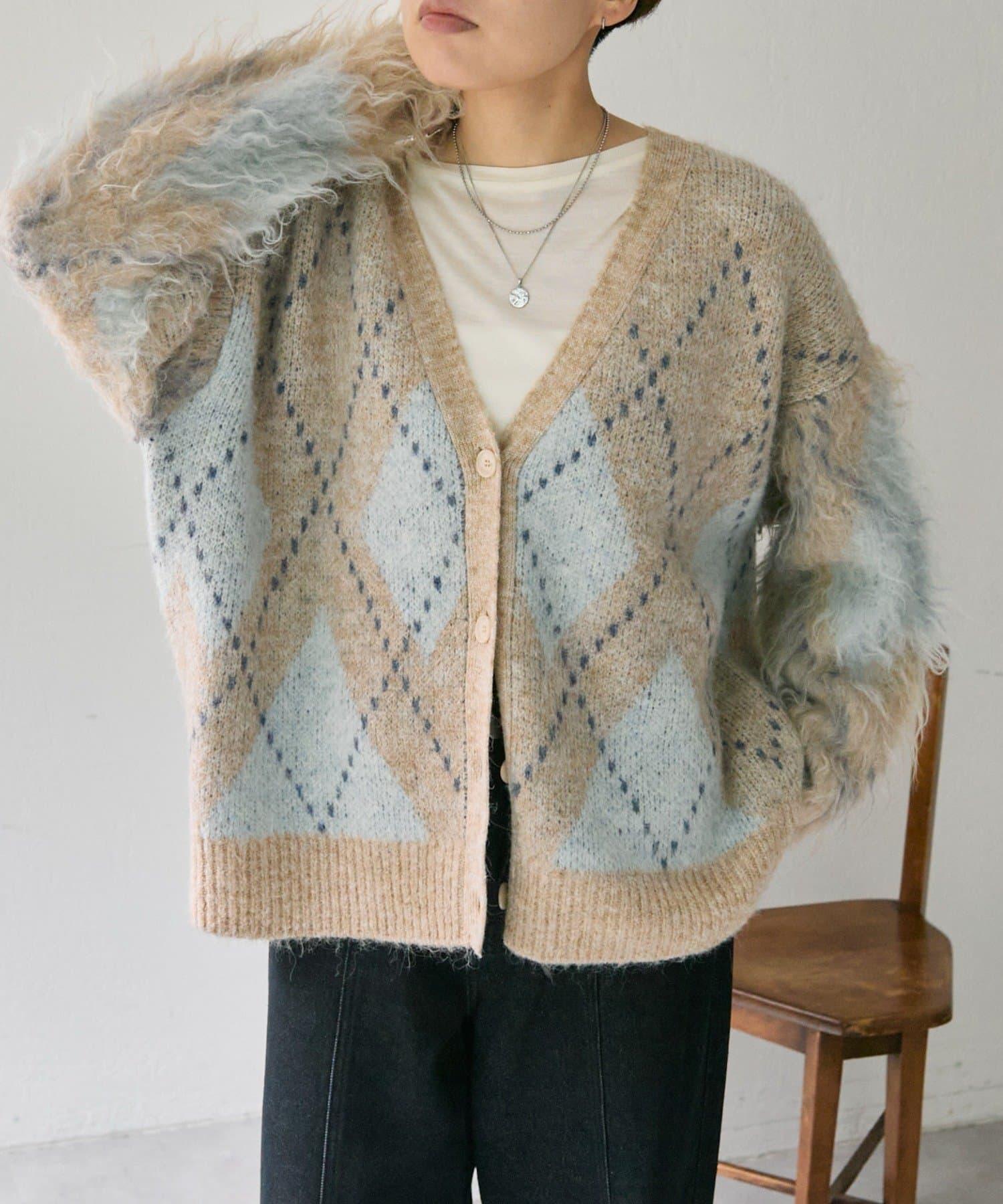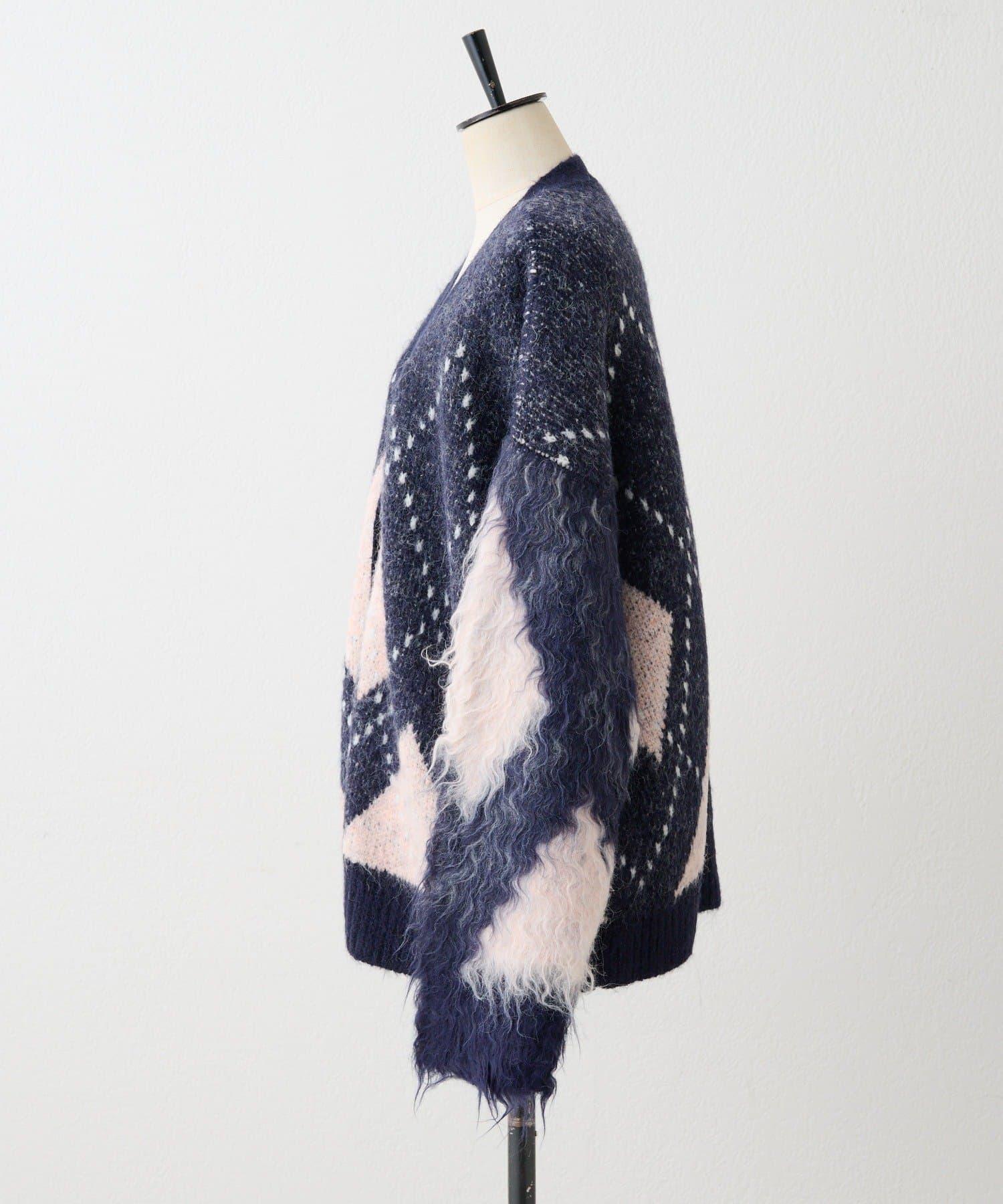 這款針織開衫帶有大面積的菱形圖案,引人注目,營造出一種季節氛圍。