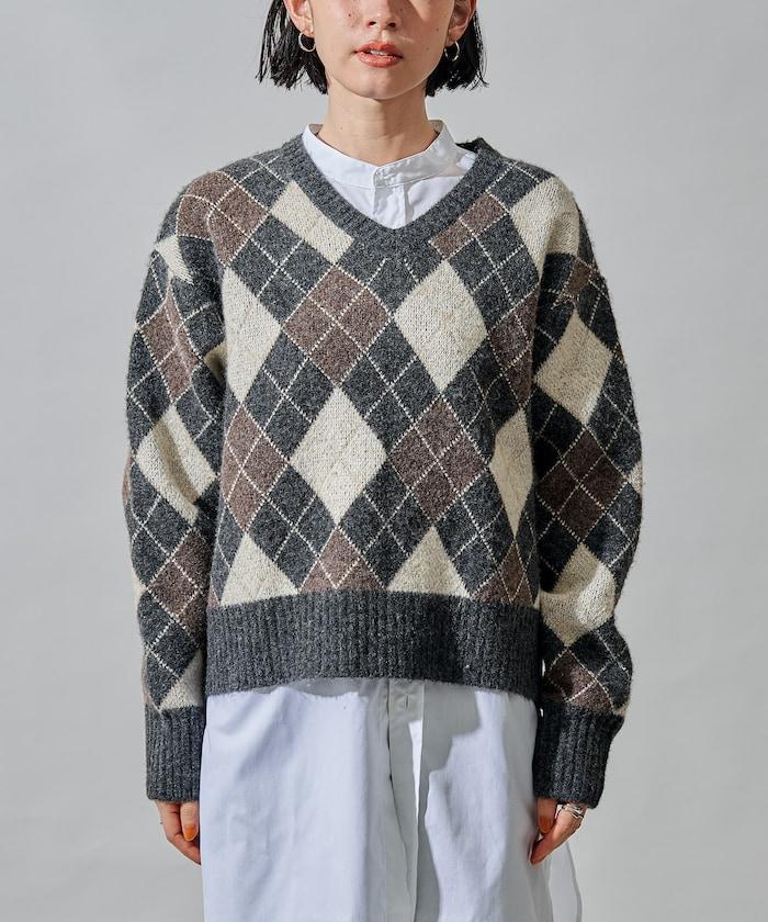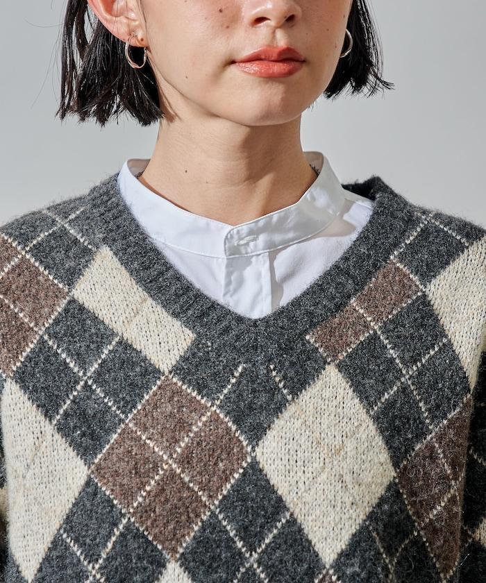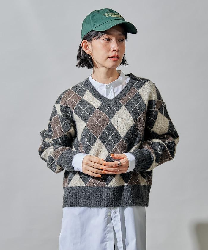 菱格V領針織衫