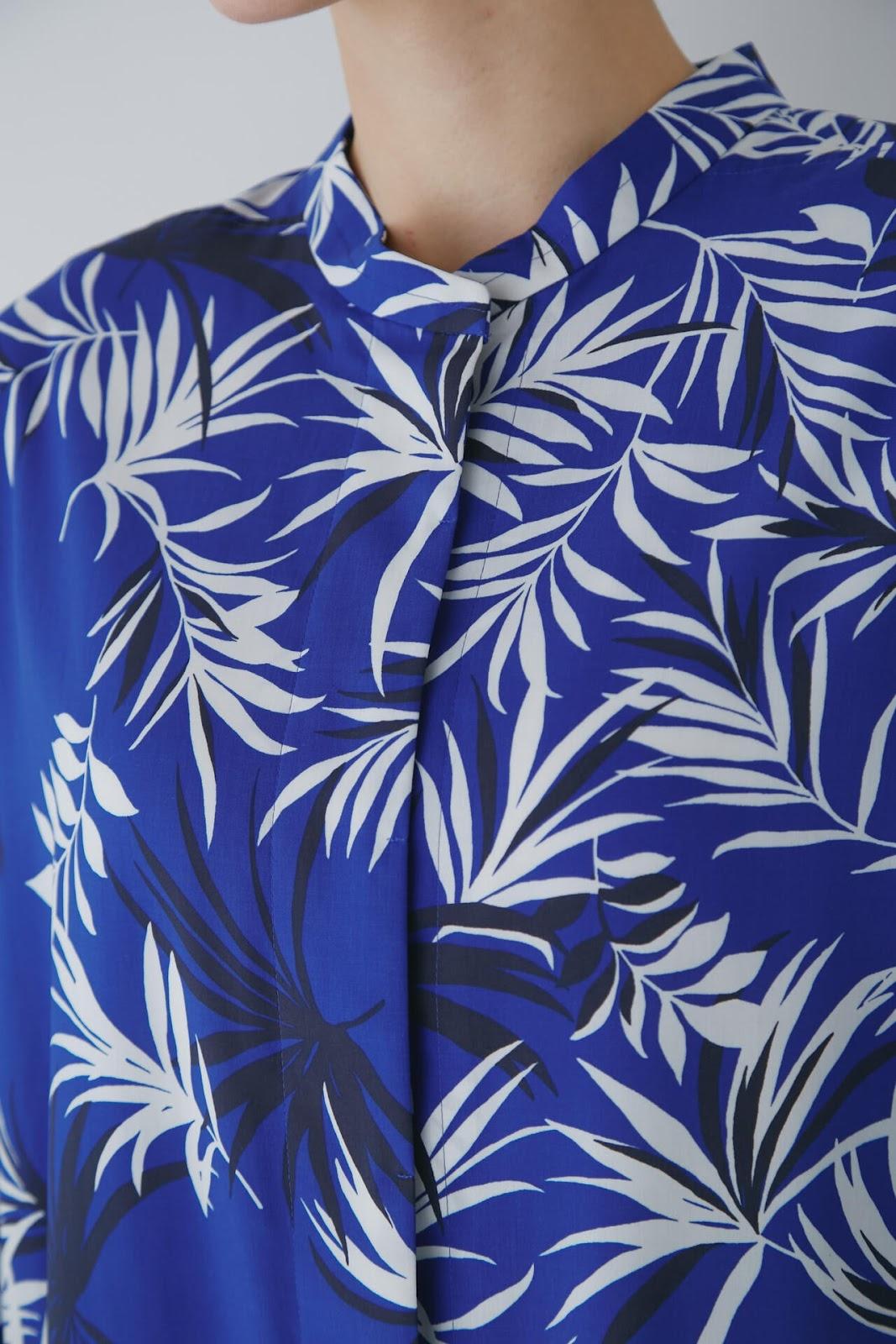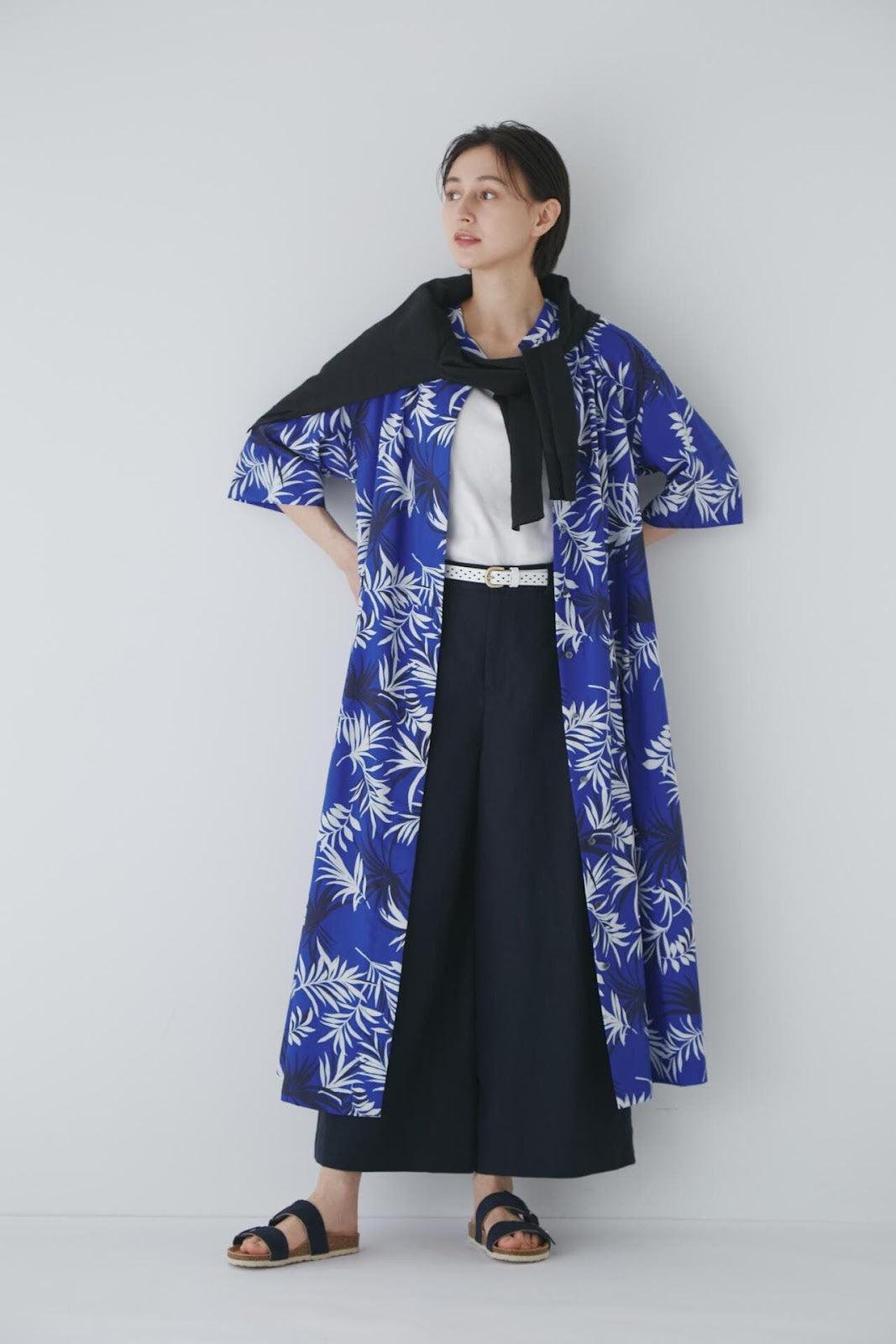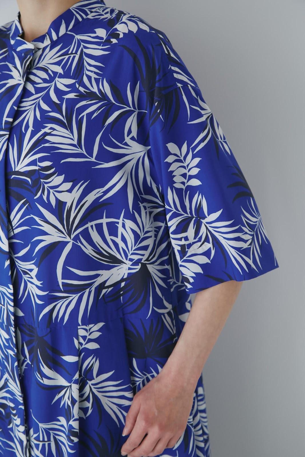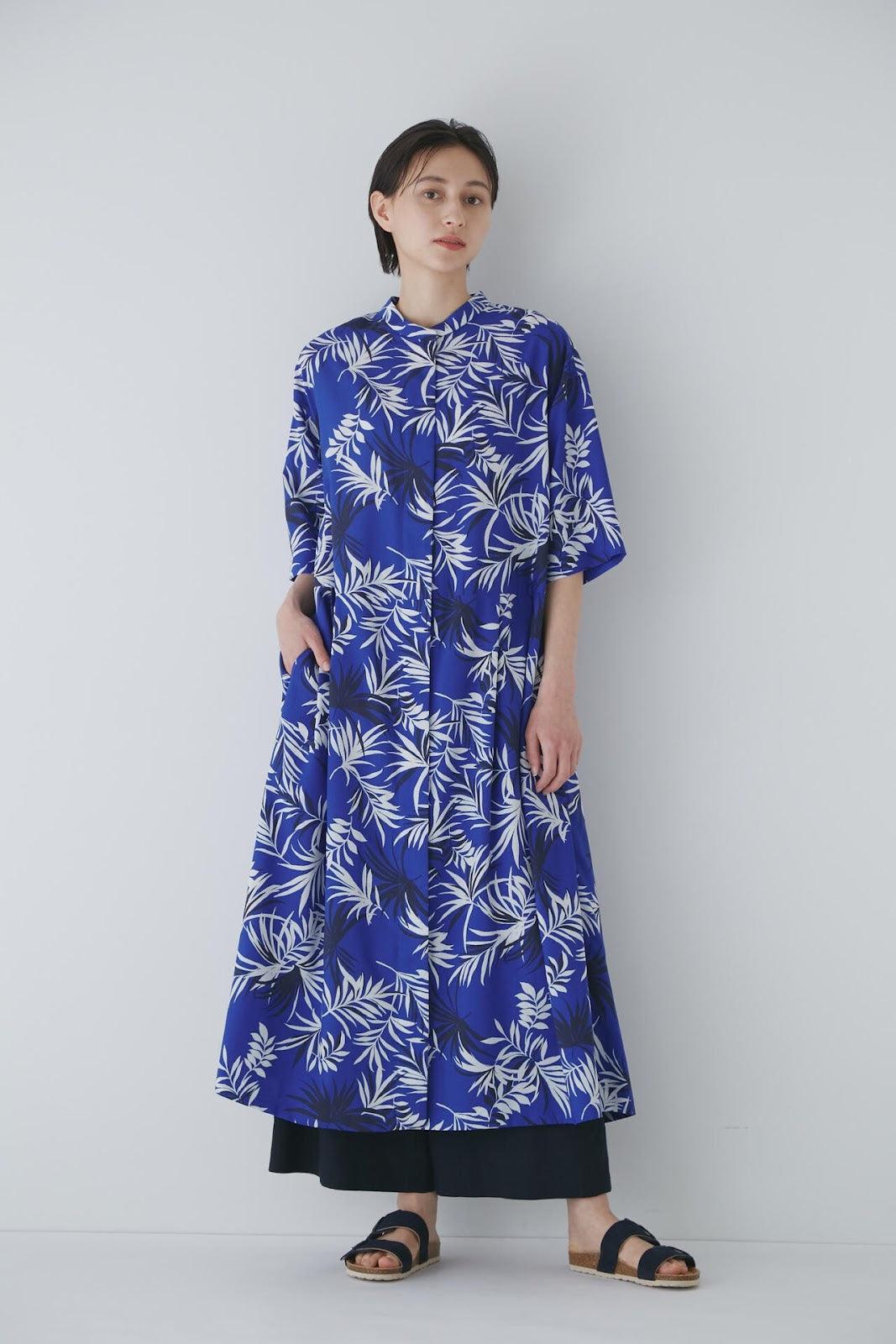 華麗搶眼的樹葉印花連衣裙 [設計特色] 這款帶領襯衫連衣裙印有大片樹葉圖案,充滿度假氣息。寬鬆的廓形足以罩住肌膚,腰部接縫處的收口細節是一大亮點。襯衫採用原創印花滌綸紡紗面料製成,帶有淡淡的自然氣息,落落大方。面料採用滌綸紡紗面料,觸感自然,落落大方。它是初夏出遊的完美單品,因為只需快速穿上它,就能讓人眼前一亮。