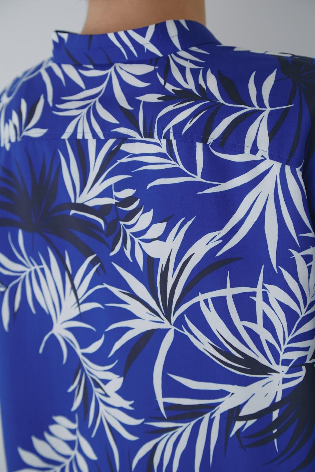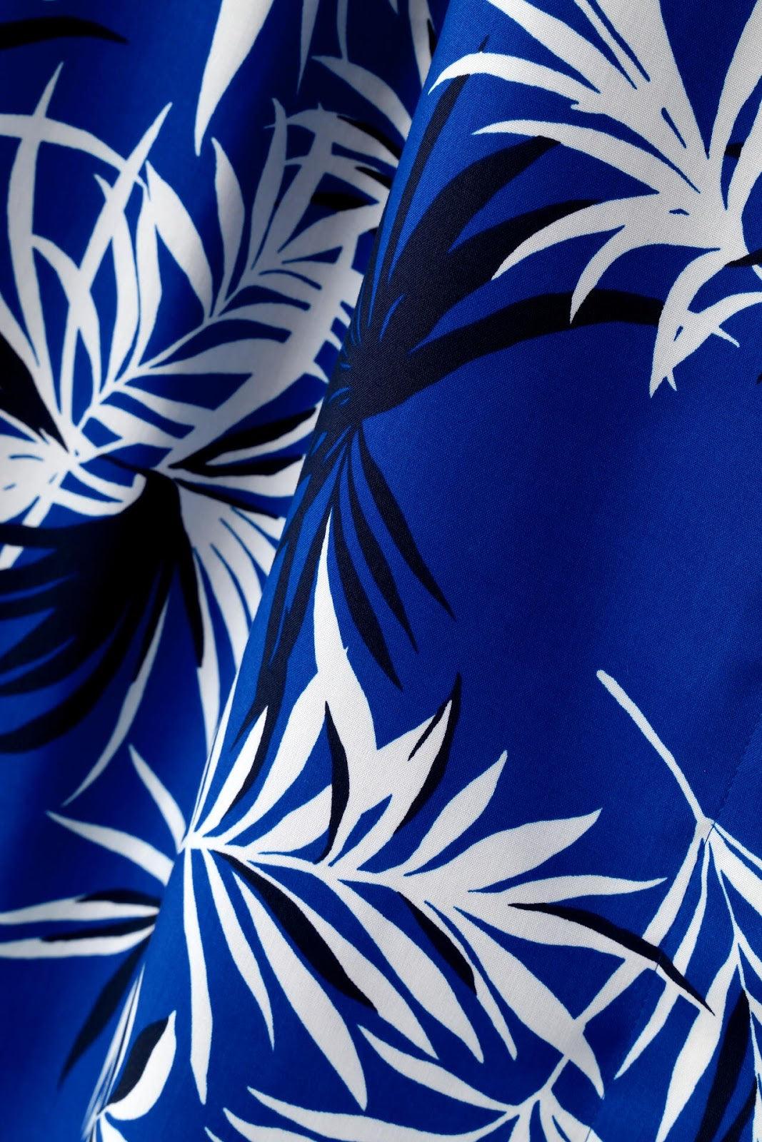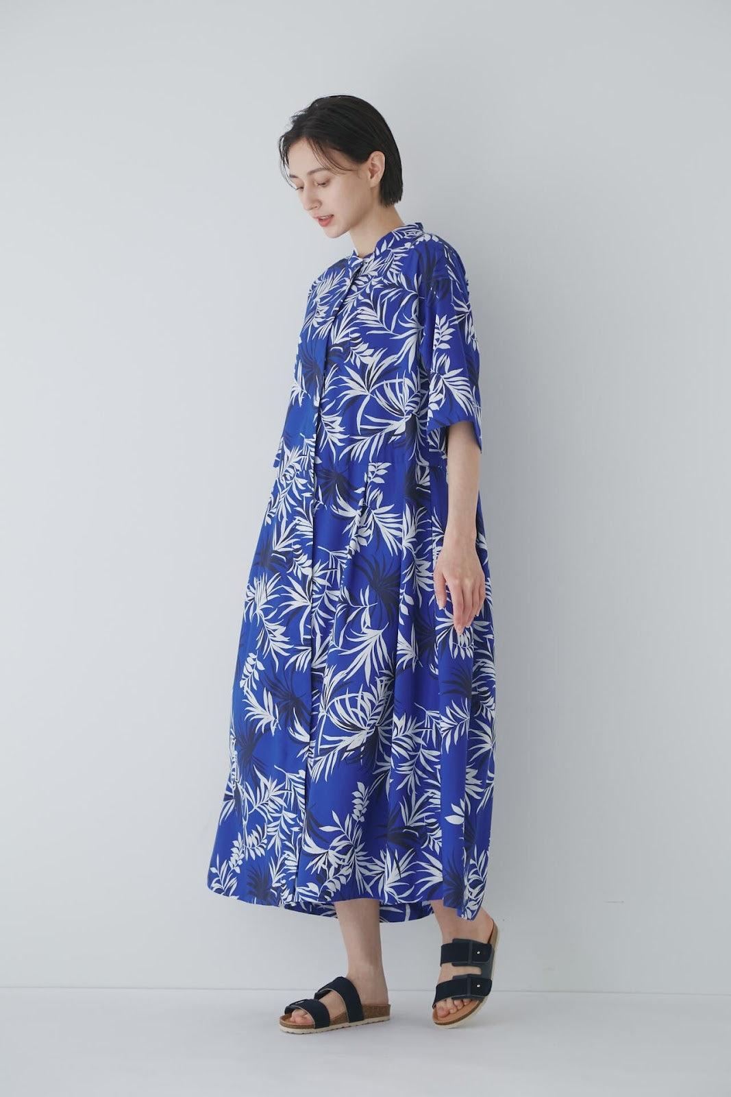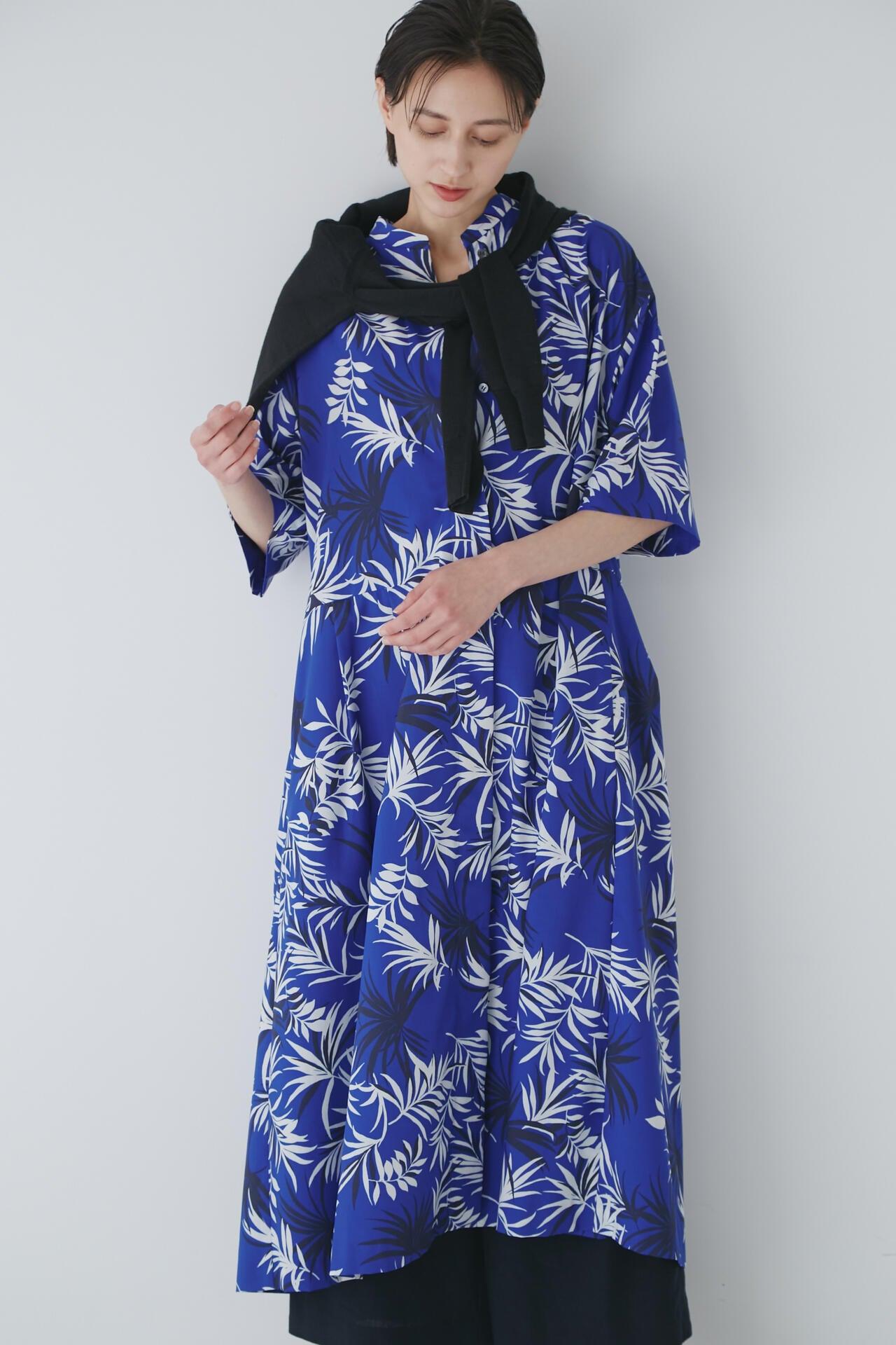 華麗搶眼的樹葉印花連衣裙 [設計特色] 這款帶領襯衫連衣裙印有大片樹葉圖案,充滿度假氣息。寬鬆的廓形足以罩住肌膚,腰部接縫處的收口細節是一大亮點。襯衫採用原創印花滌綸紡紗面料製成,帶有淡淡的自然氣息,落落大方。面料採用滌綸紡紗面料,觸感自然,落落大方。它是初夏出遊的完美單品,因為只需快速穿上它,就能讓人眼前一亮。