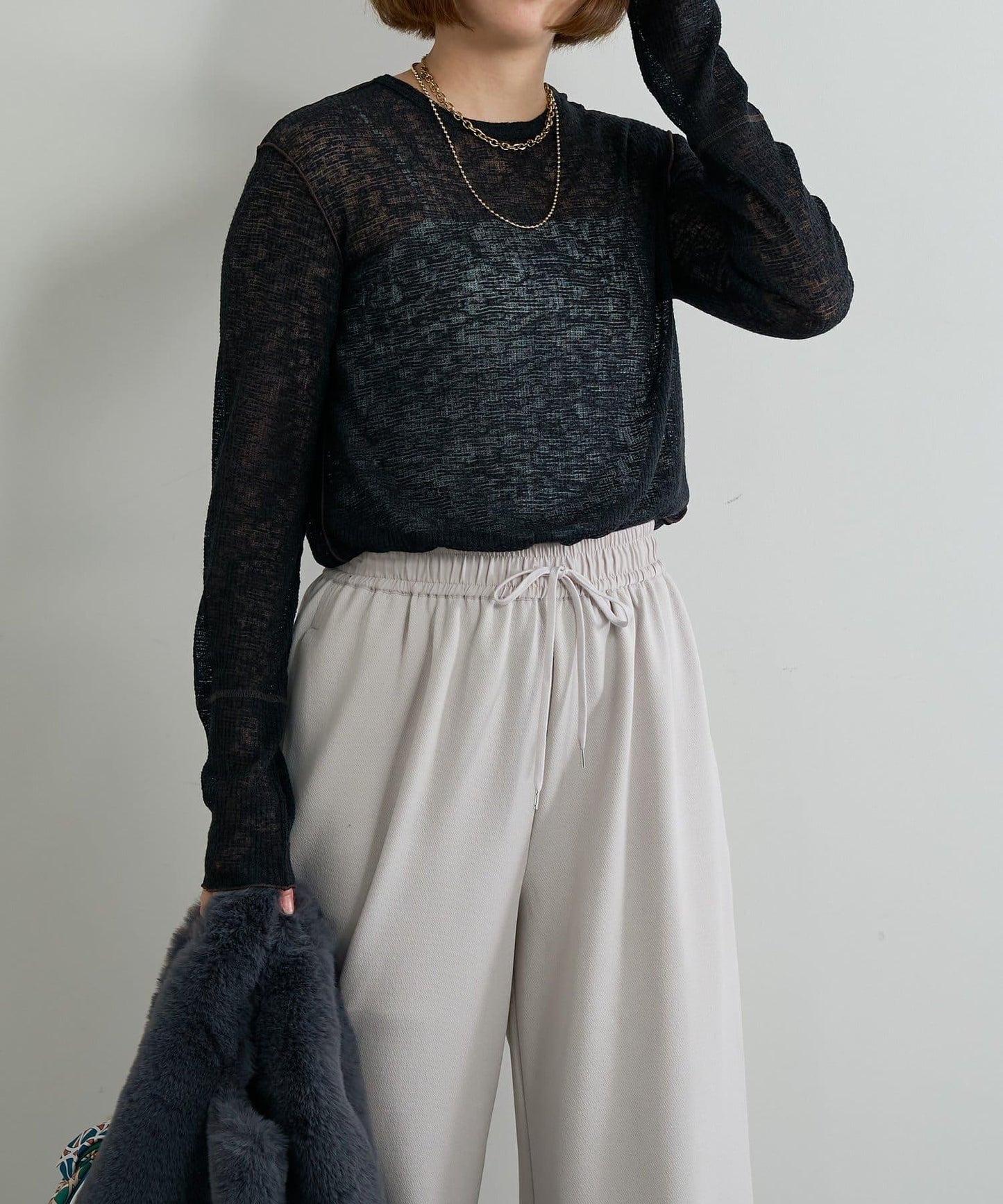 面料外觀獨特,增加了搭配的層次感。