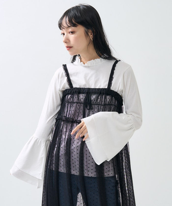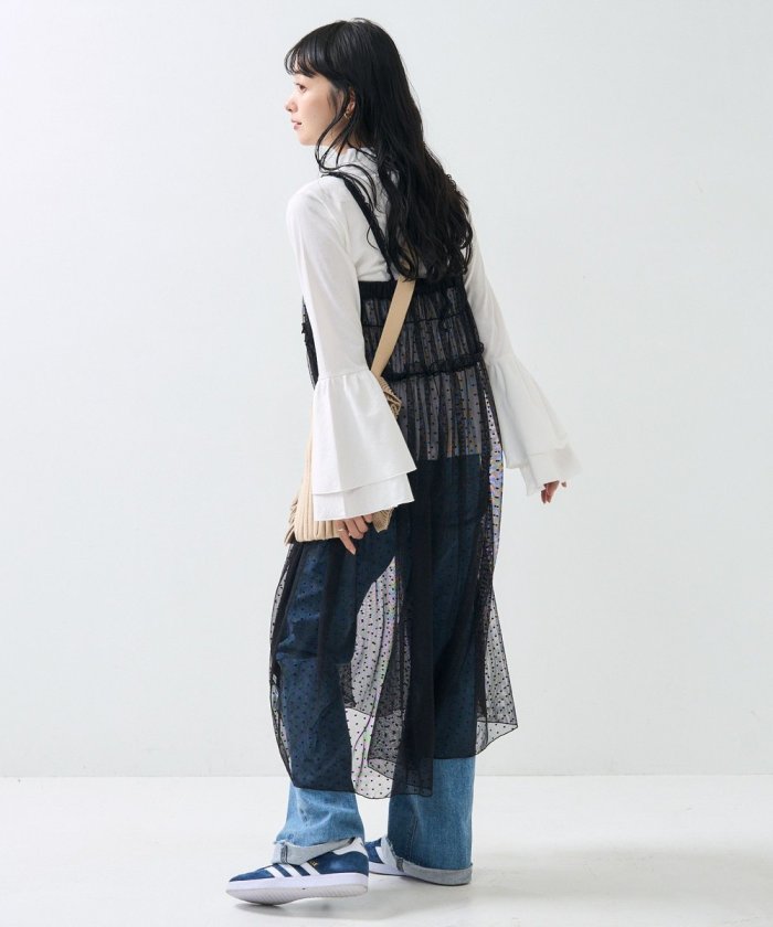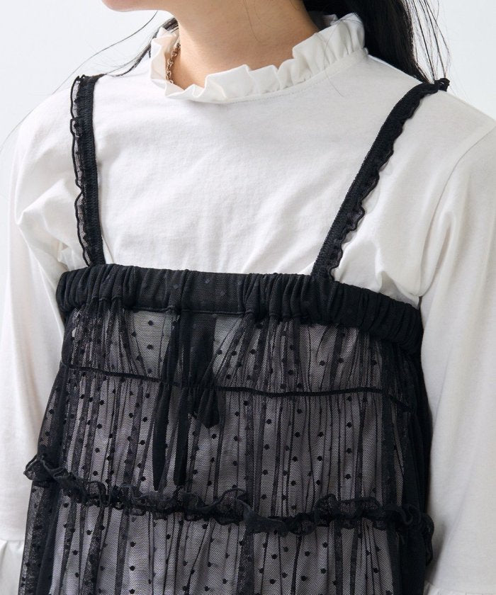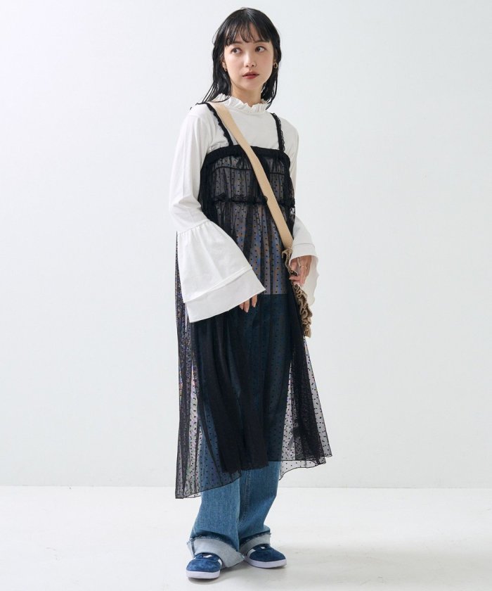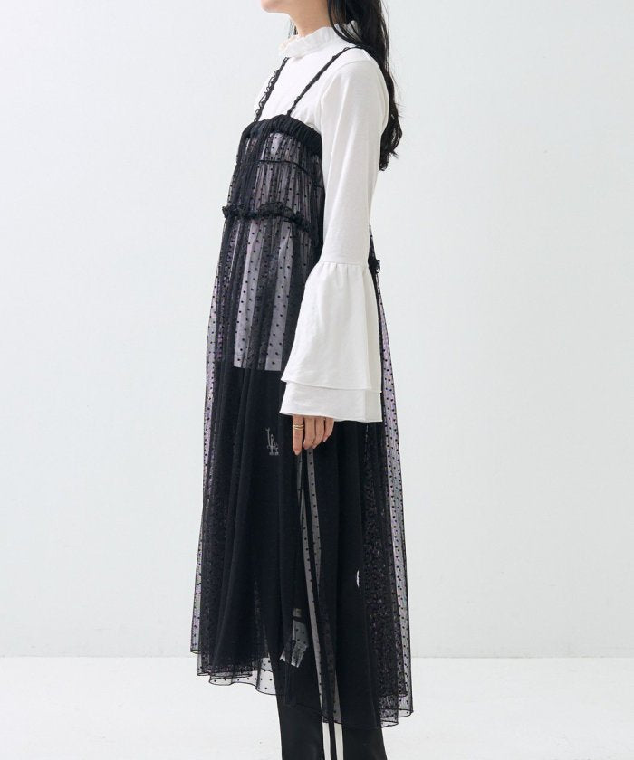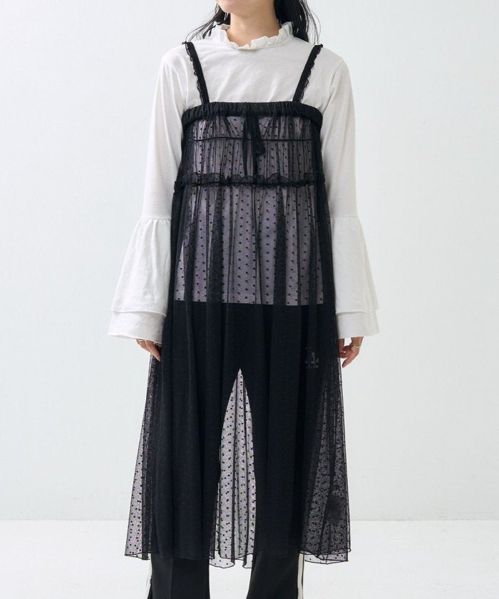 吊帶連衣裙,具有可愛的透明感和薄紗質感。