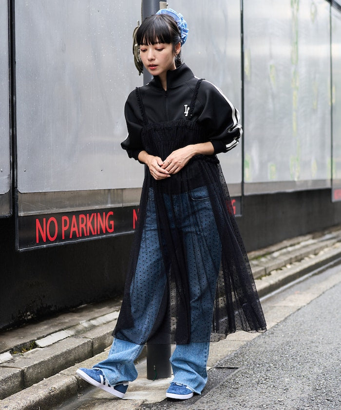 這款薄紗裙可以疊穿在印花 T 和牛仔短褲等休閒造型上,打造時髦造型。