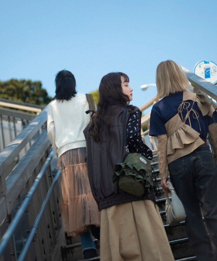 層疊式裙裝,內襯可拆卸,可與長褲疊穿,打造透視效果。