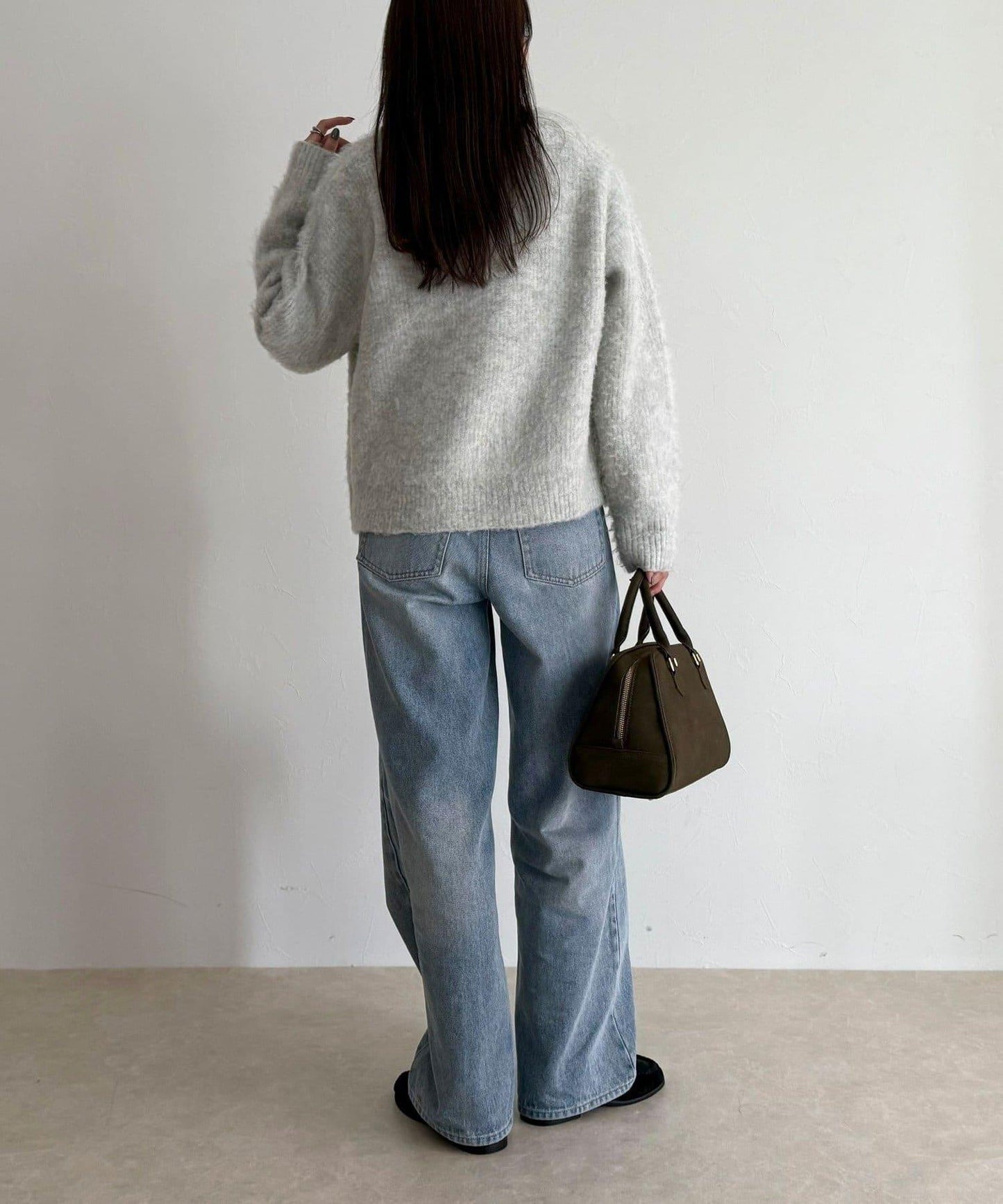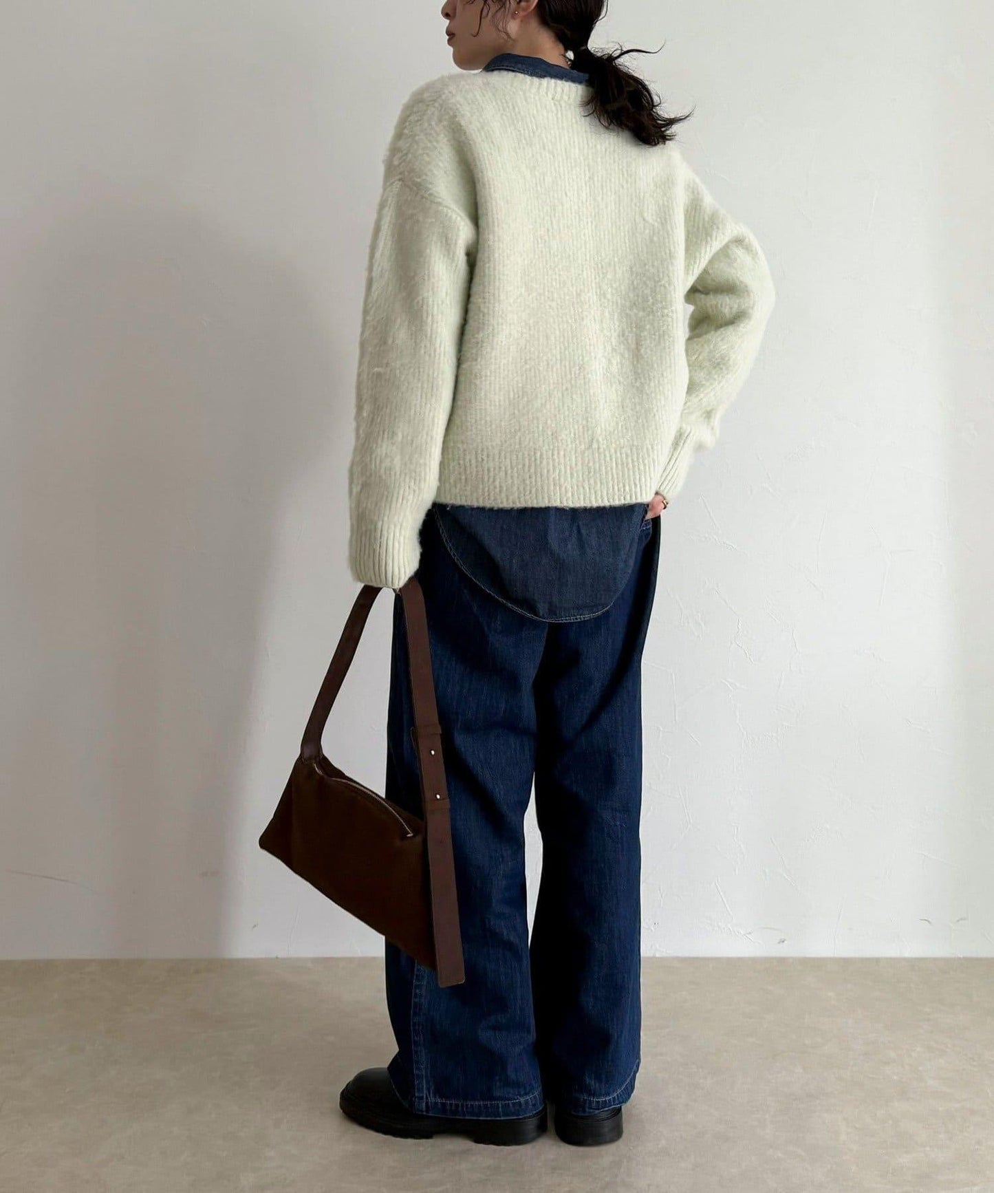身高 156cm 的工作人員(穿 38 號):長度輕盈地掛在臀部,輪廓易於與下身平衡。蓬鬆的面料手感柔軟舒適!它是一款百搭開衫,即使內搭薄針織衫也不會顯瘦,隨便一穿就很華麗。