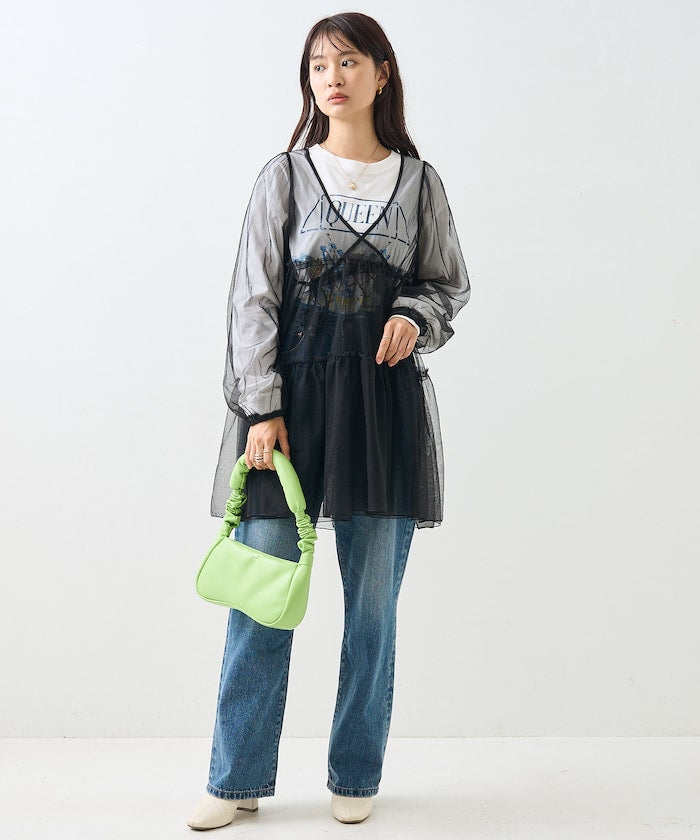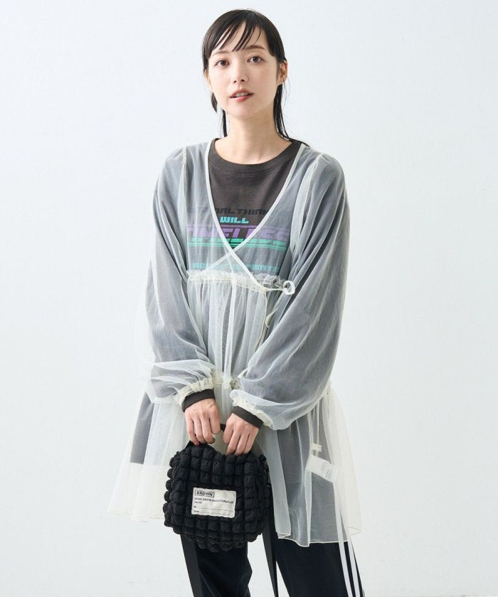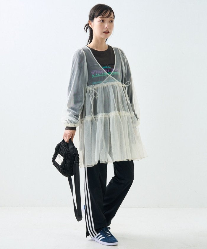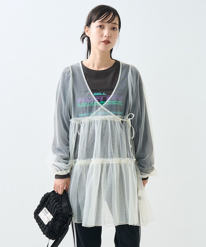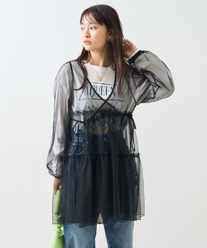 可愛的薄紗連衣裙,薄紗材質具有透視感。