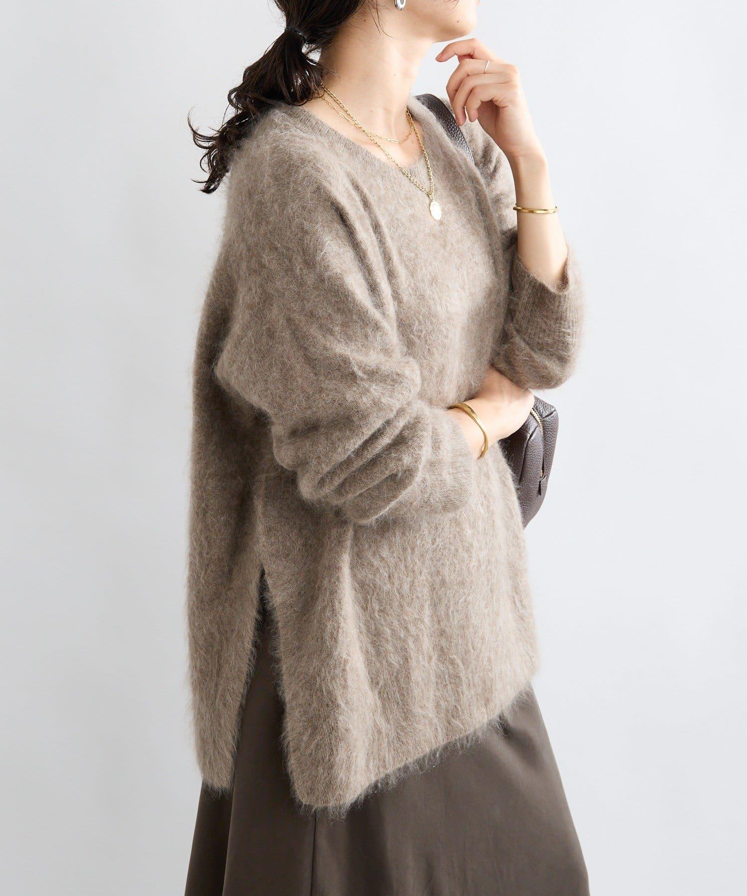 【蓬鬆質感】起毛羊毛側開叉針織衫
