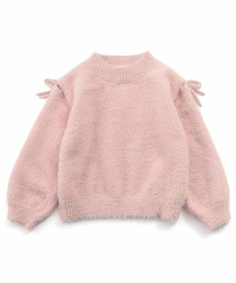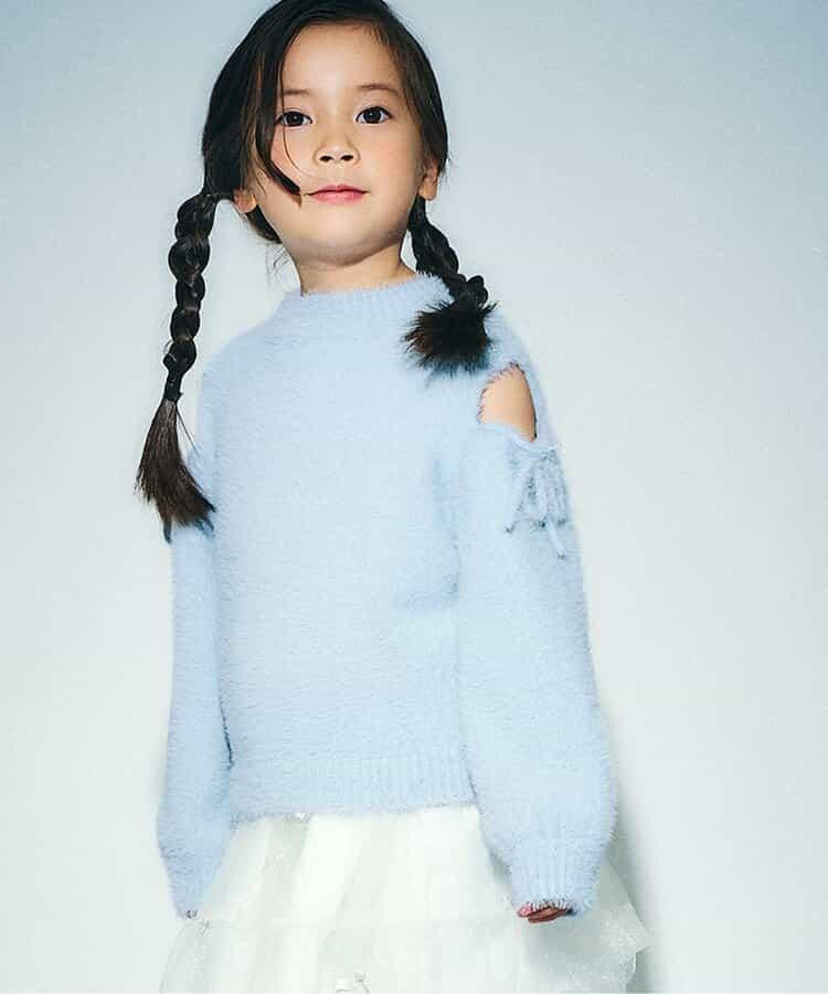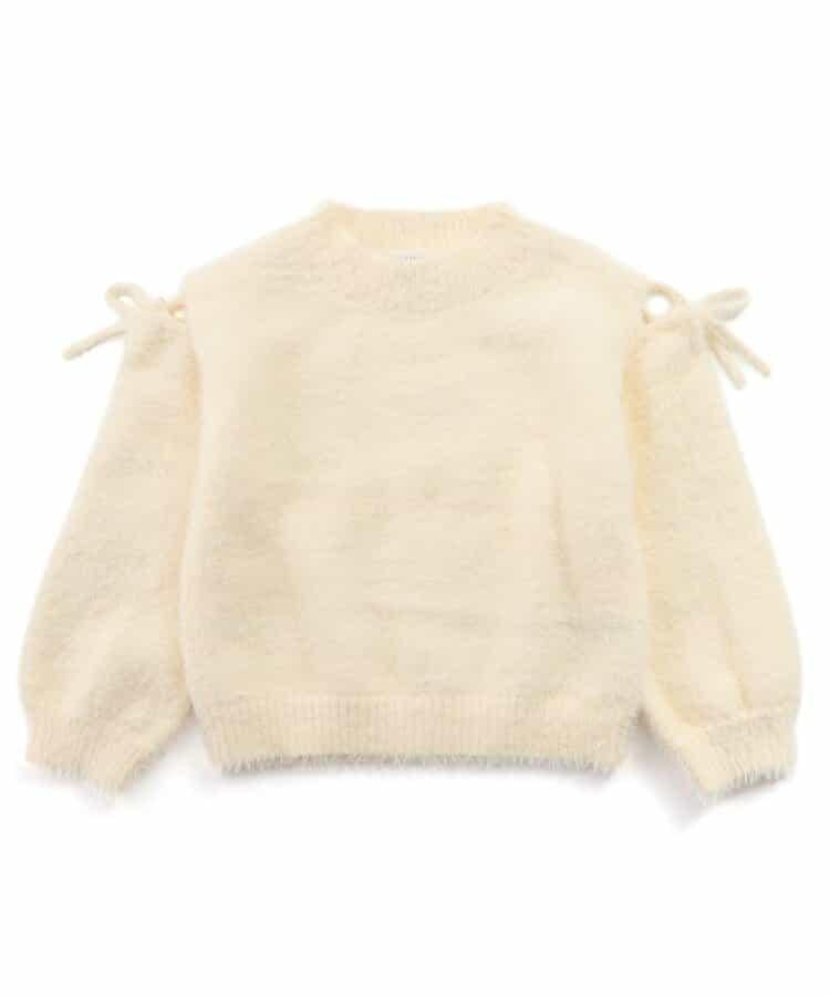 Seraph 的針織毛衣 "Fluffy Shoulder Ribbon Shaggy Knit "以其簡潔的面料和柔和的色彩推薦給崇尚自然的時尚人士!