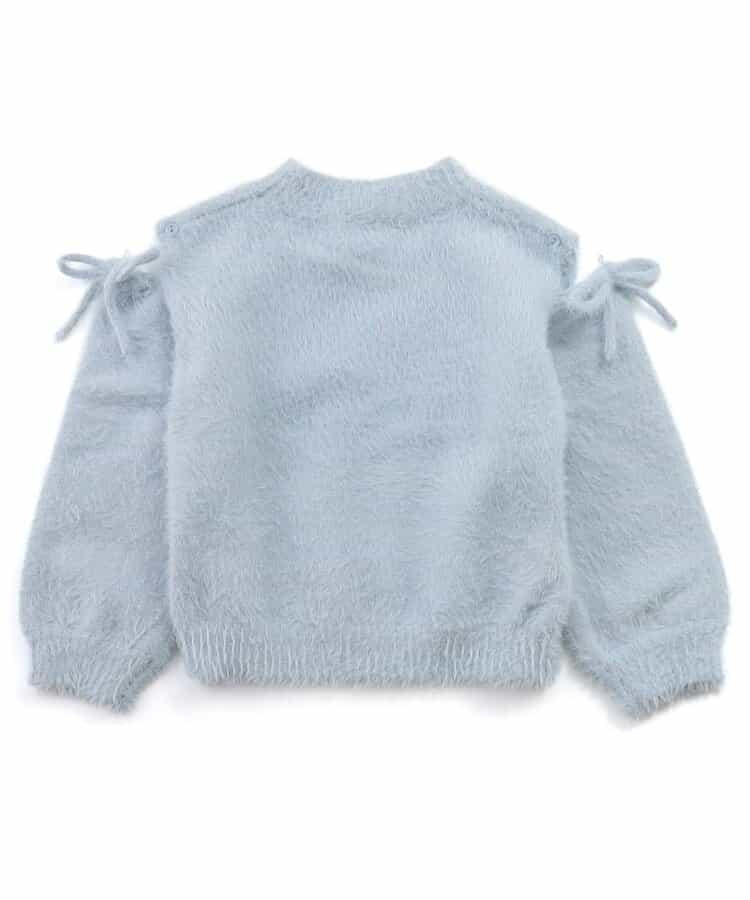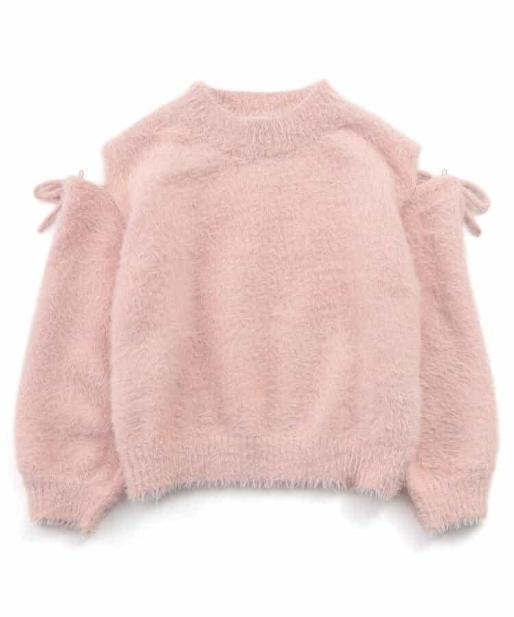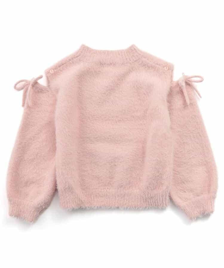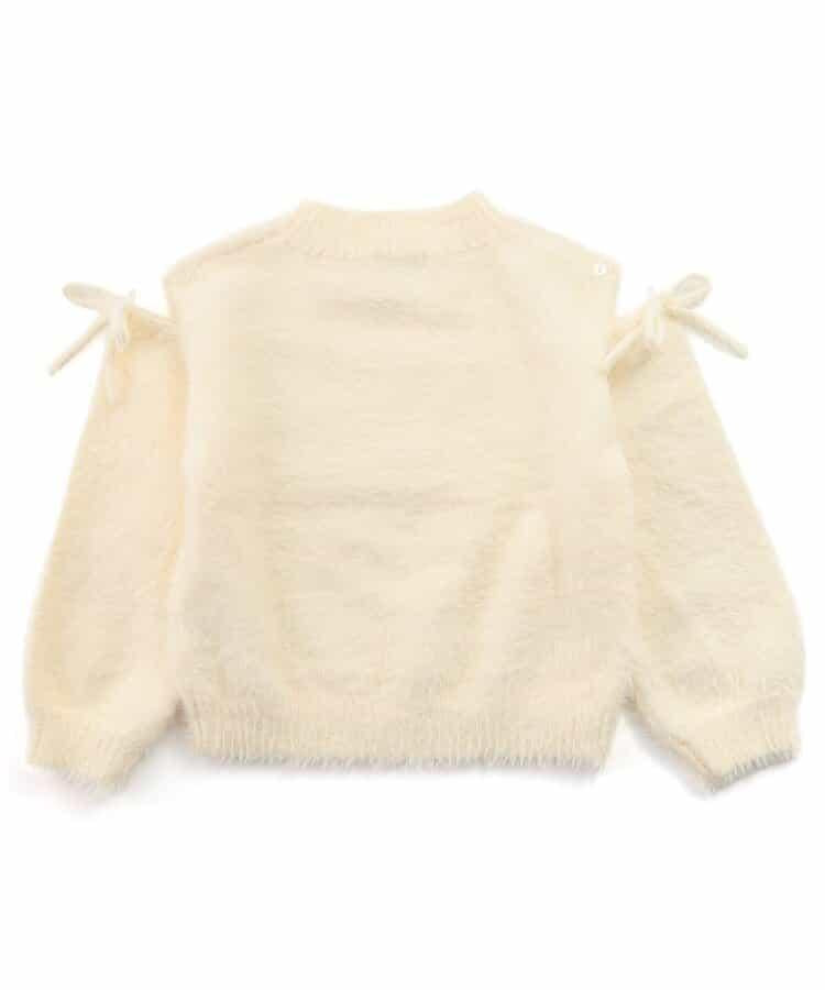 蓬鬆露肩蝴蝶結毛絨針織衫