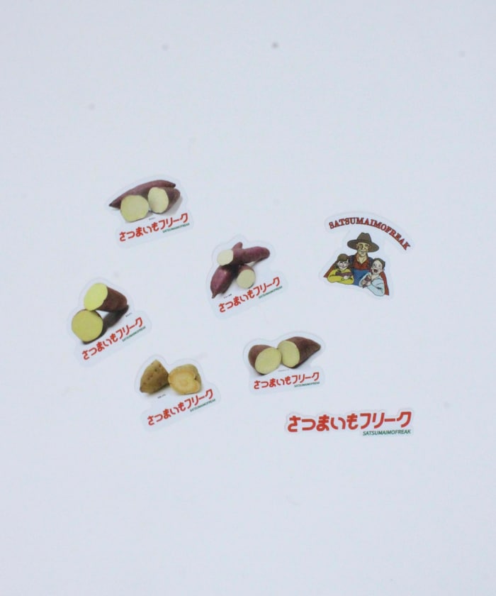 這套貼紙包括👍的五個紅薯品種,據說僅主要品種就有約 60 種,包括 "紅薯怪人 "標誌在內共有七個品種。