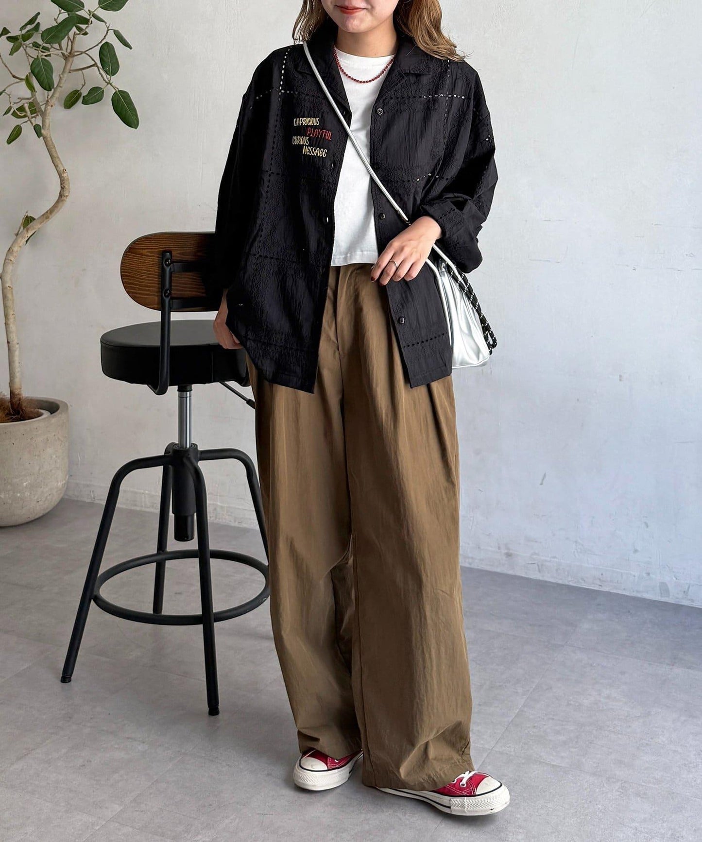 胸前的信息刺繡為簡單的搭配增添了亮點。