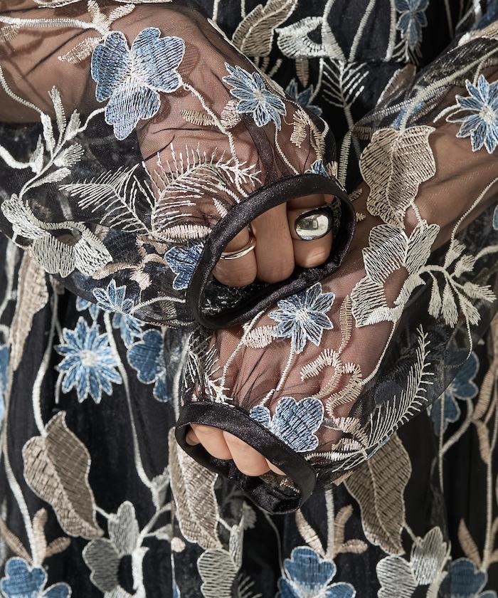 時尚薄紗底面上的華麗花朵刺繡設計,盡顯女性魅力。