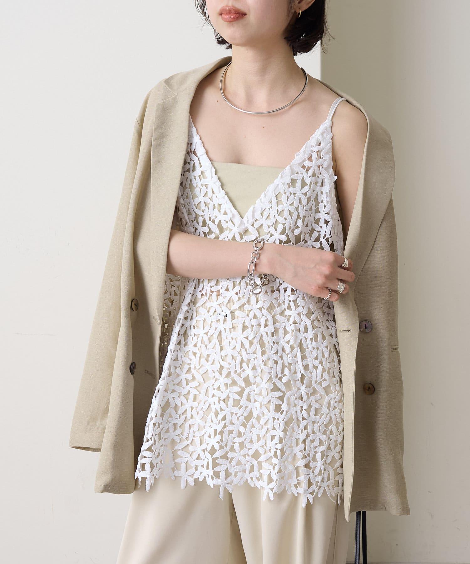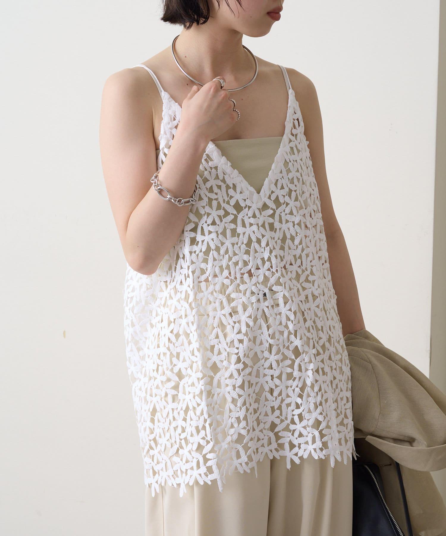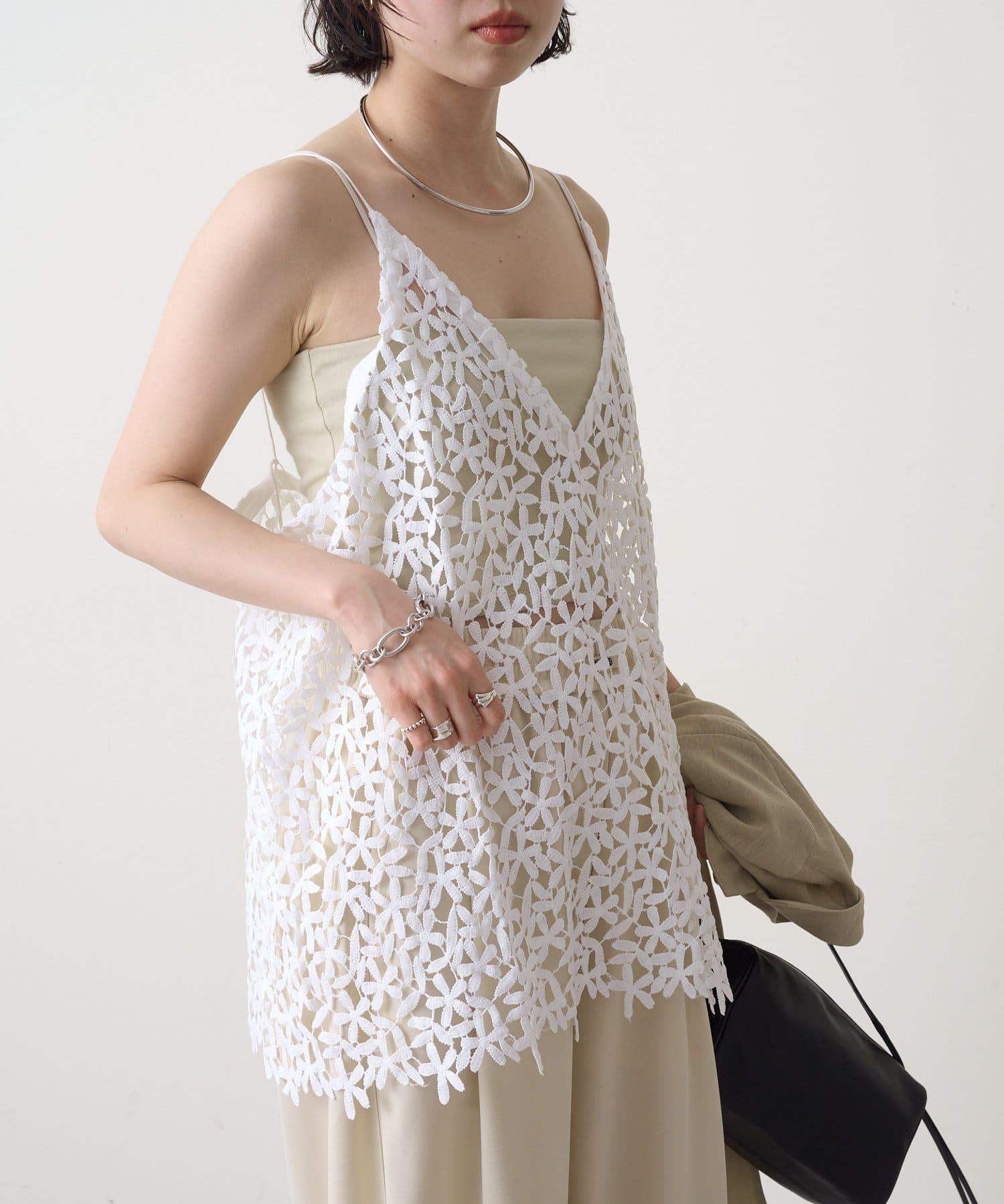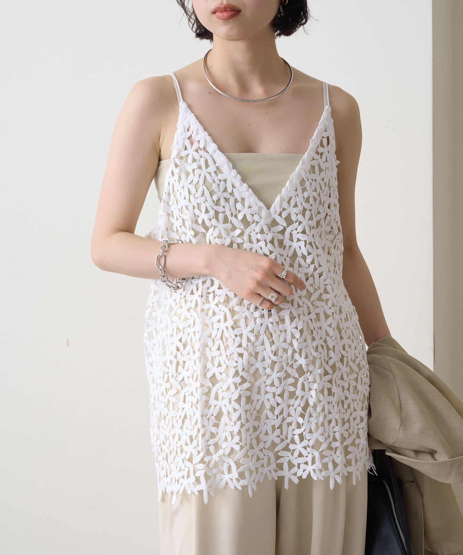 蕾絲吊帶衫採用花朵蕾絲設計,讓人看起來魅力十足。