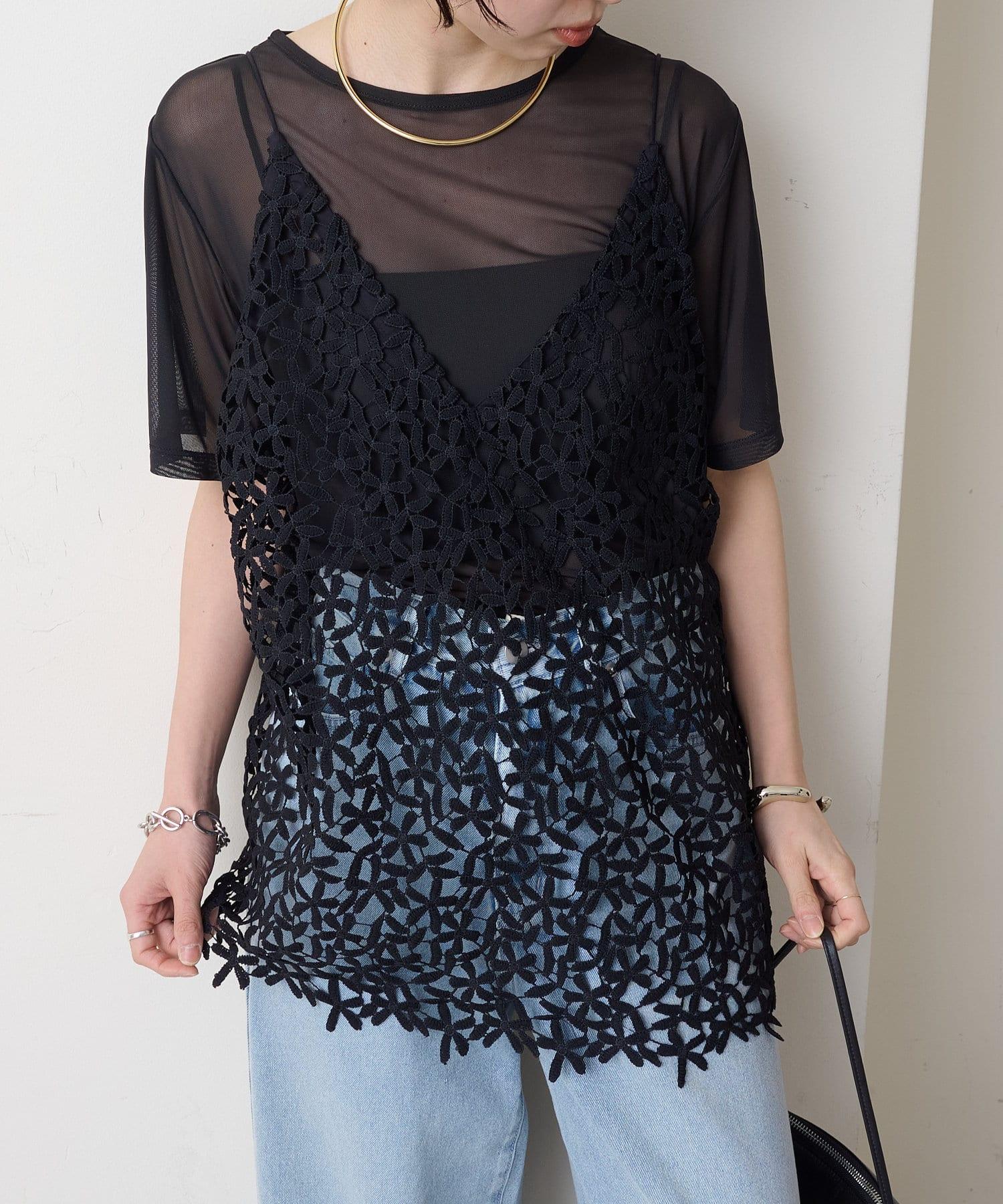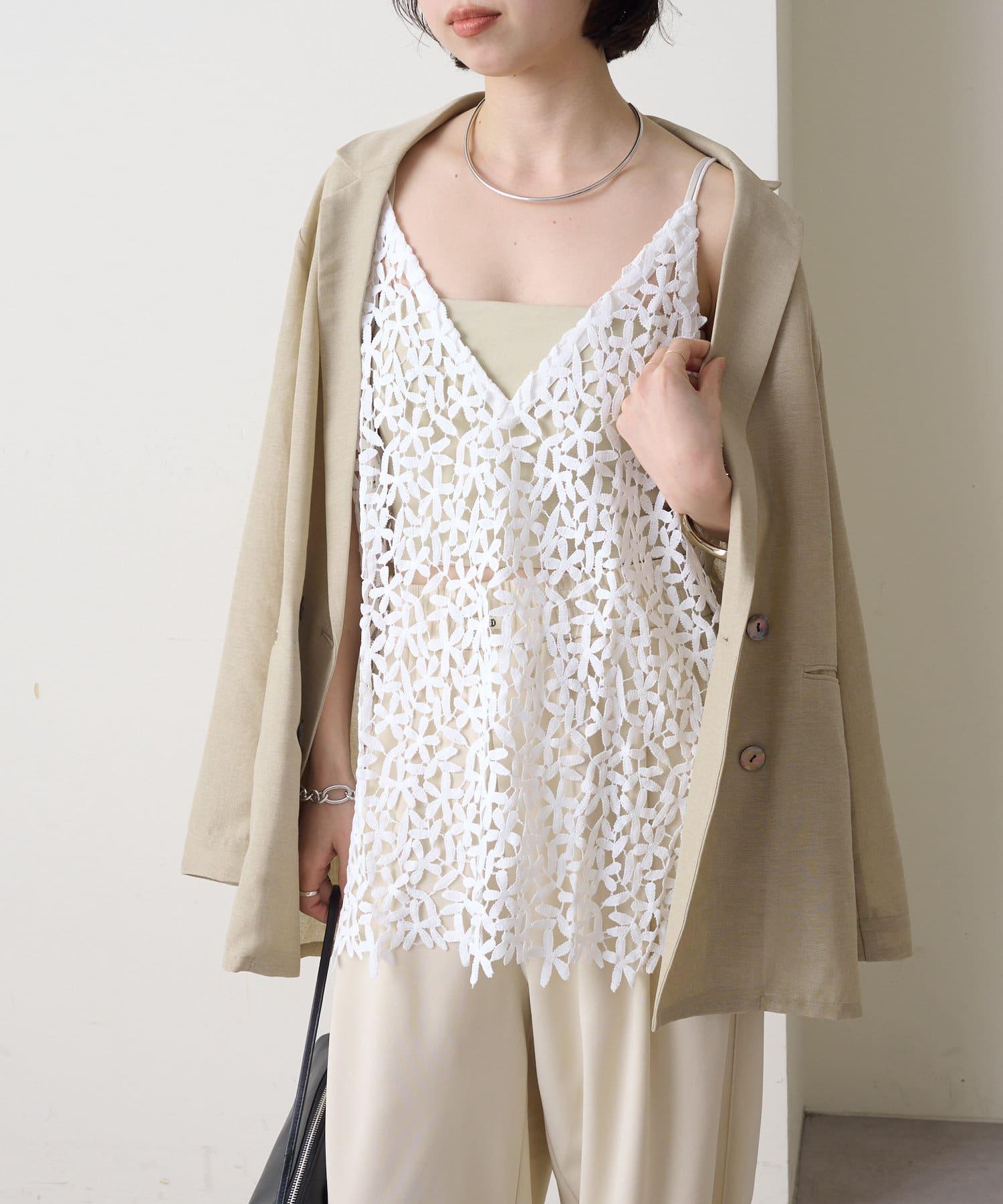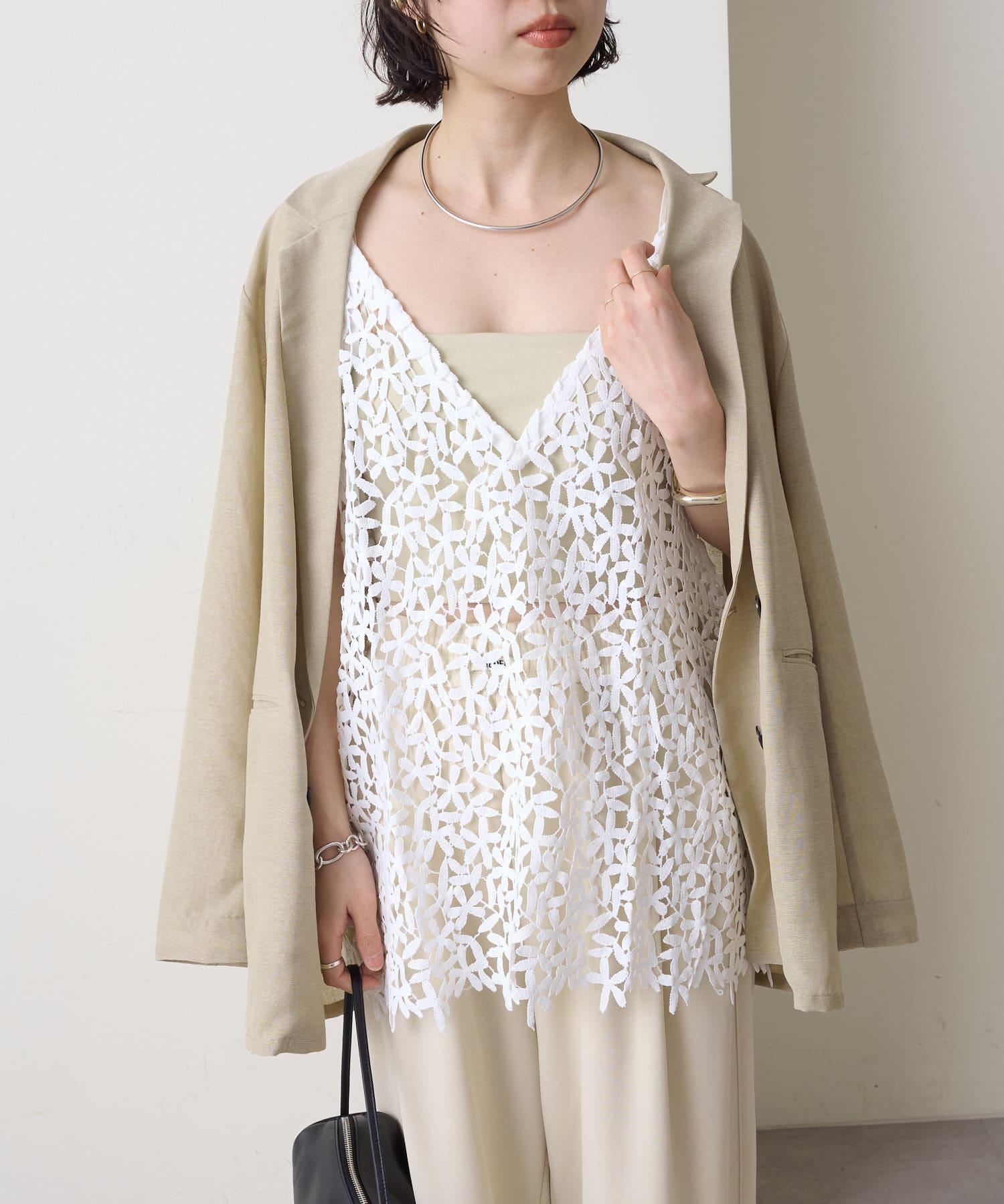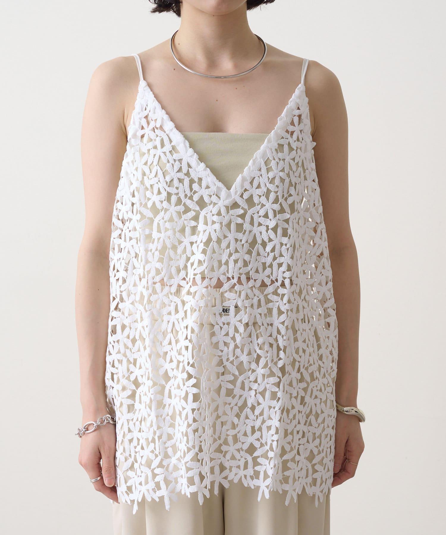 蕾絲吊帶衫採用花朵蕾絲設計,讓人看起來魅力十足。