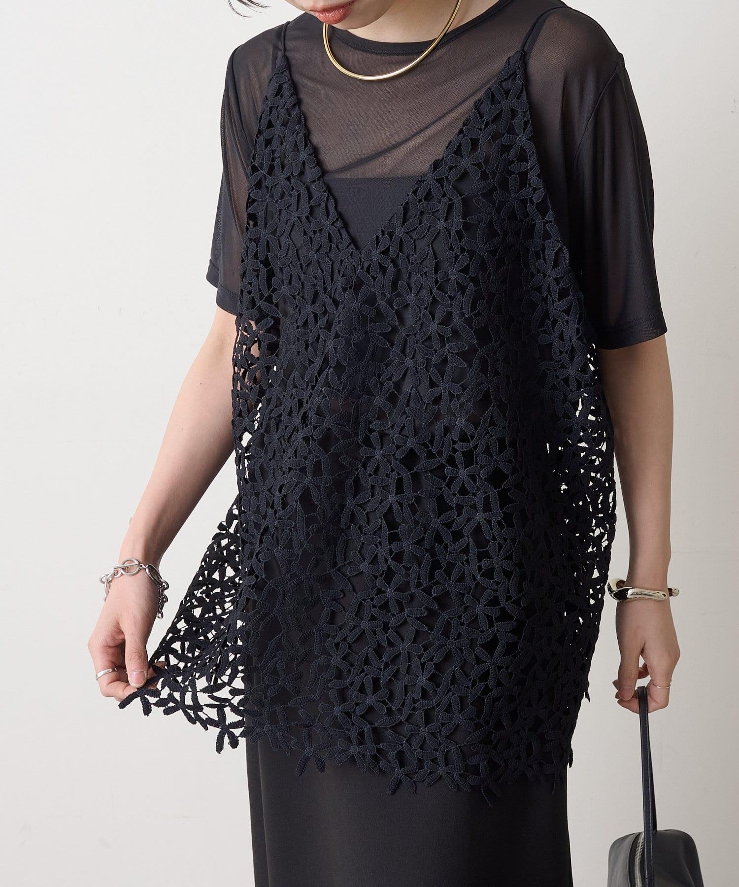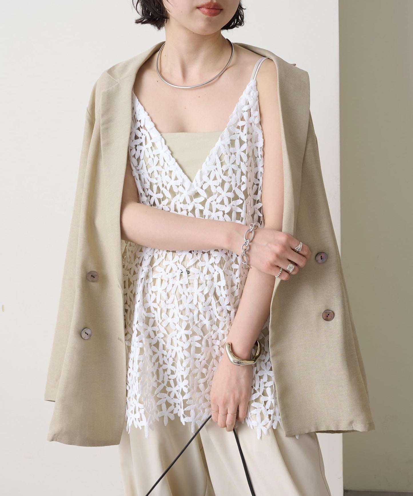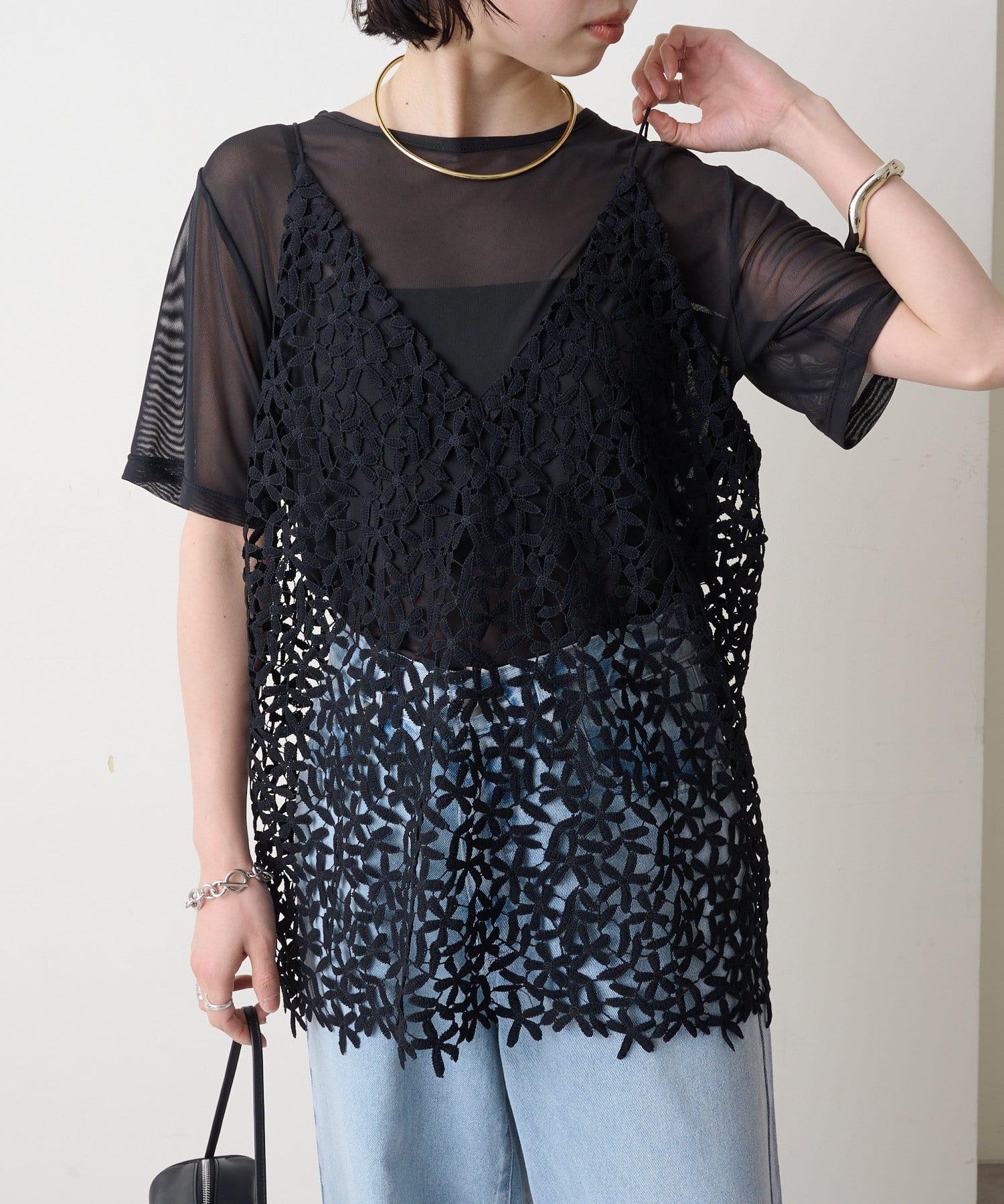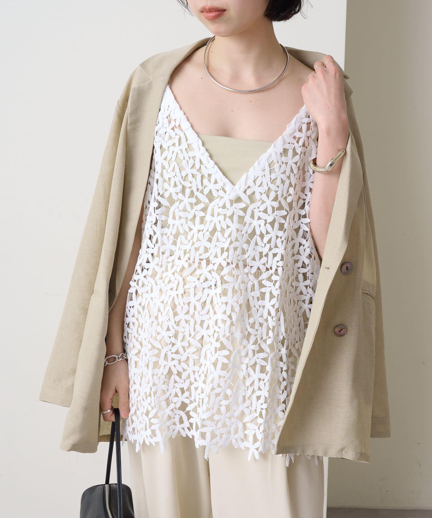 蕾絲吊帶衫採用花朵蕾絲設計,讓人看起來魅力十足。