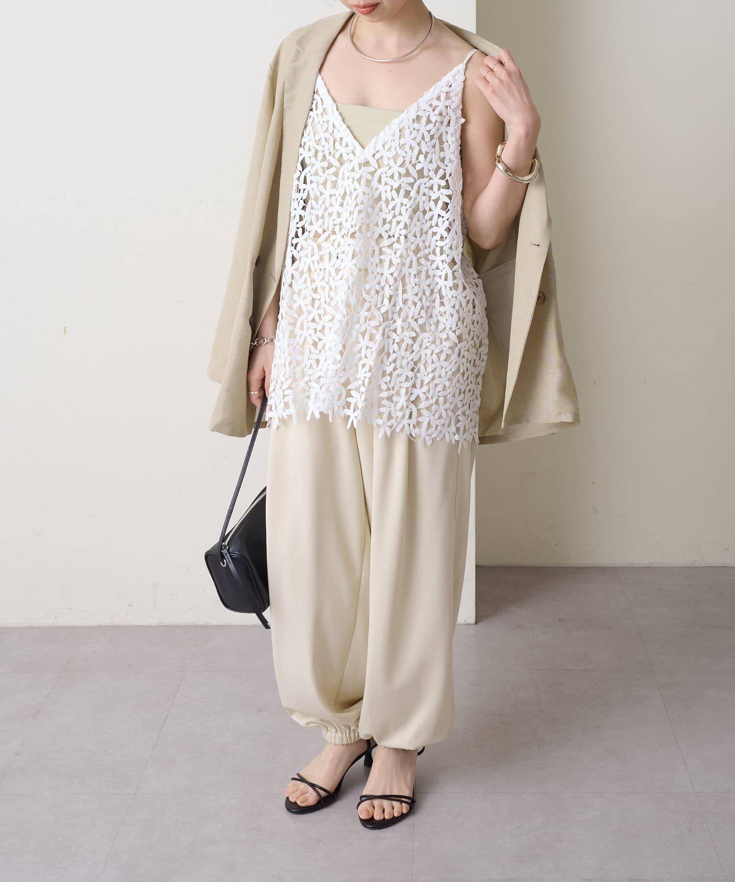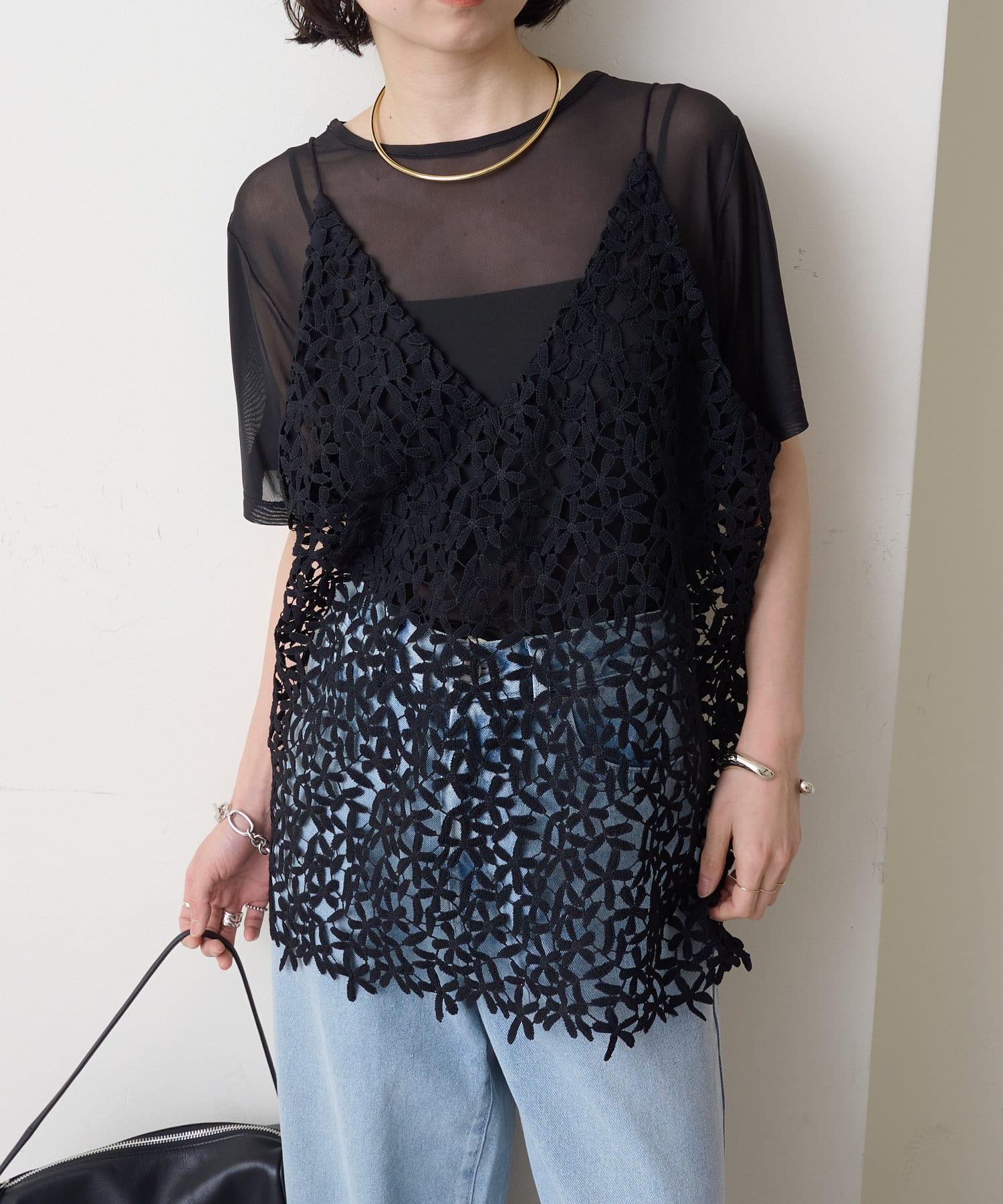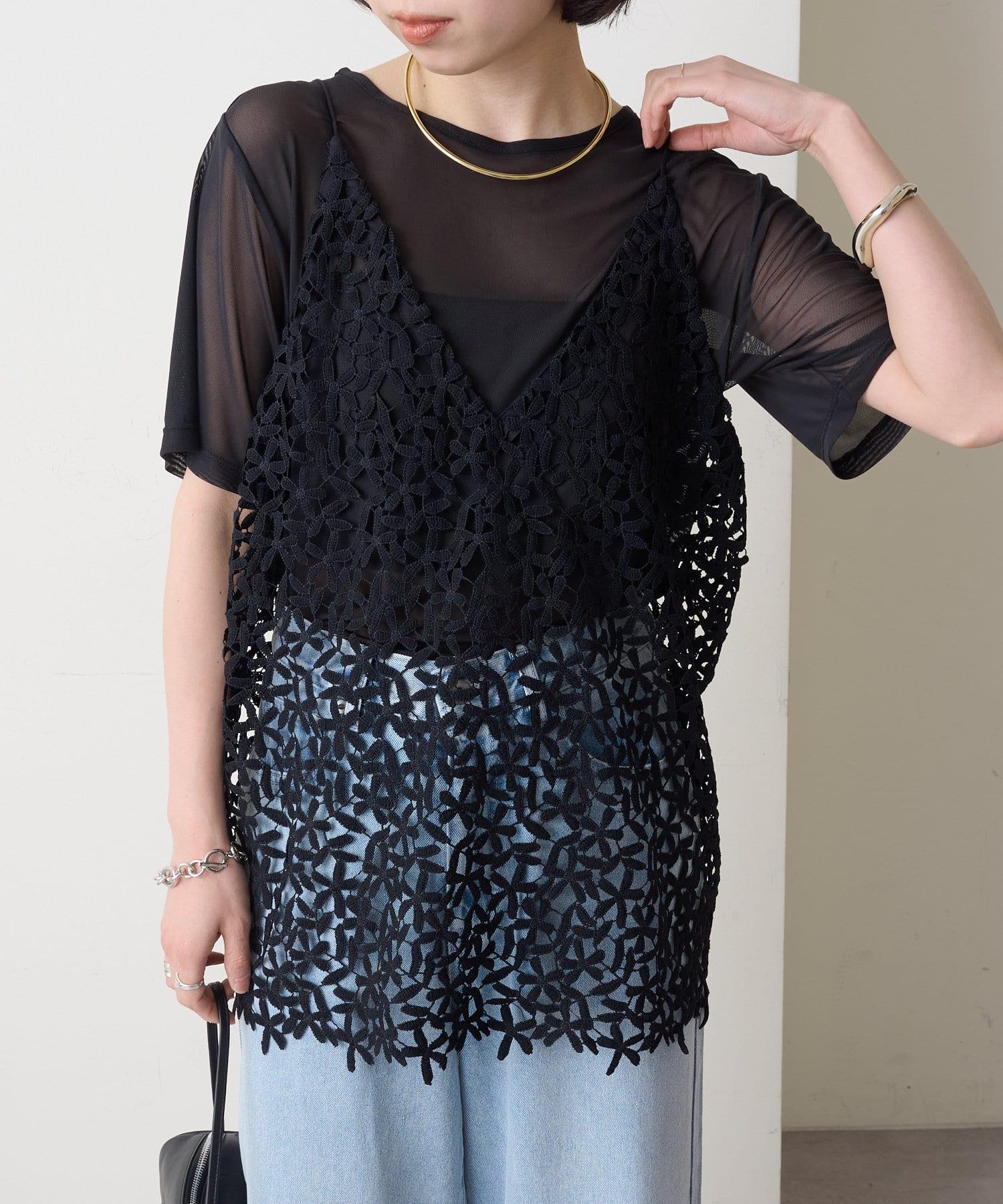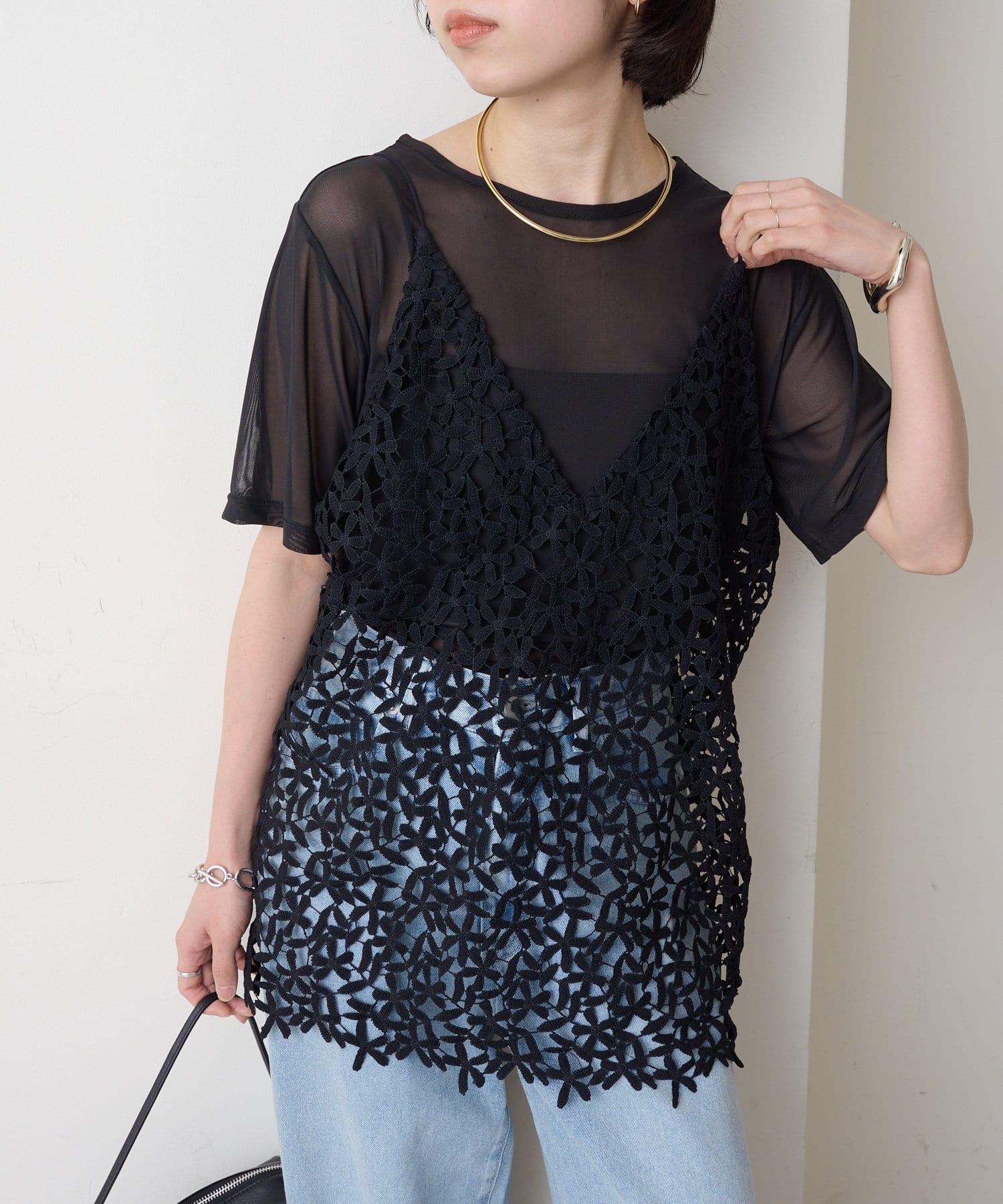 蕾絲吊帶衫採用花朵蕾絲設計,讓人看起來魅力十足。