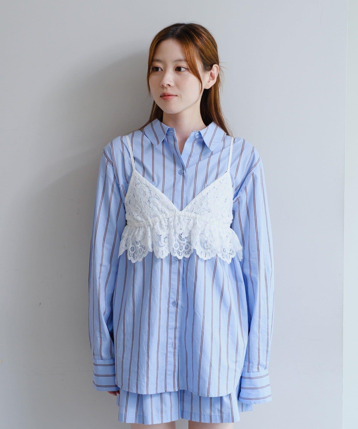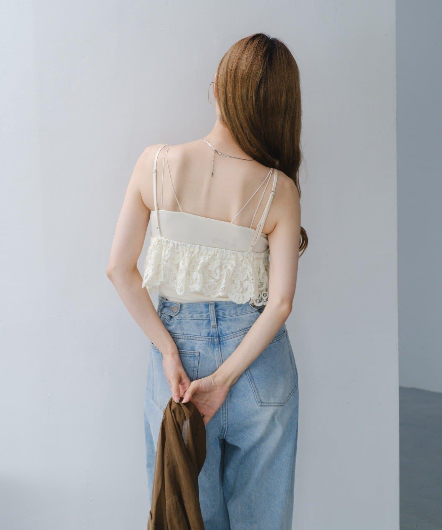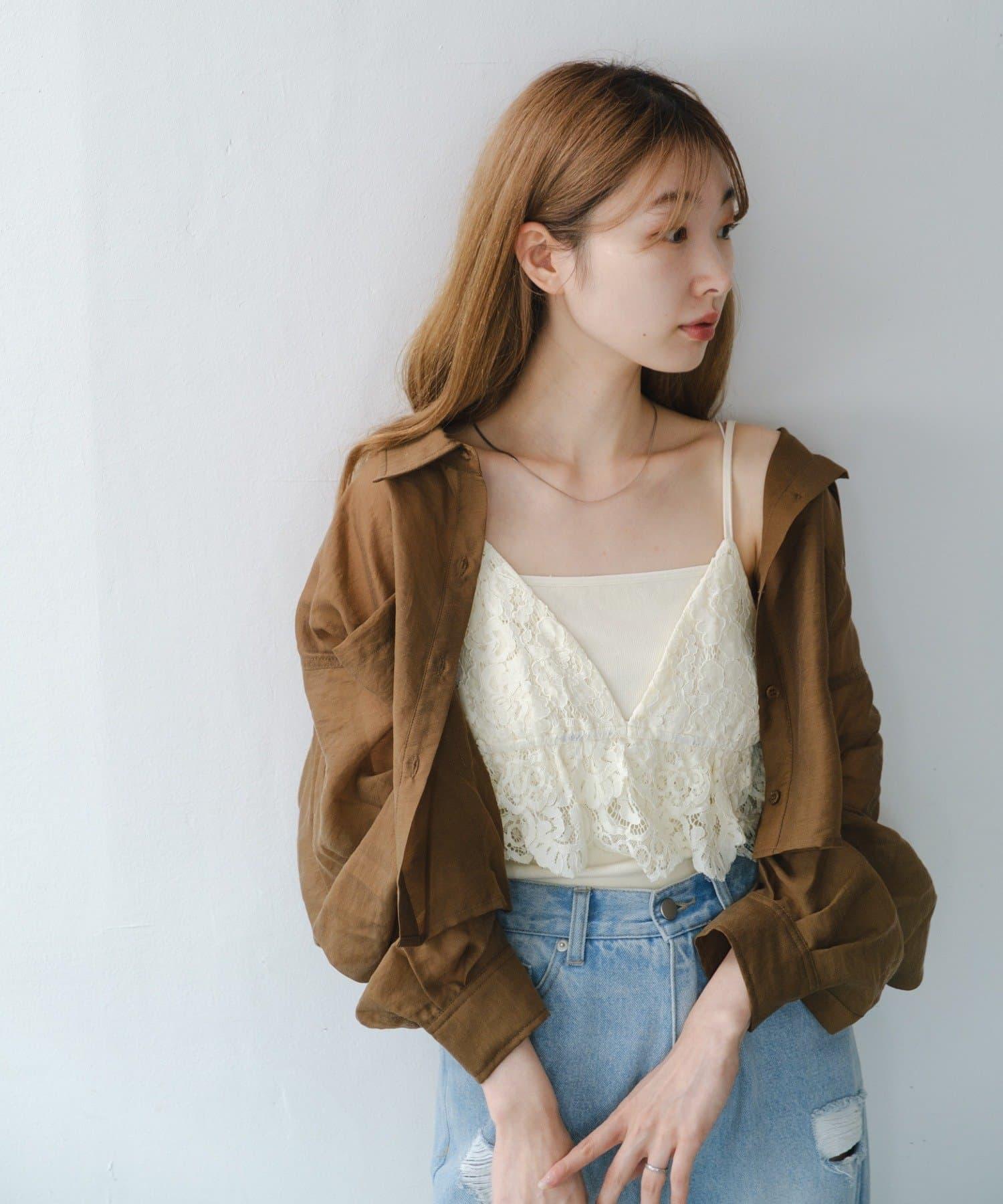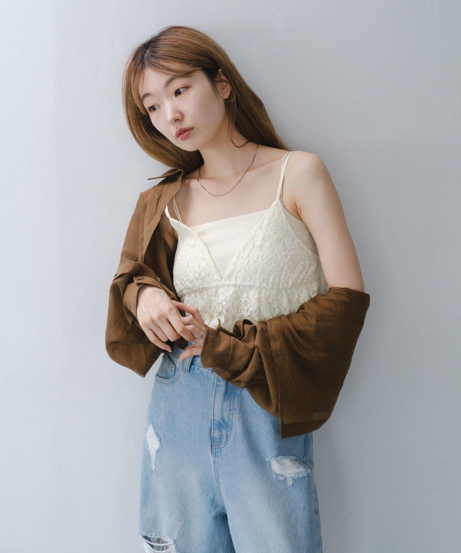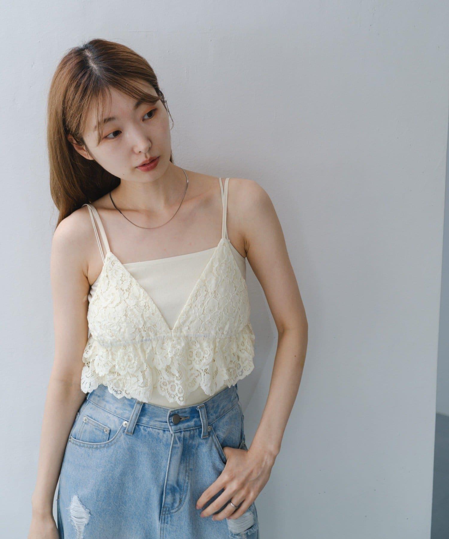 蕾絲的甜美搭配牛仔褲,適度休閒。