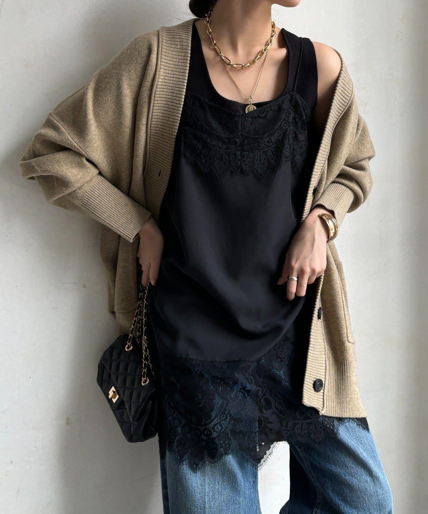 蕾絲吊帶長衫,層次感十足,今年正適合穿。
