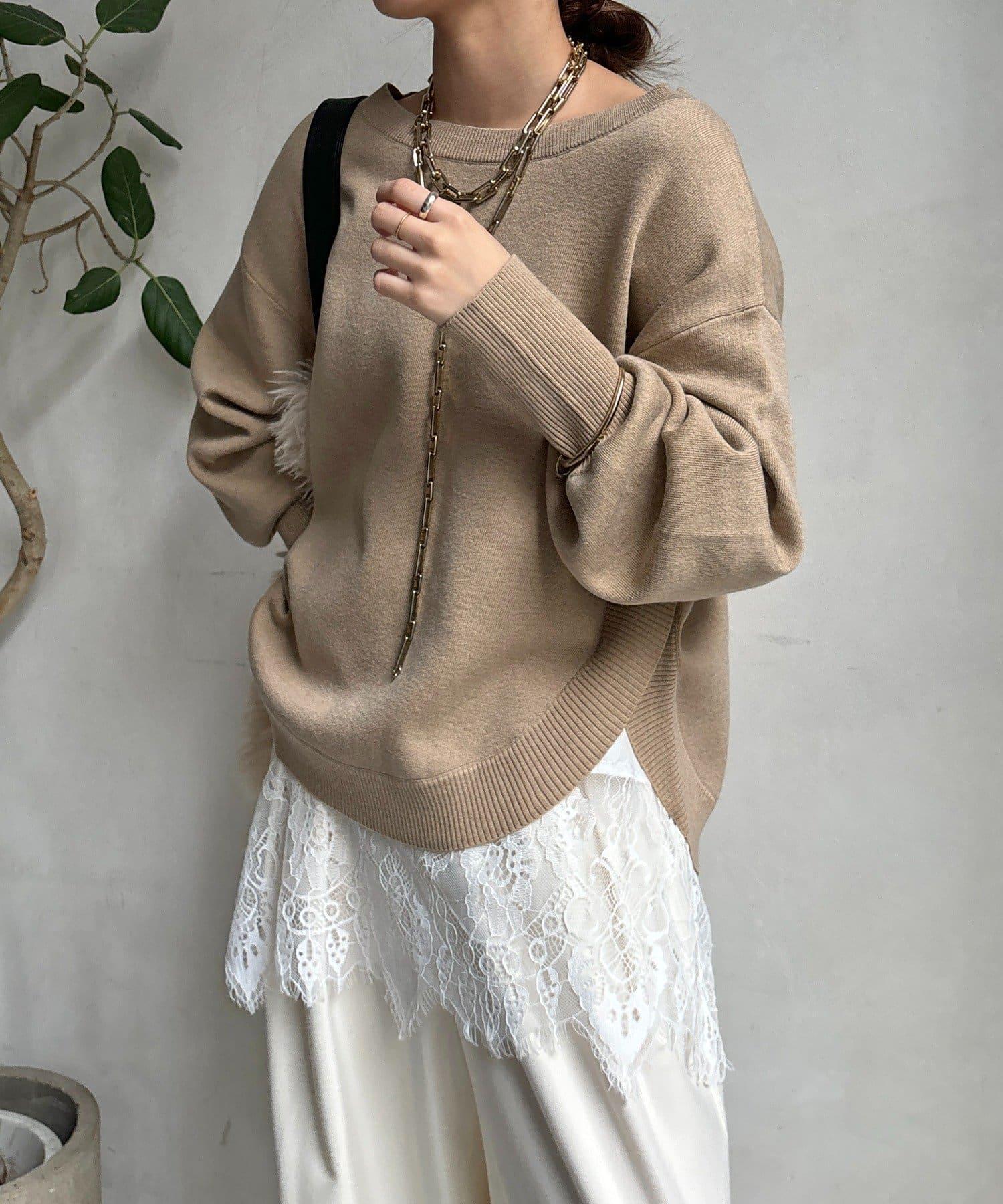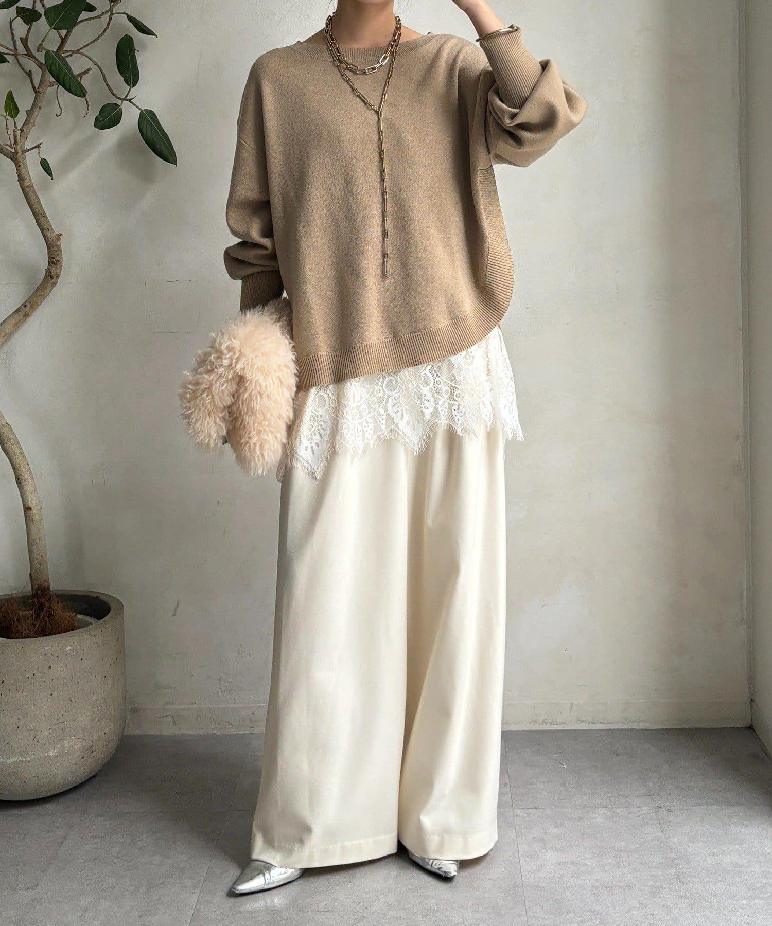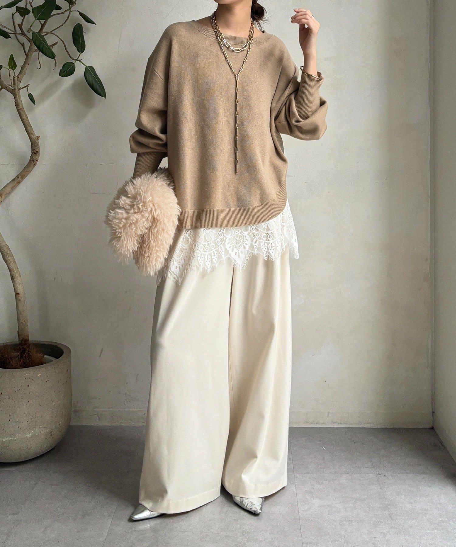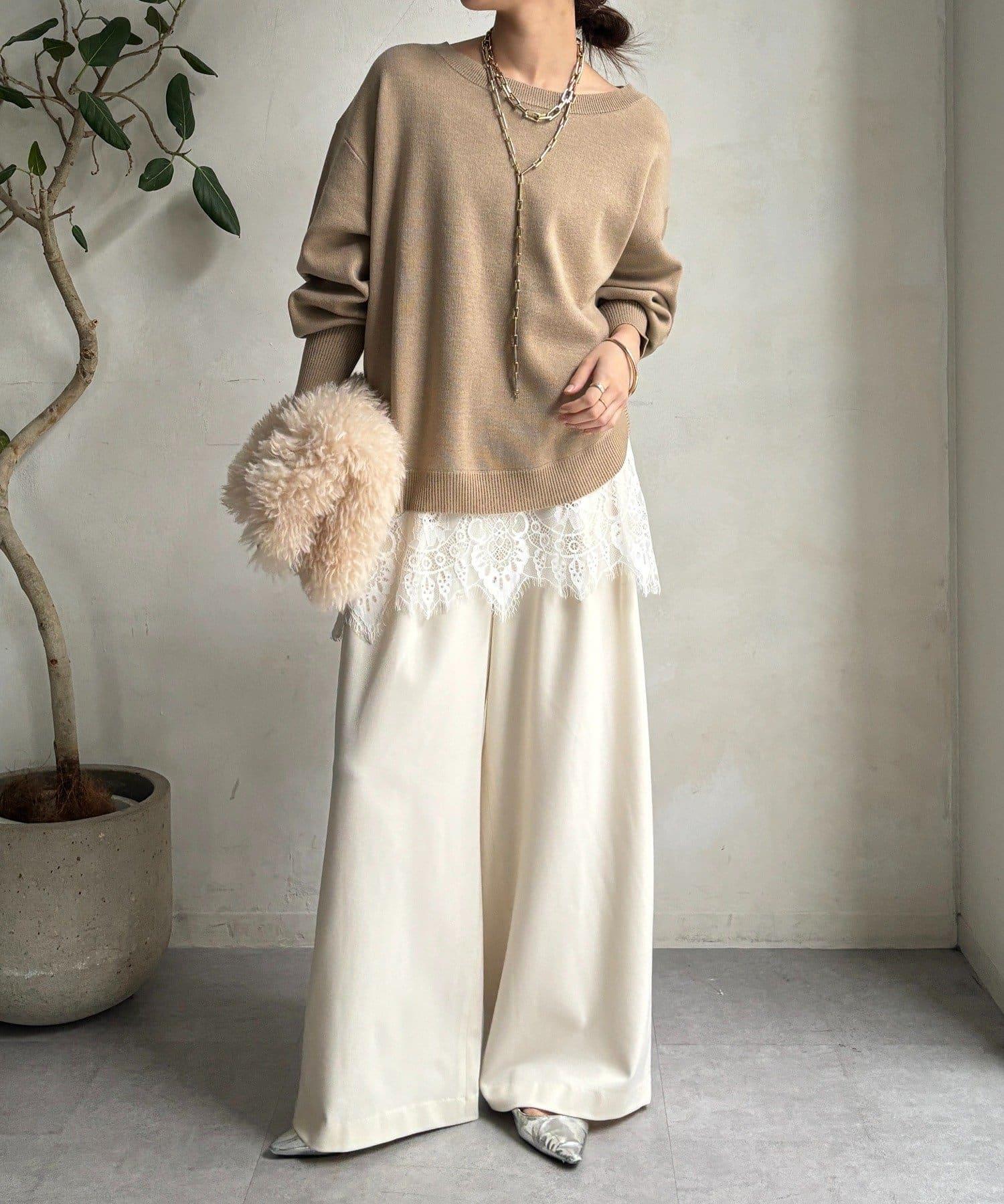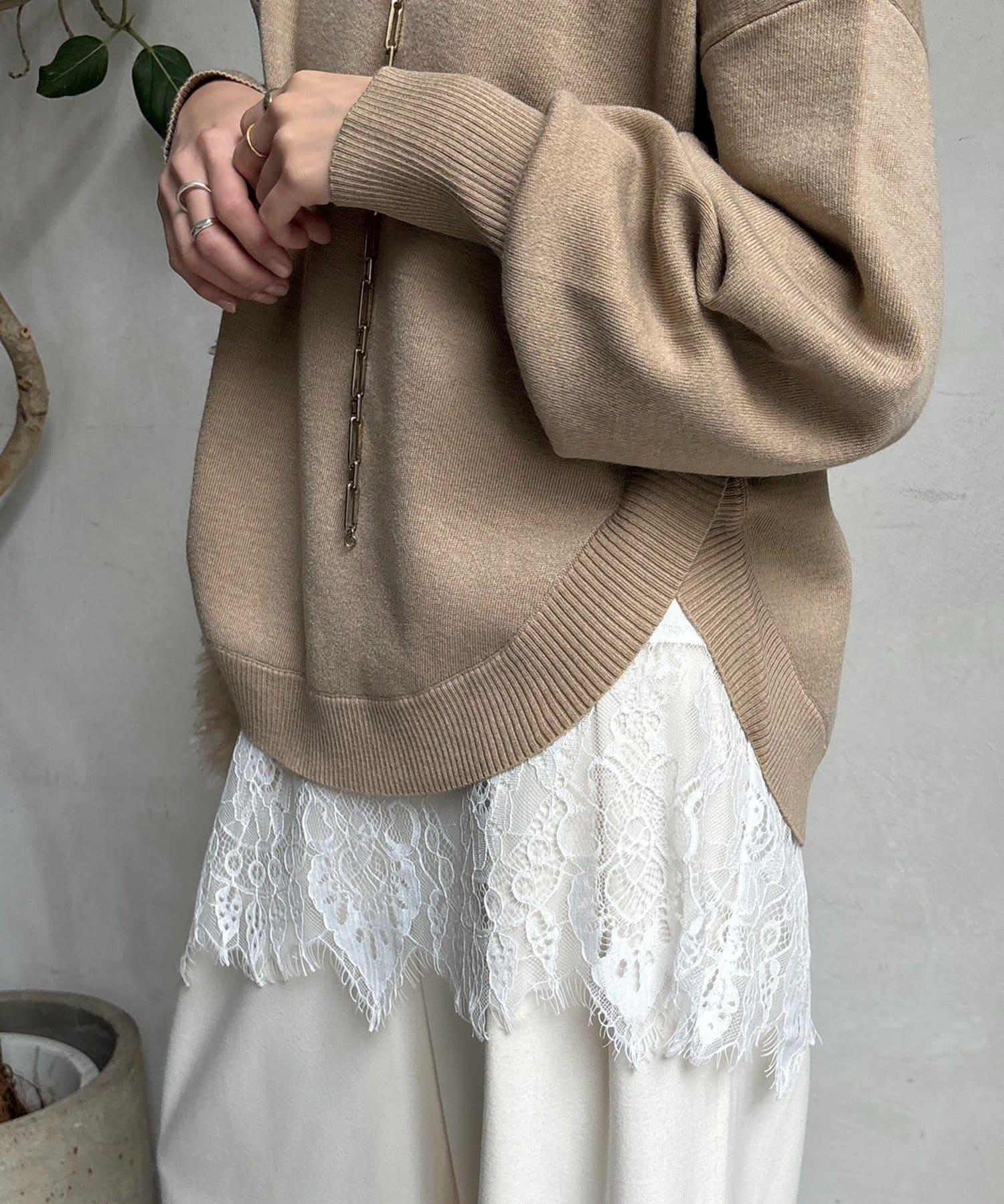 領口和下襬的精緻蕾絲引人注目、