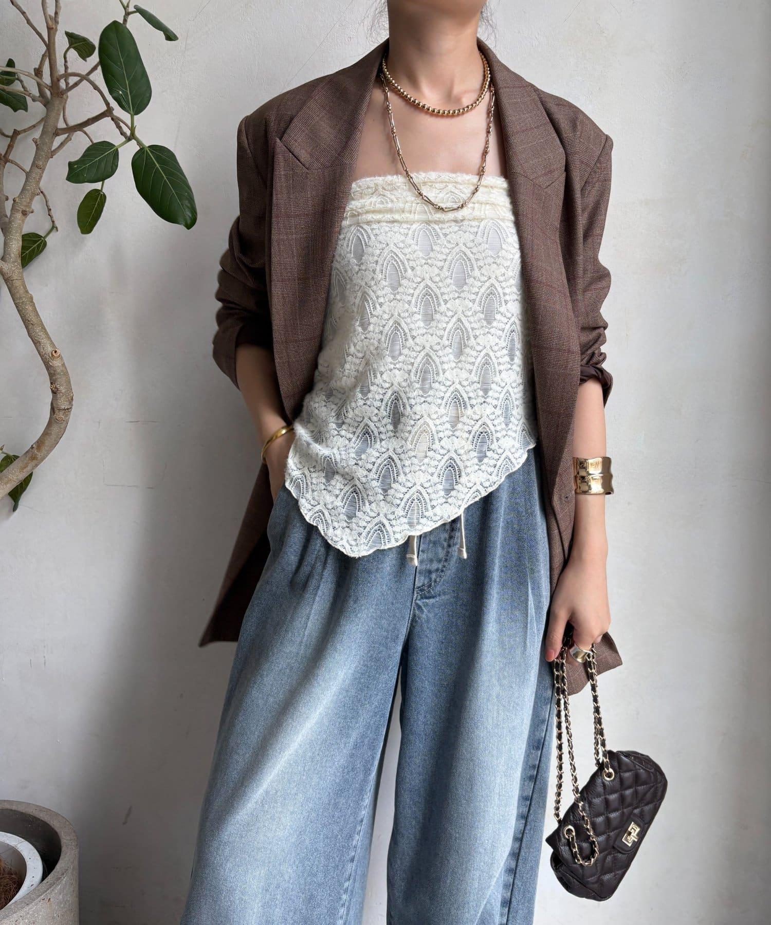 協調的點睛之筆!時尚的凸起花邊圍巾。