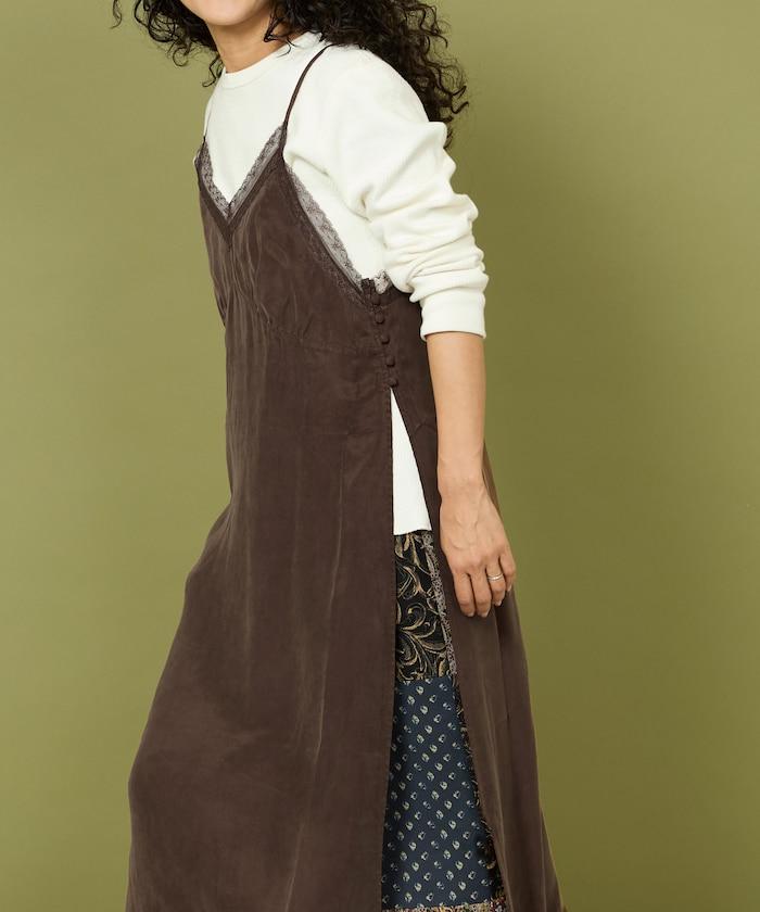 右側中間夾有蕾絲帶,左側則大膽敞開至胯骨。