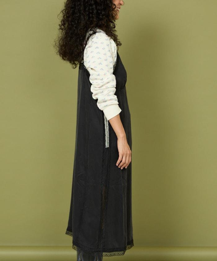 這款連衣裙的設計理念是將內衣般的蕾絲元素融入男裝般的休閒風格中,打造出層次感十足的款式。