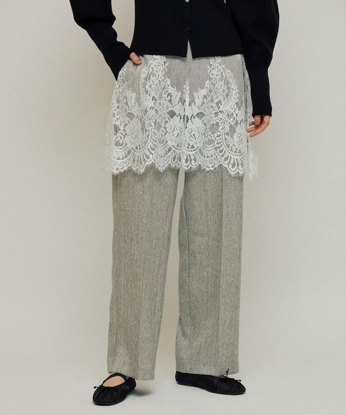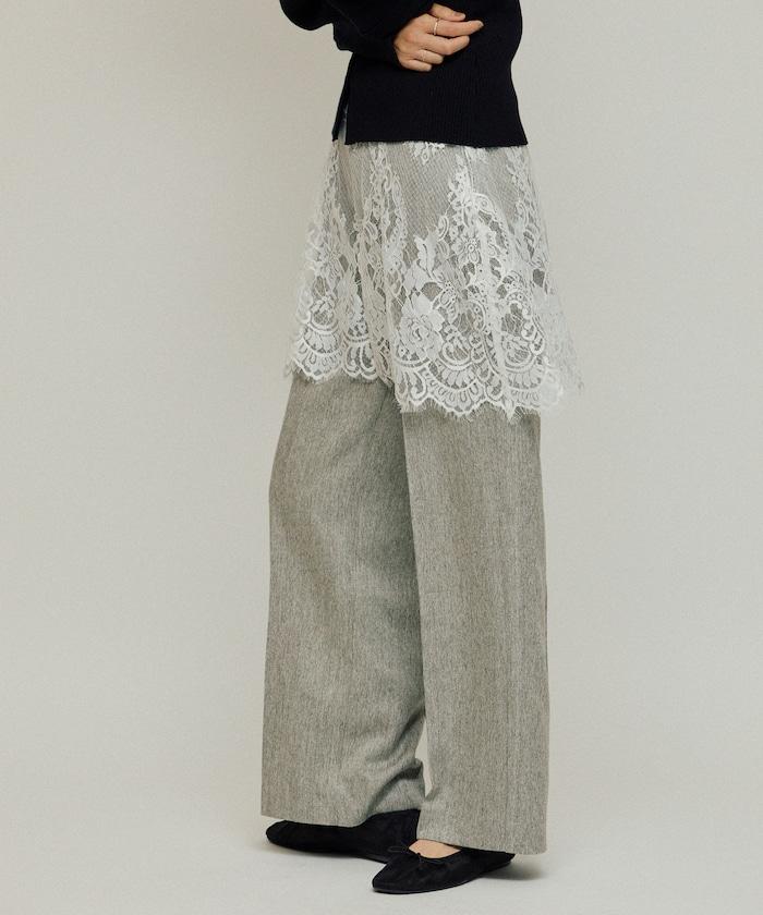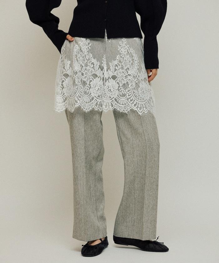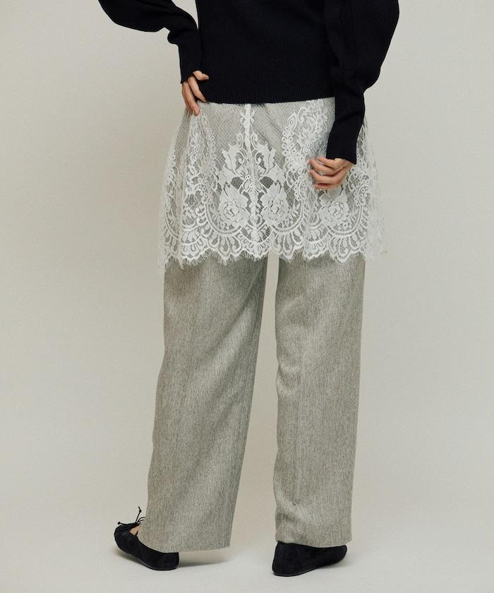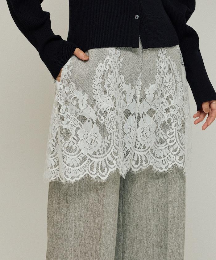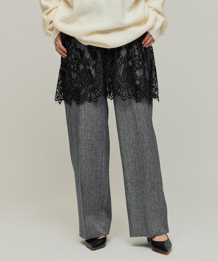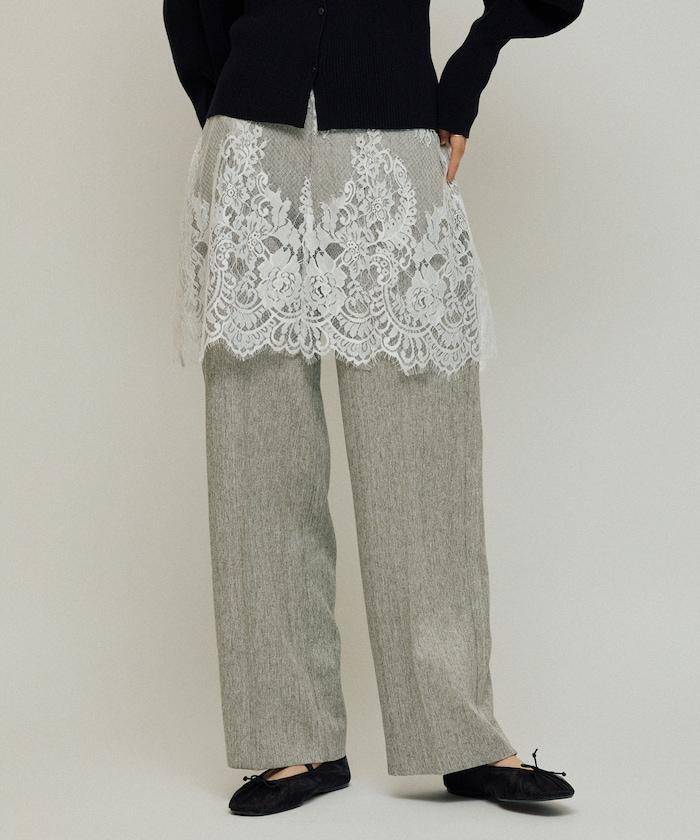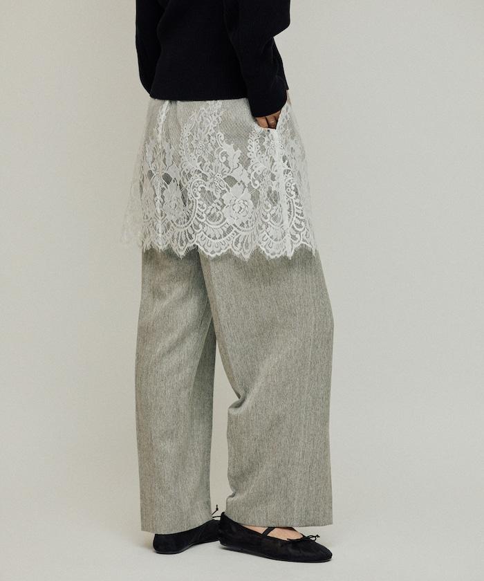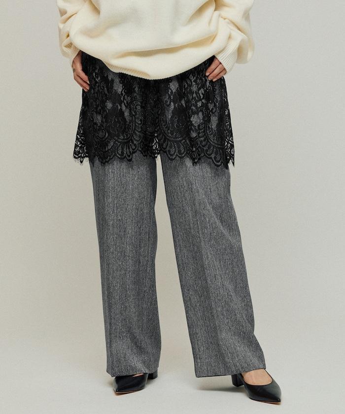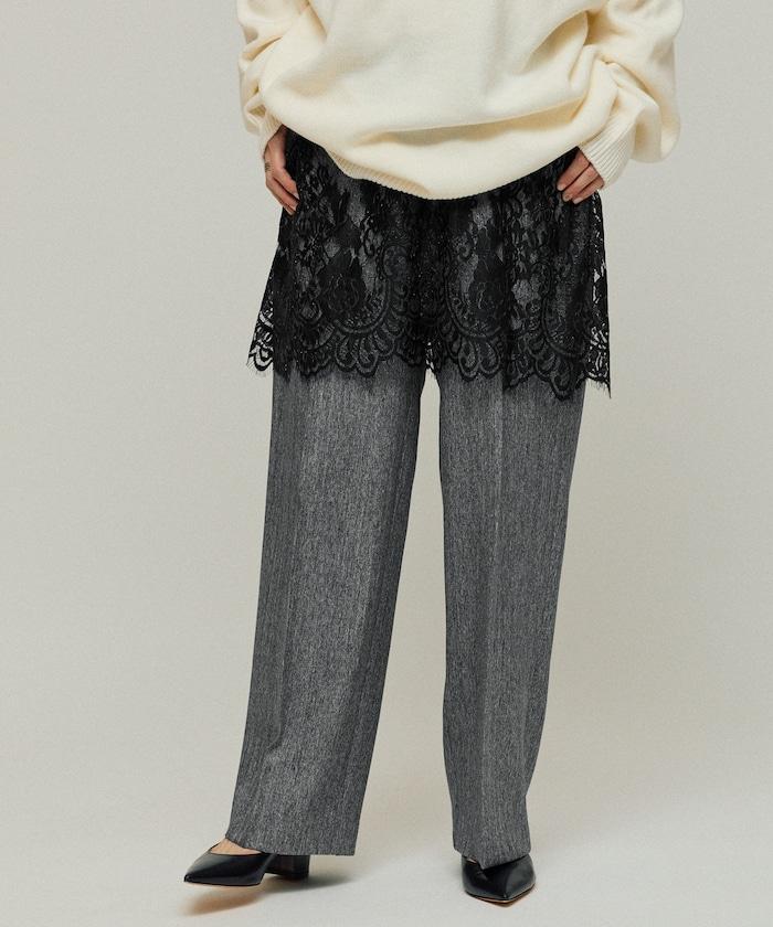 蕾絲拼接層疊長褲 / 中線壓褶寬鬆長褲